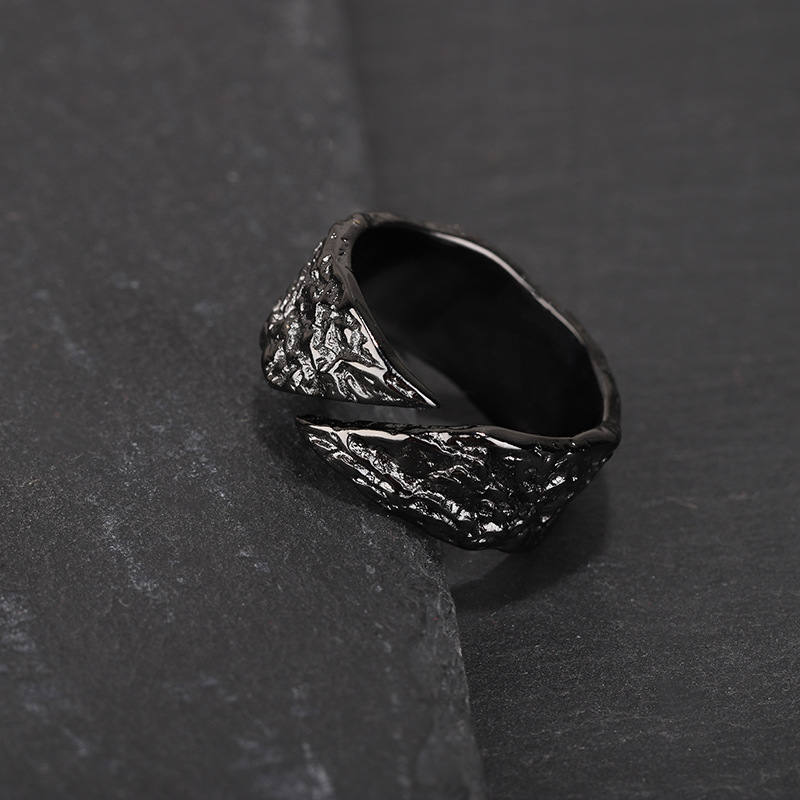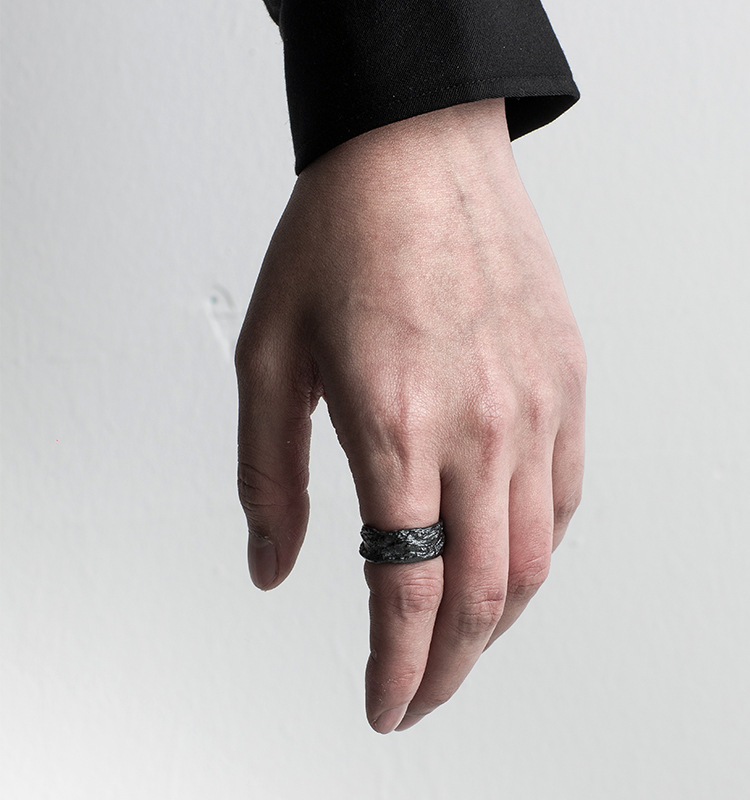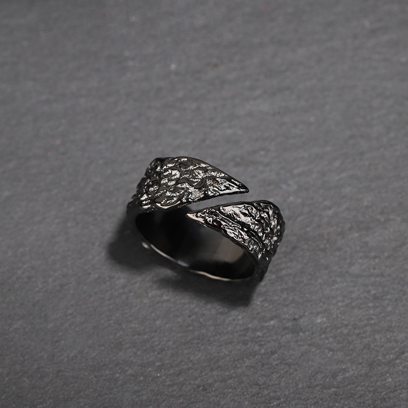 Evening ornament handmade texture feeling fault ring men's fashionable personality niche ruffian handsome black and white texture ring opening single ring