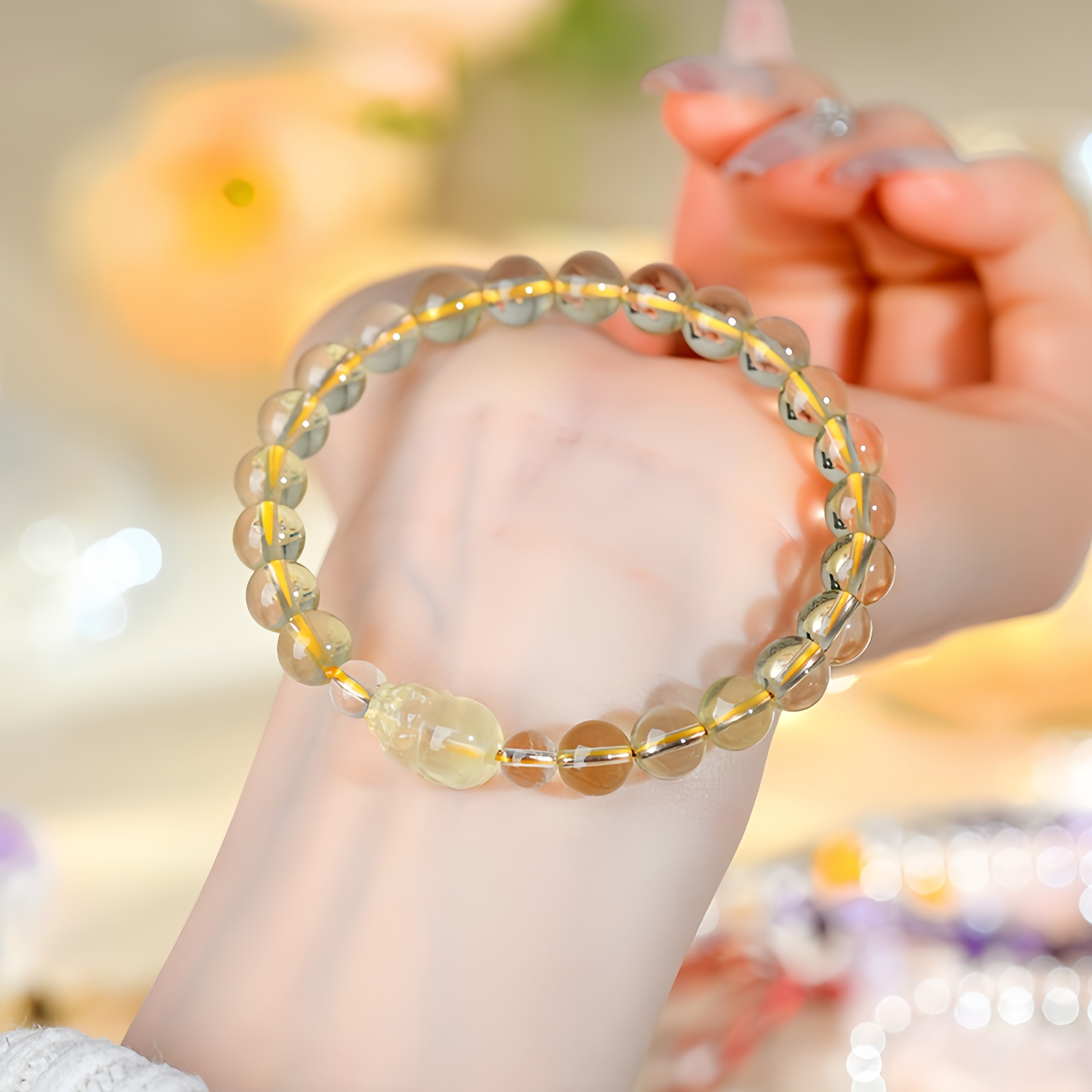 Temple Same Lemon Yellow Water Brave Bracelet Women's Imitation Natural Crystal Lucky Bracelet Girlfriend's Birthday Gift