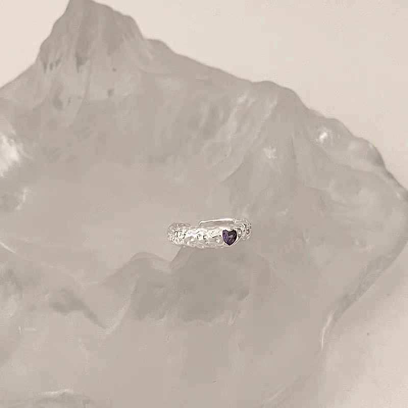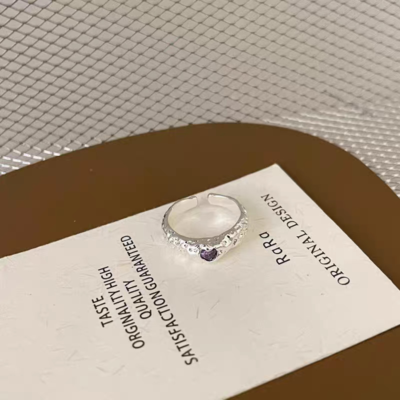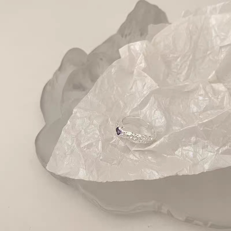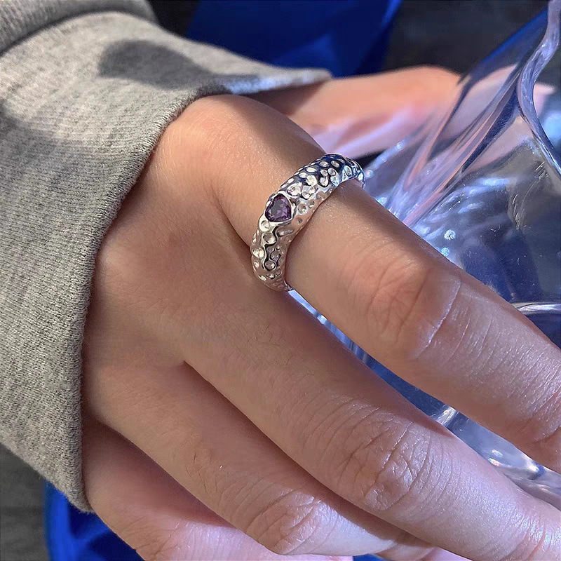 Purple Heart Ring Design, High-End, Cool, Niche, Light Luxury, French Texture, Fashionable Zircon Purple Diamond Ring
