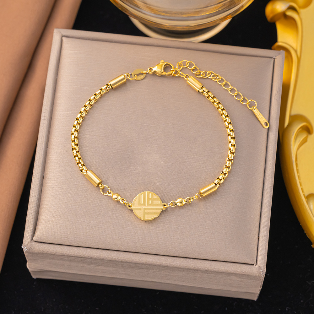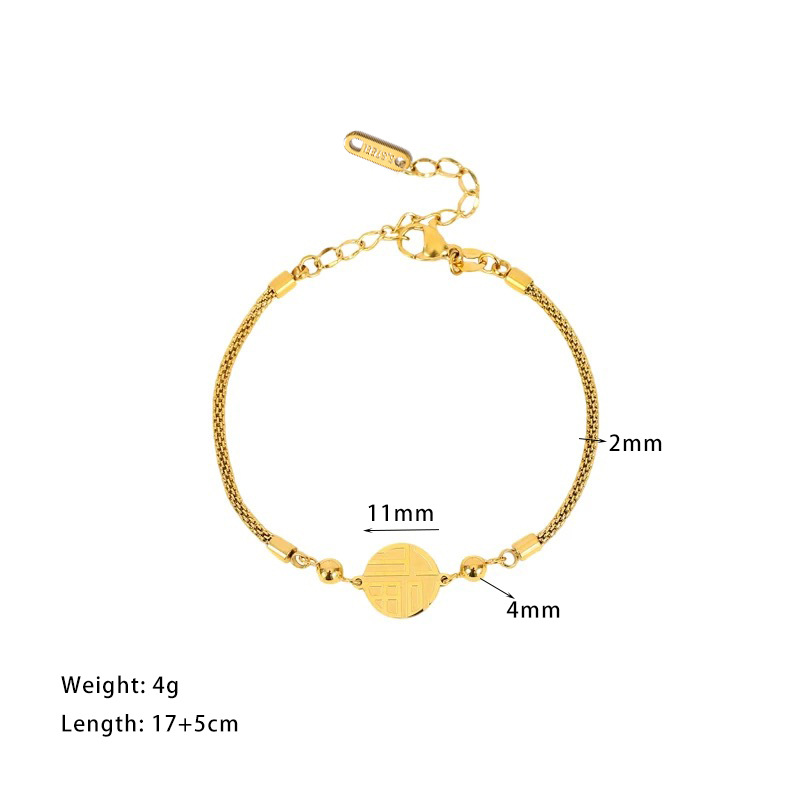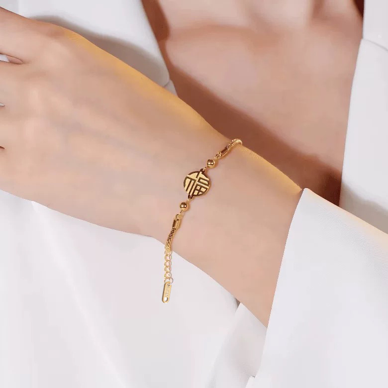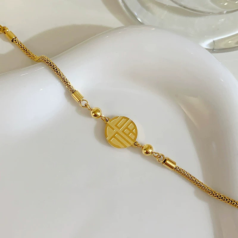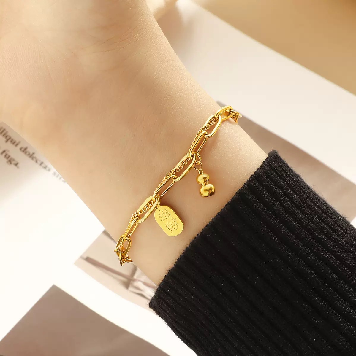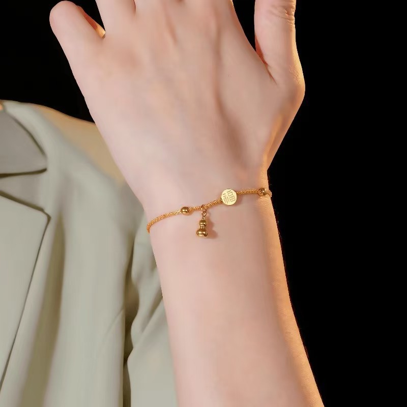 Color: 【e2122】double-layered gourd bracelet with blessing characters【gold】