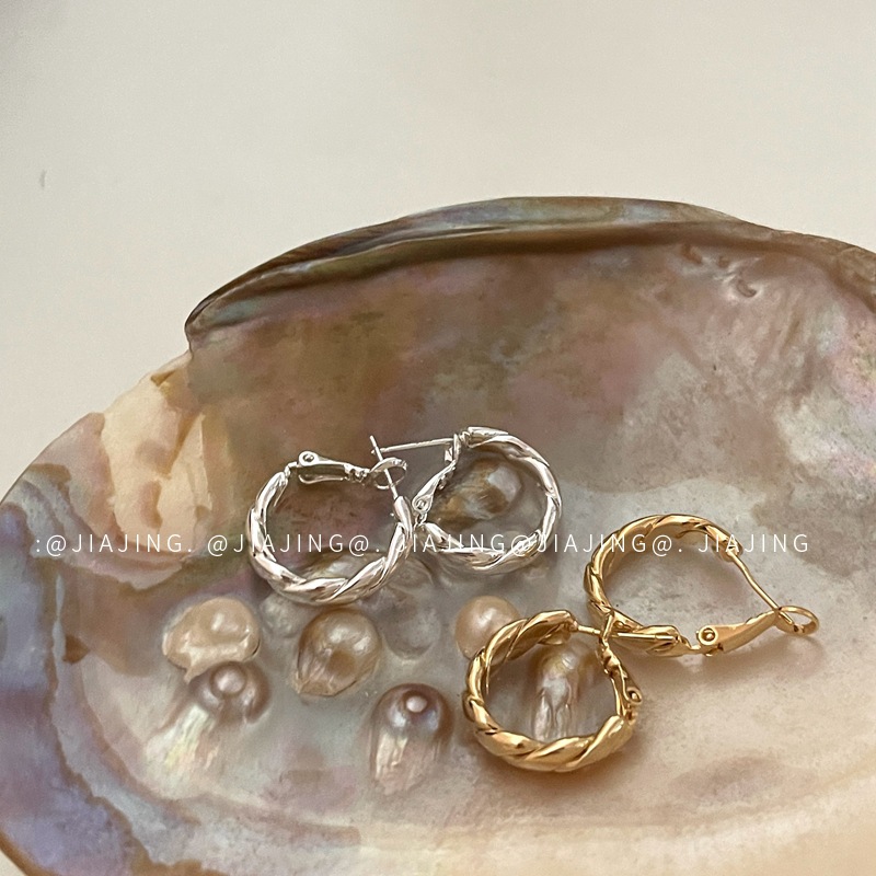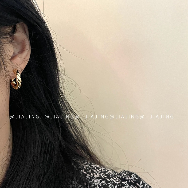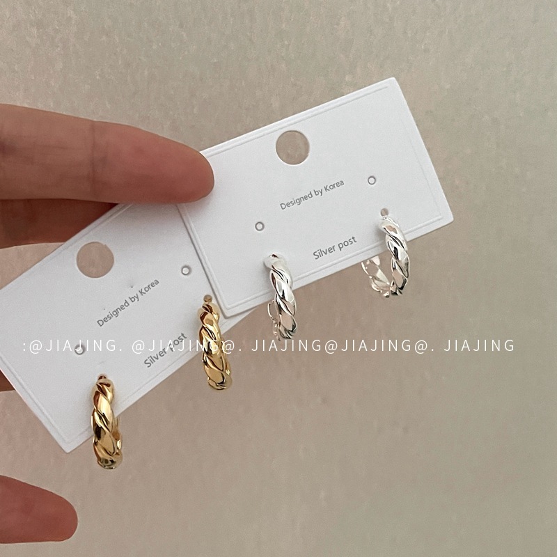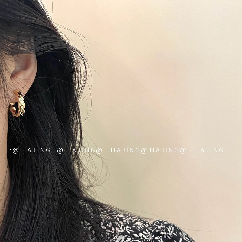 High-End Twisted Twist Earrings 925 Silver Needle Stylish High-End Simple Versatile Earrings Accessible Luxury Elegant Fashion~