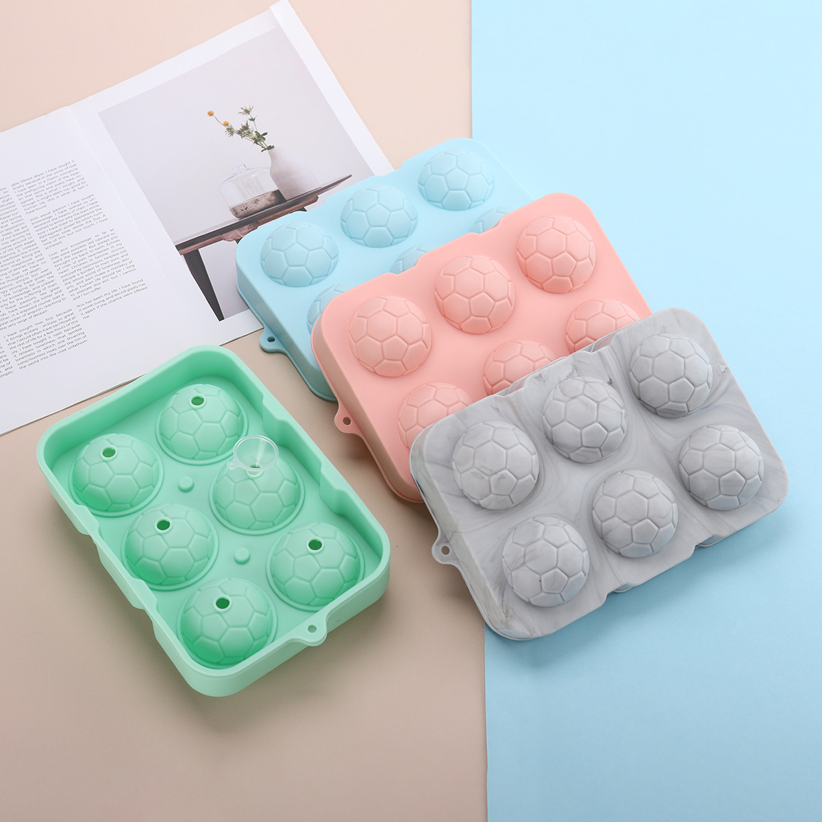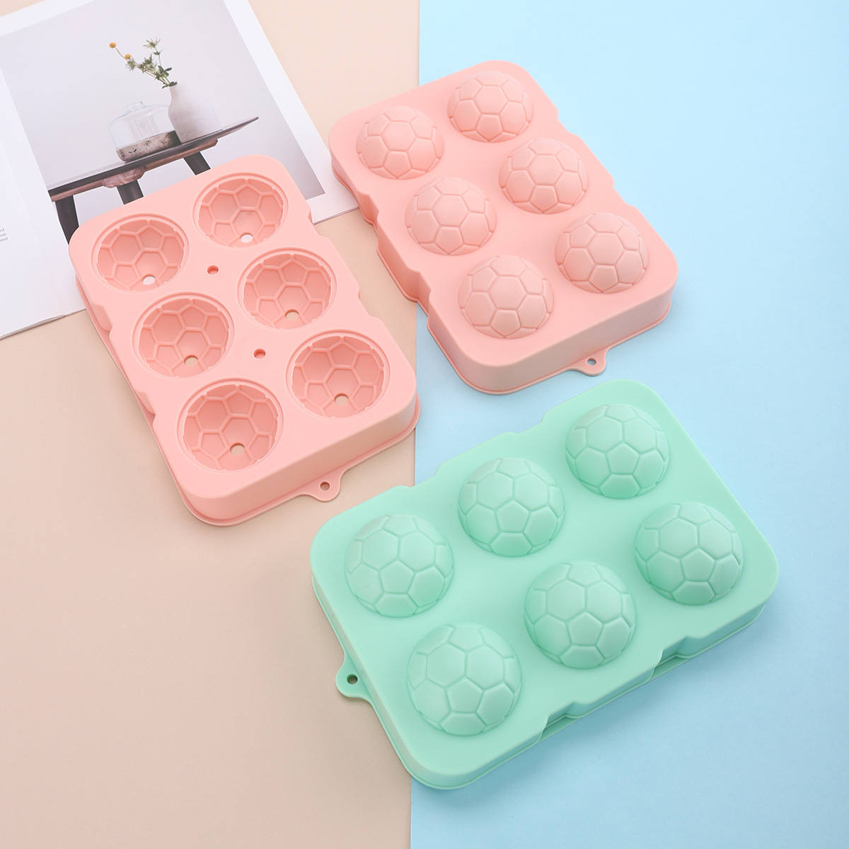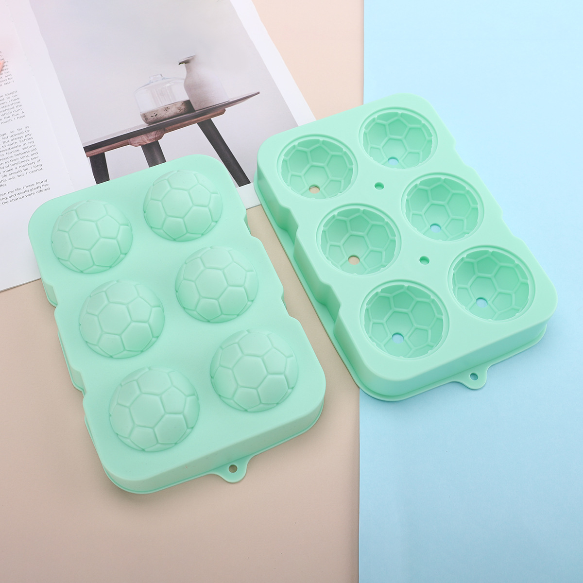 Creative 6-Link Silicone Football Ice Tray for Home Use, Quick-Freezing, Easy-Release Ice Mold, Whiskey Ice Maker Wholesale