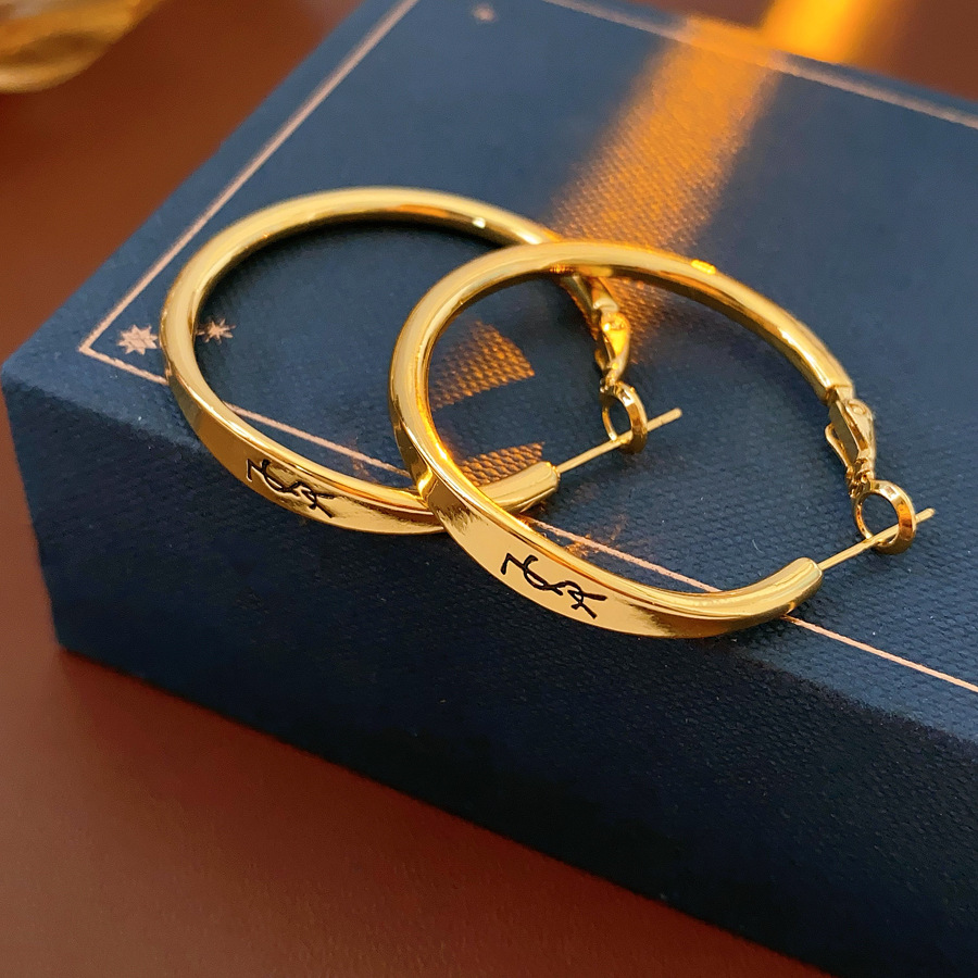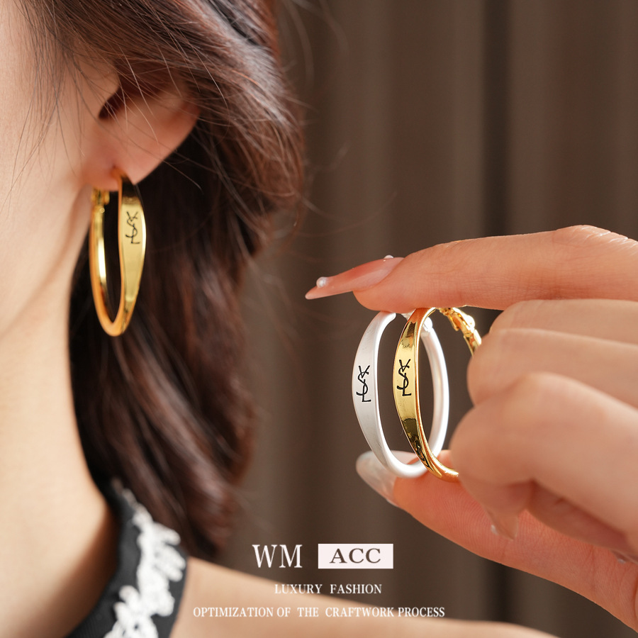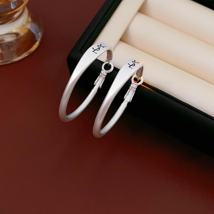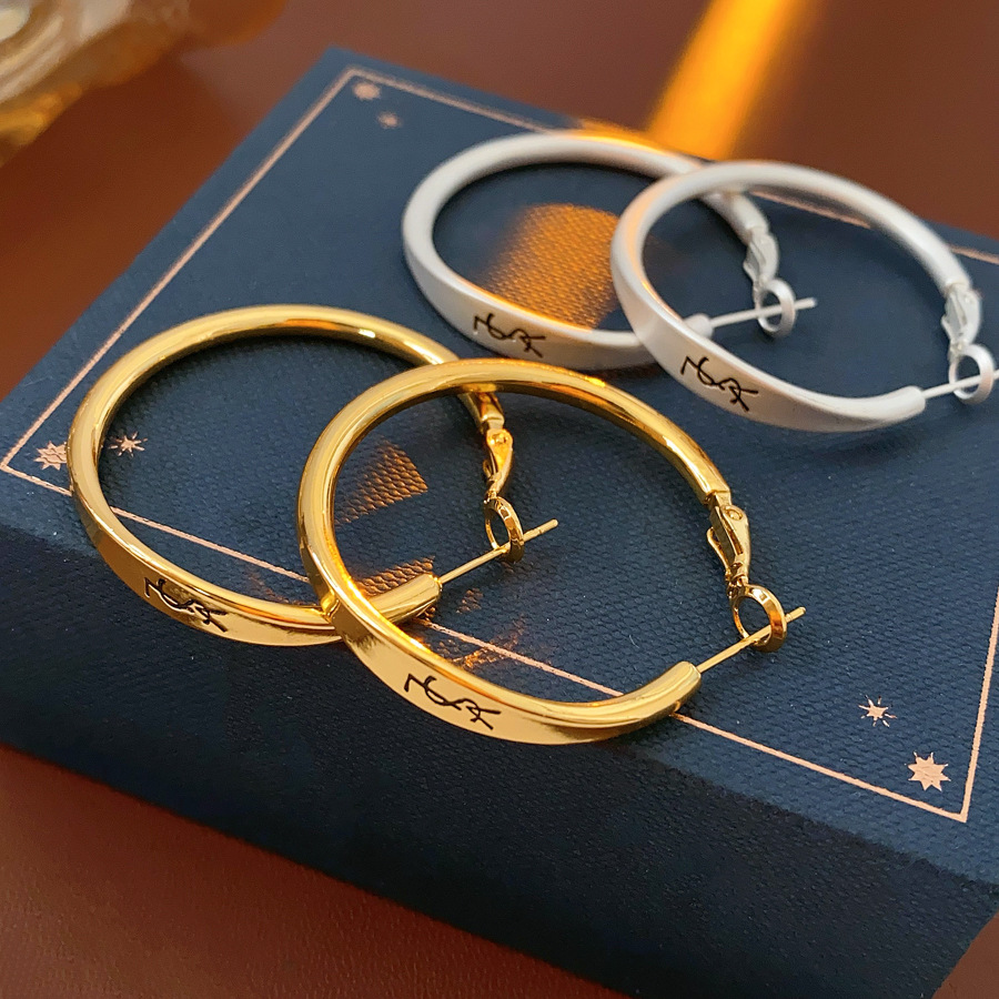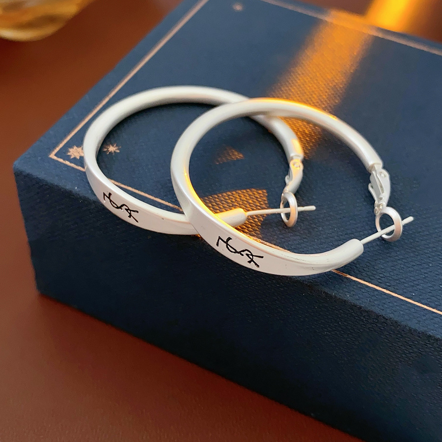 Silver Needle Bright Face Letter Round Ear Ring Fashion Commuting All-match Simple Earrings Light Luxury High-end Elegant Earrings for Women