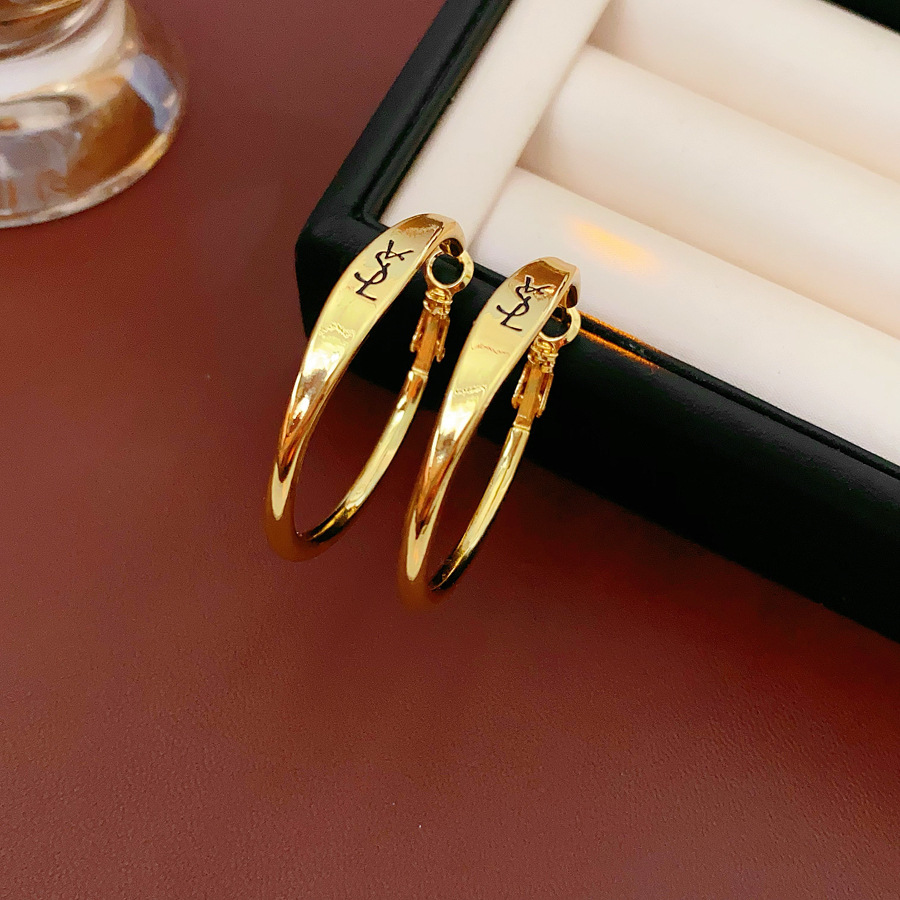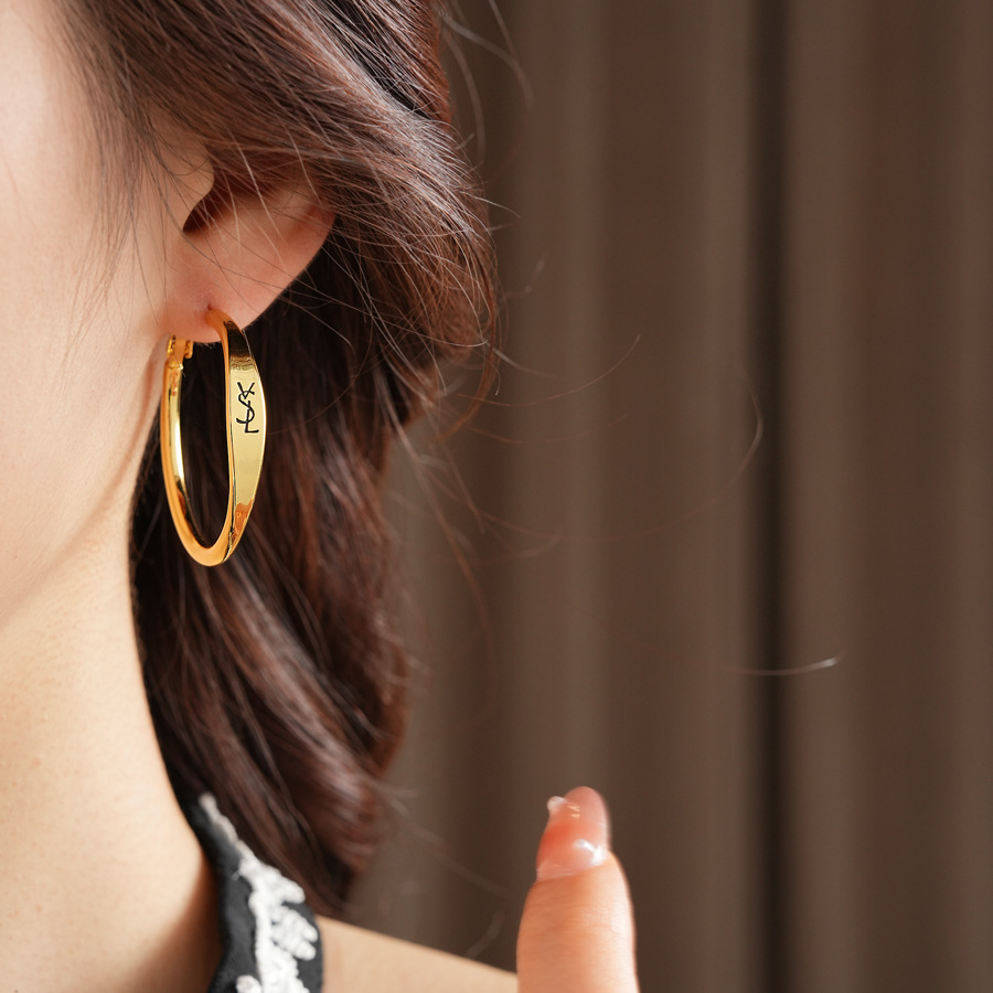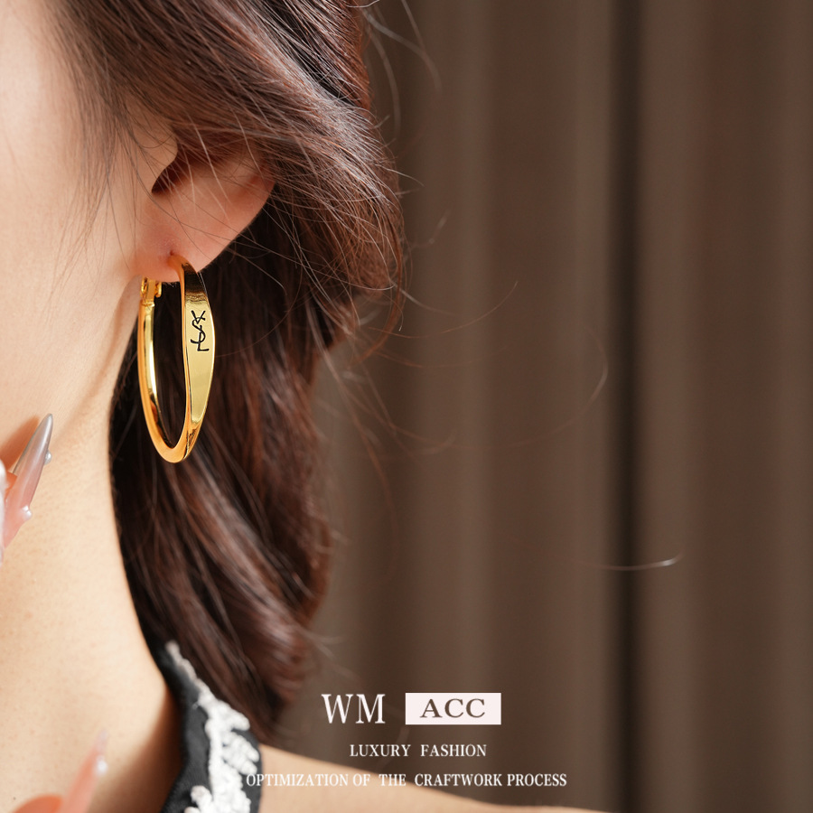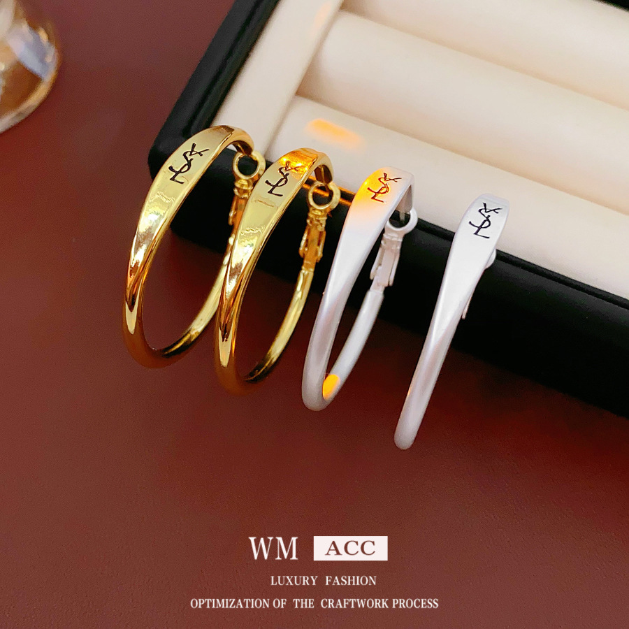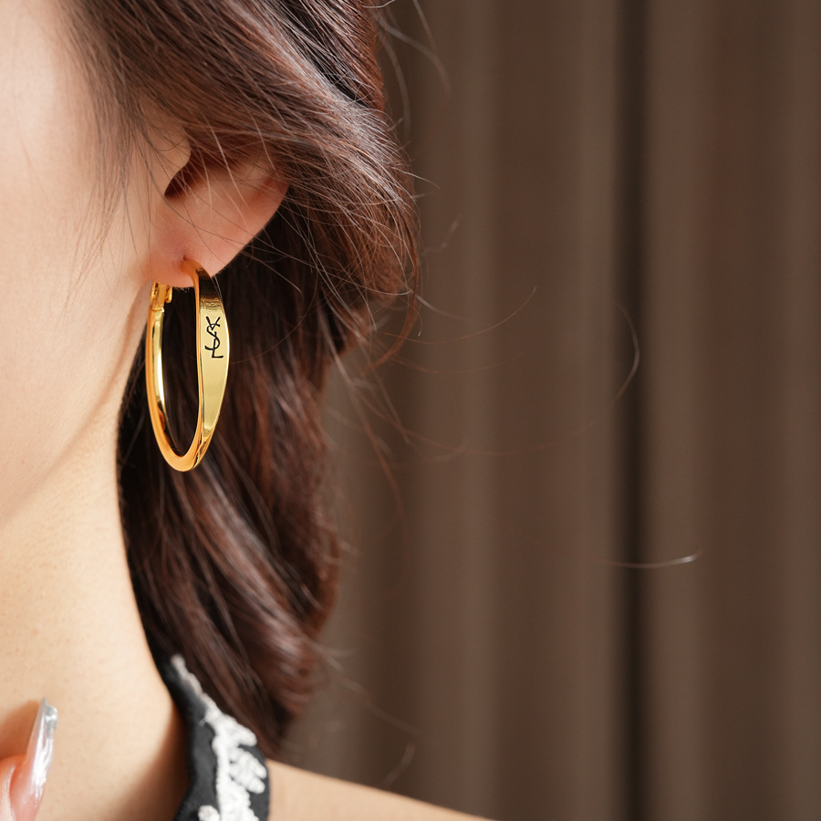 Silver Needle Bright Face Letter Round Ear Ring Fashion Commuting All-match Simple Earrings Light Luxury High-end Elegant Earrings for Women