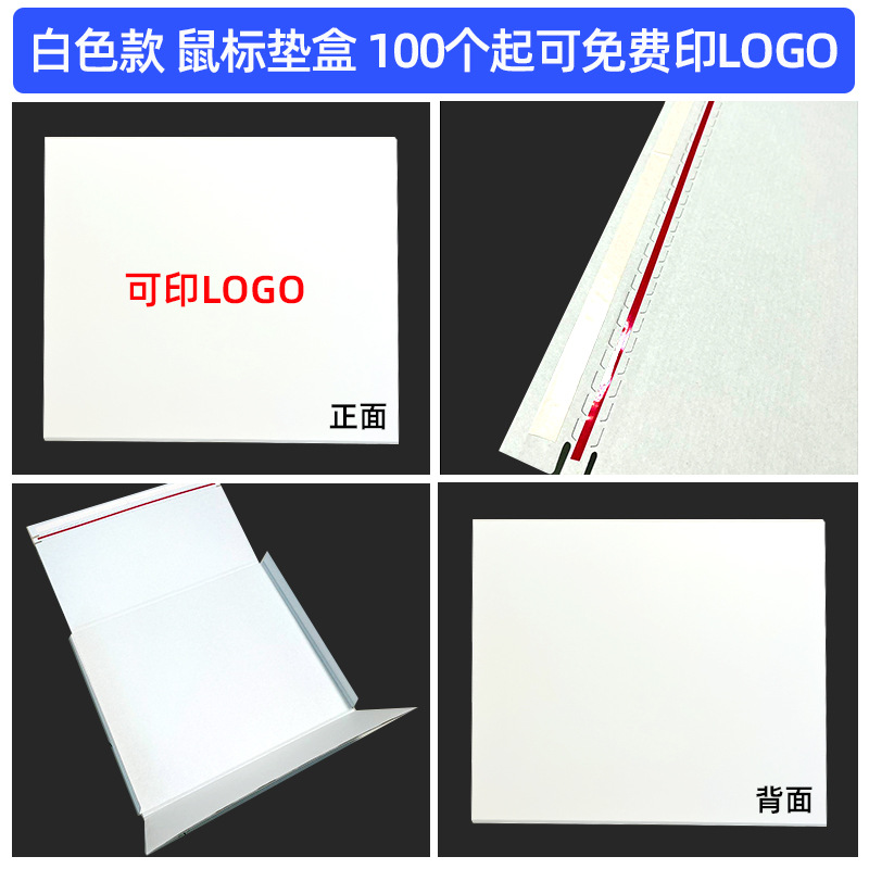 Specifications and models: White mouse pad packaging box; length 50cm*width 43cm*thickness 1cm; yellow kraft paper/white white card lamination+white kraft paper