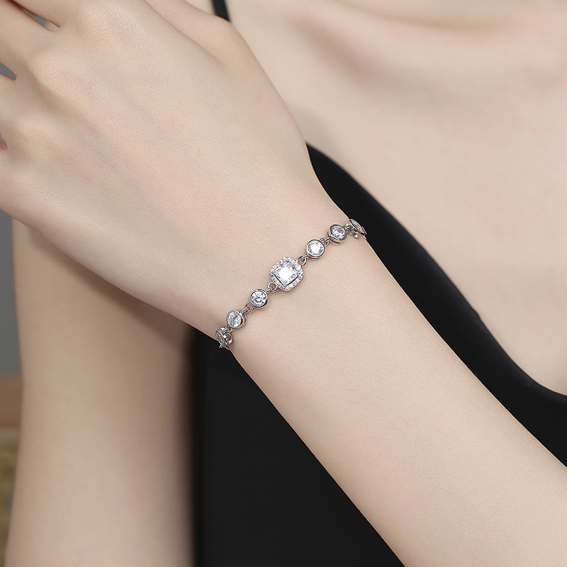 New Korean Style Square Bag Micro-Encrusted Round Zircon Super Flash Bracelet for Women, Versatile Design, Cool Style Hand Jewelry, Personalized Accessories
