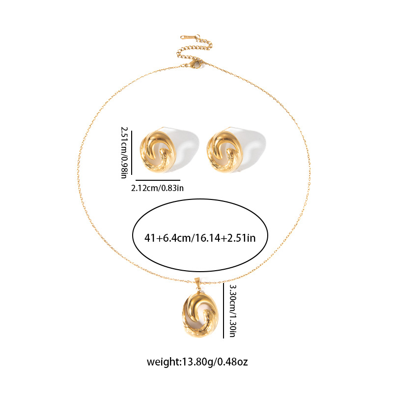 Casual and Fashionable Work Clothing 18K Gold-Plated Stainless Steel Jewelry Set, Versatile and Non-Fading Earrings and Necklaces for Women