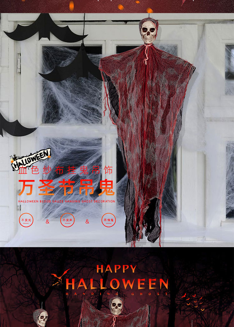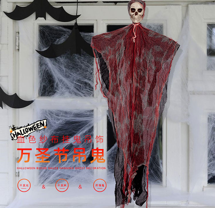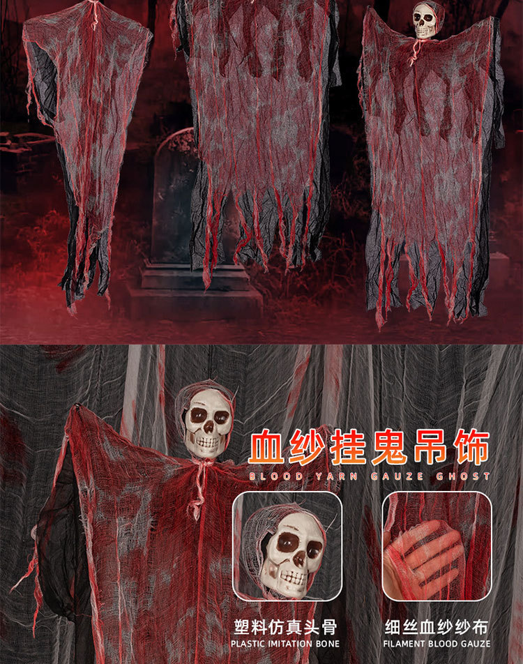 Halloween Hanging Ghost Pendant Blood-Stained Horror Skull Arrangement Decorative Props Bloody Gauze Scene Porch Terrace