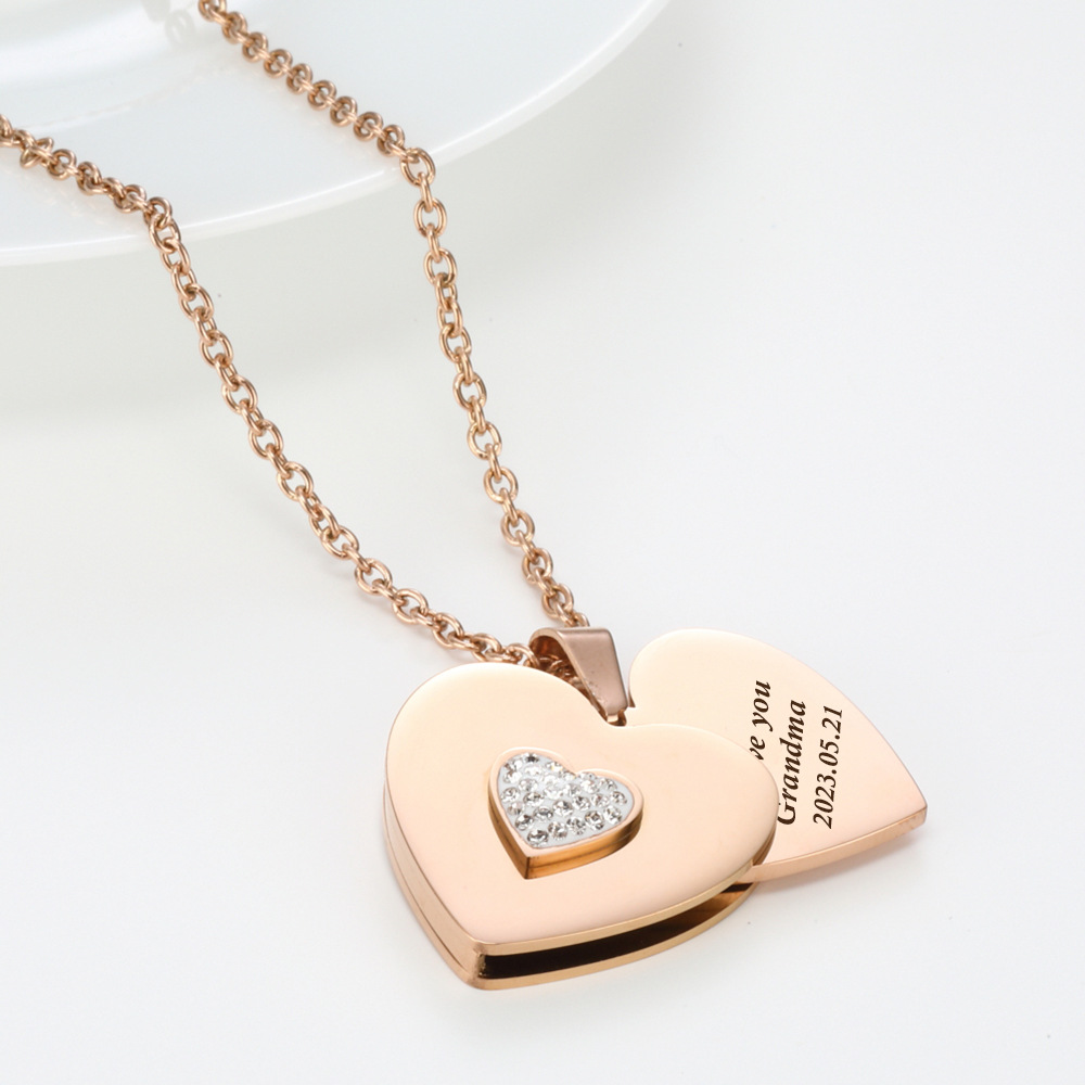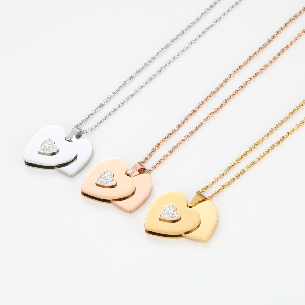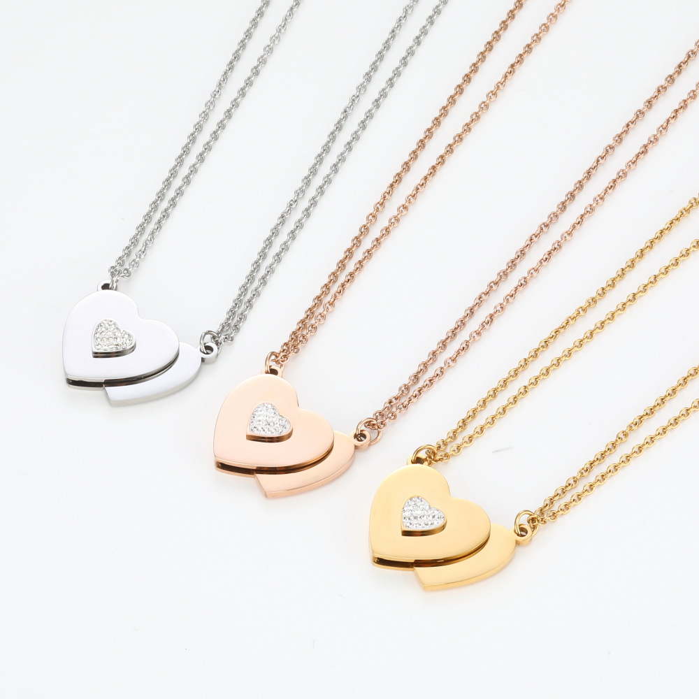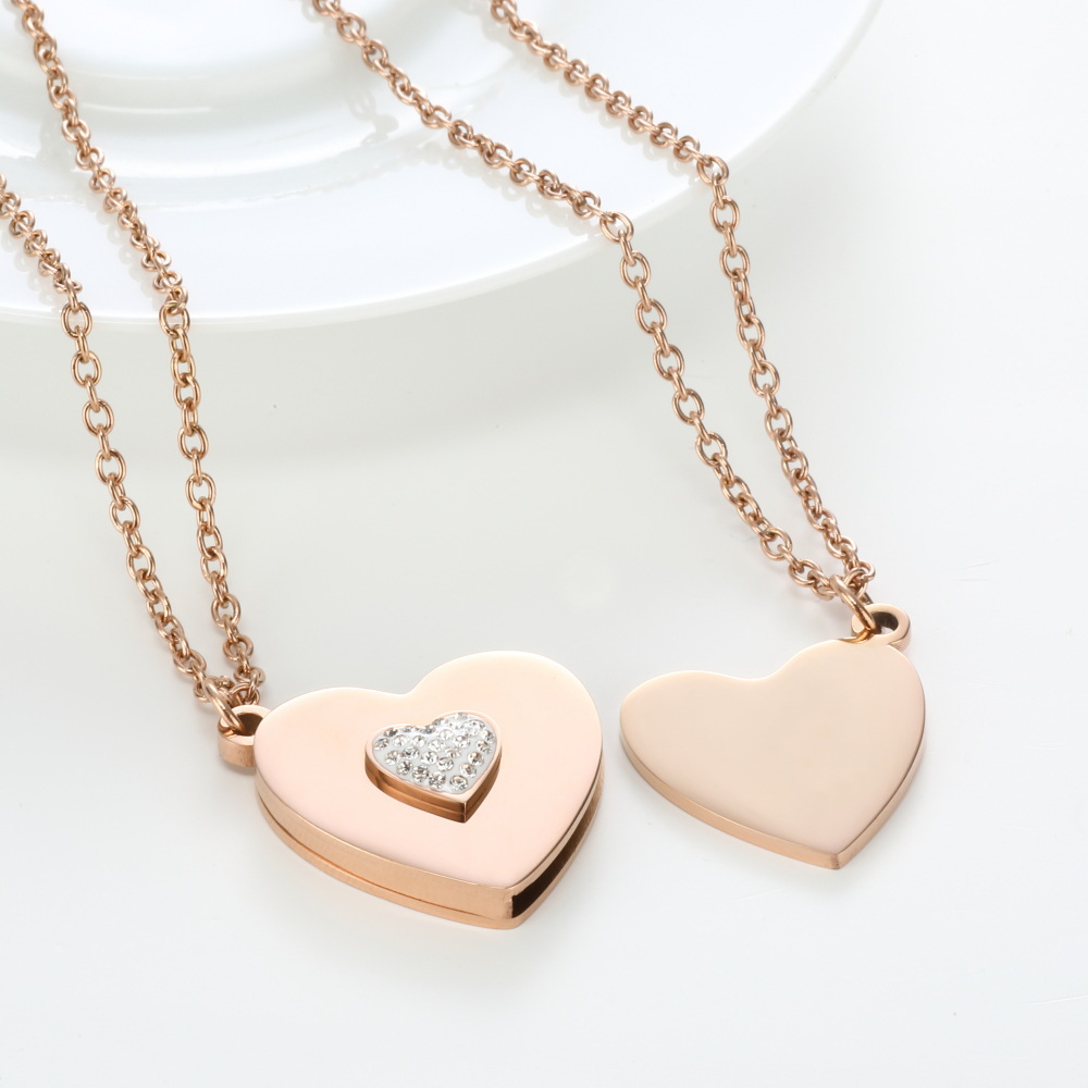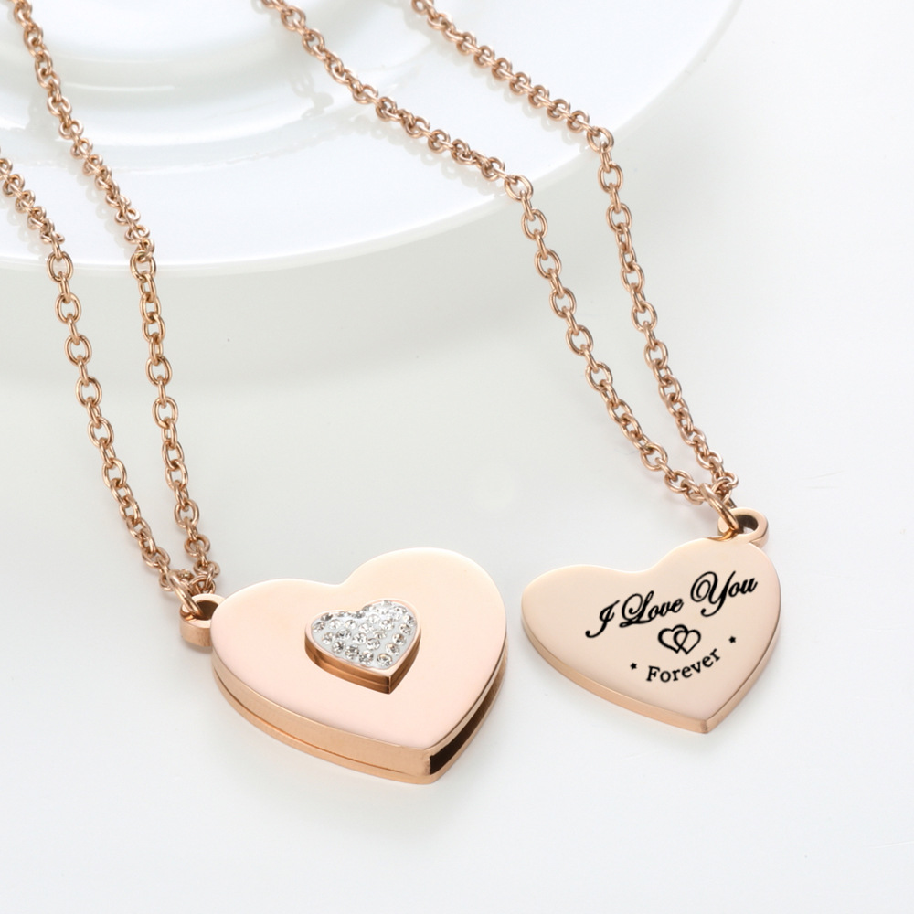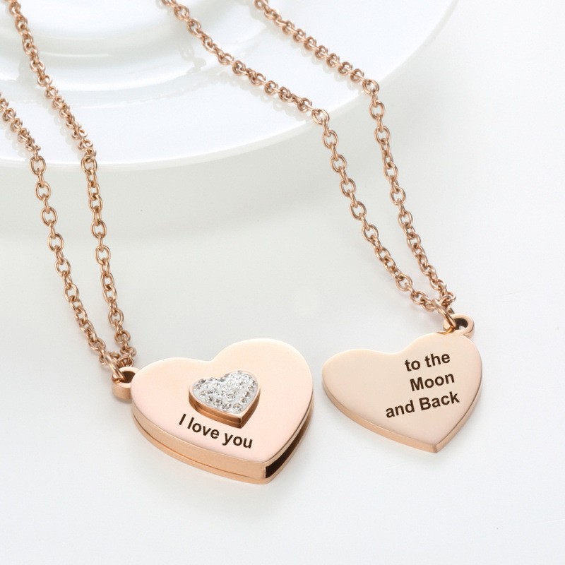 Cross-border Peach Heart Girlfriend Necklace Couple Combination Love Collarbone Chain Stainless Steel Engraving Name Valentine's Day Gift Luxury