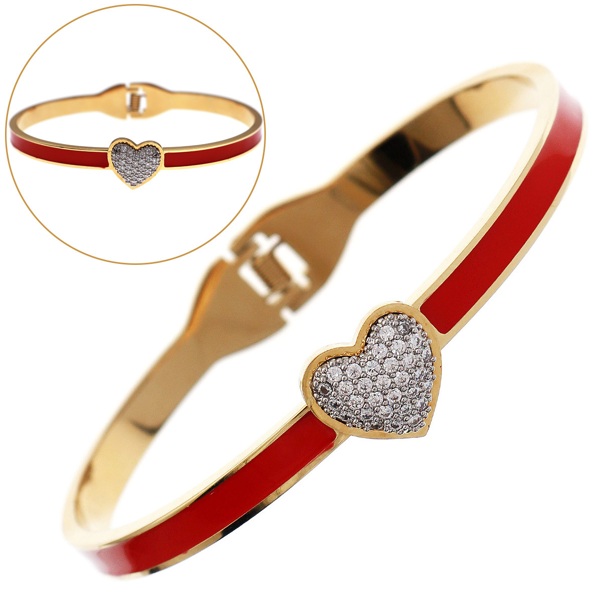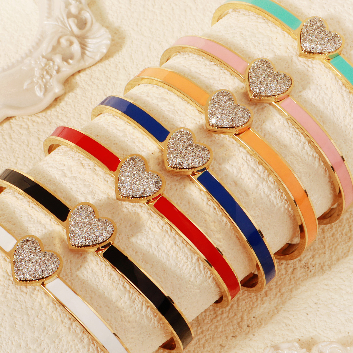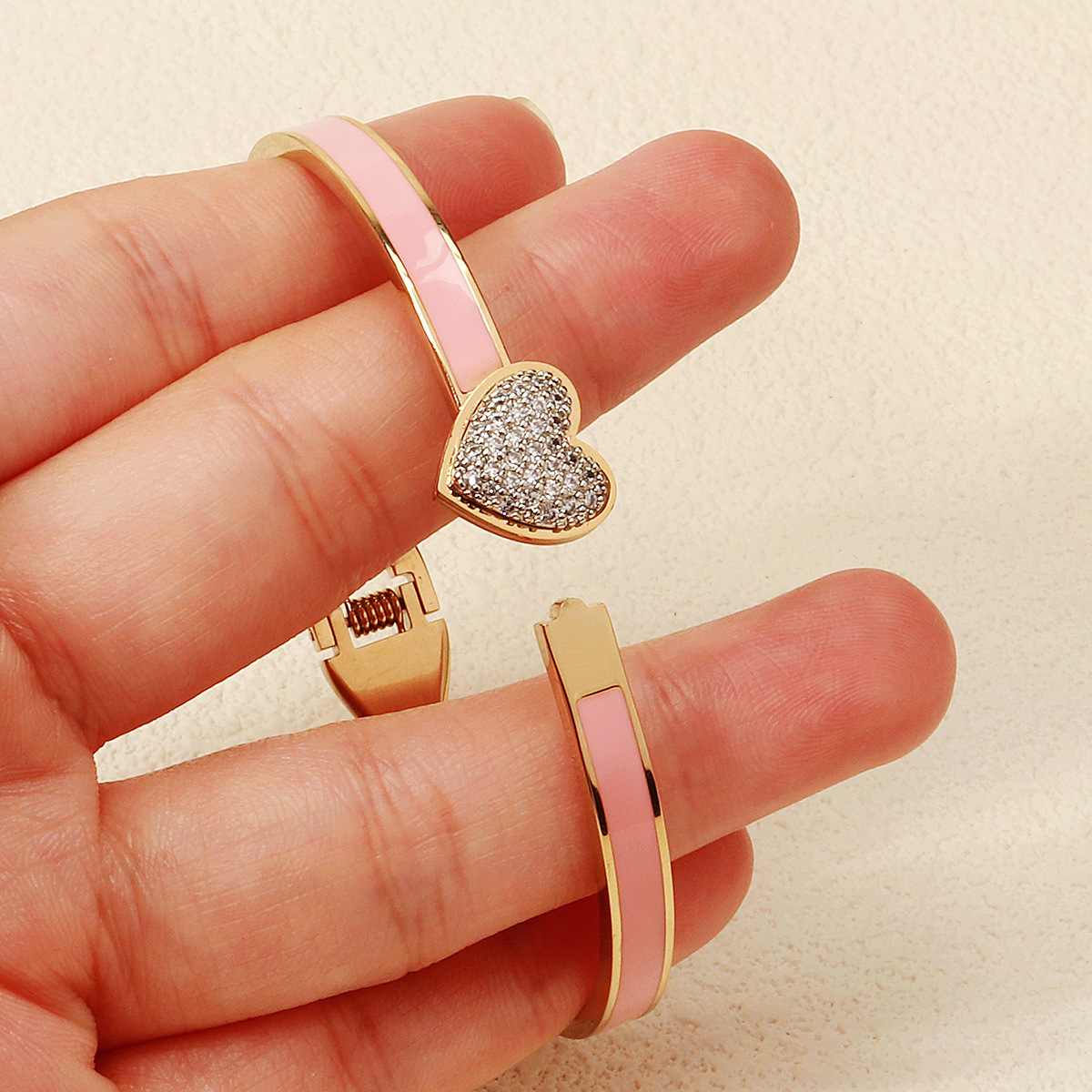 Element: Copper inlaid zircon super flash love stainless steel color dopamine oil drop bracelet
