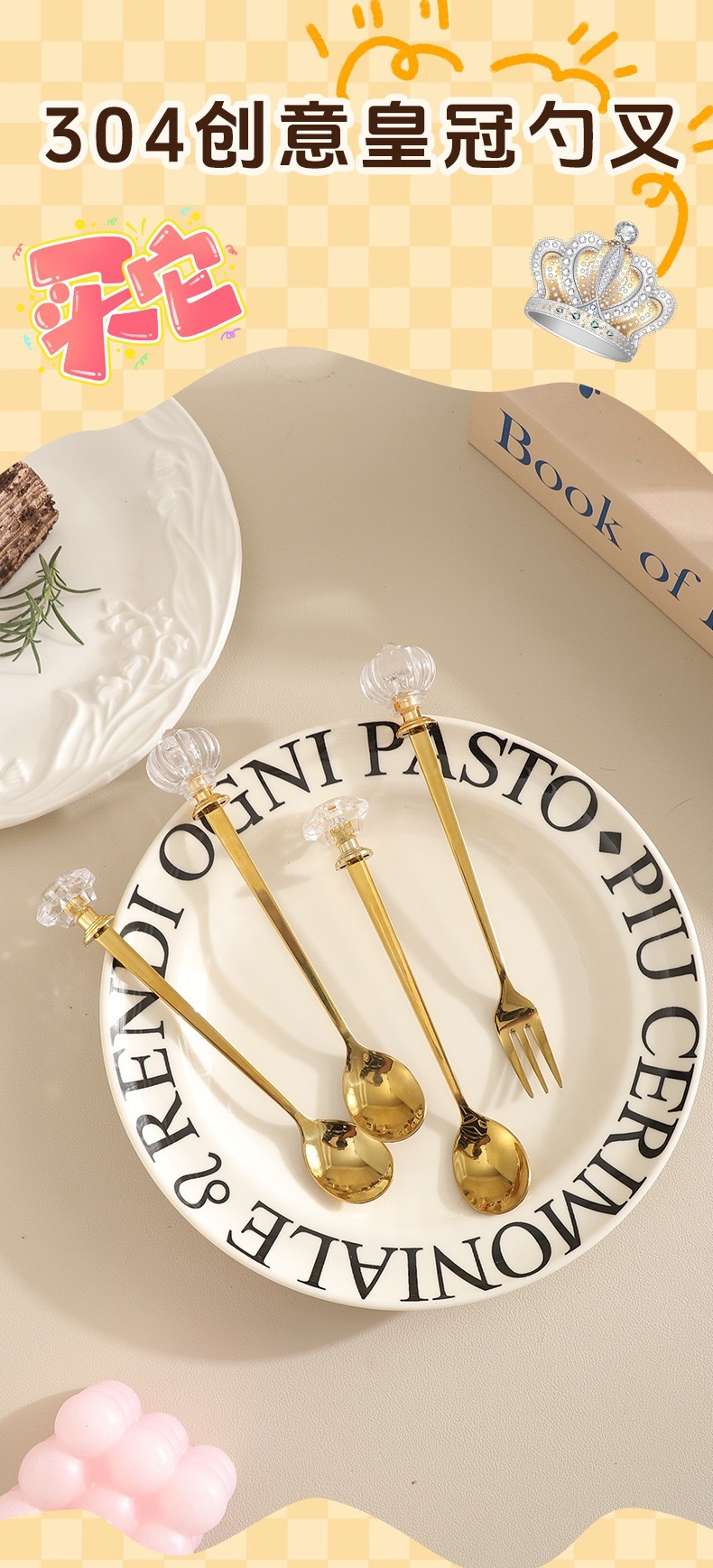 Specification: White crown gold spoon