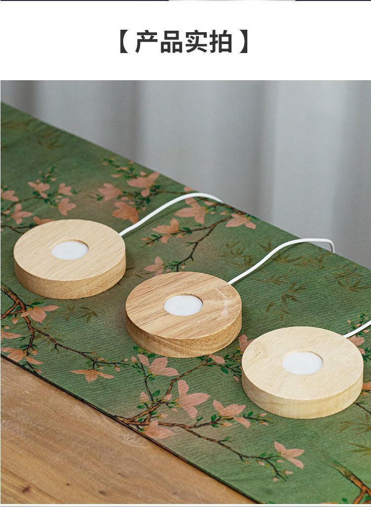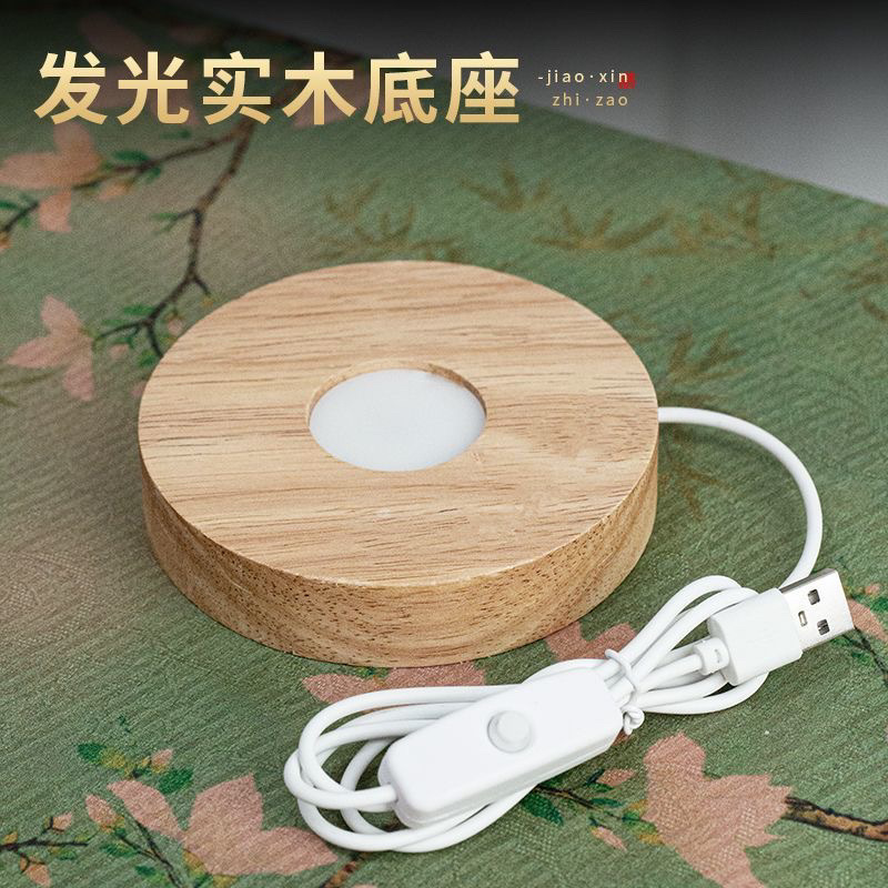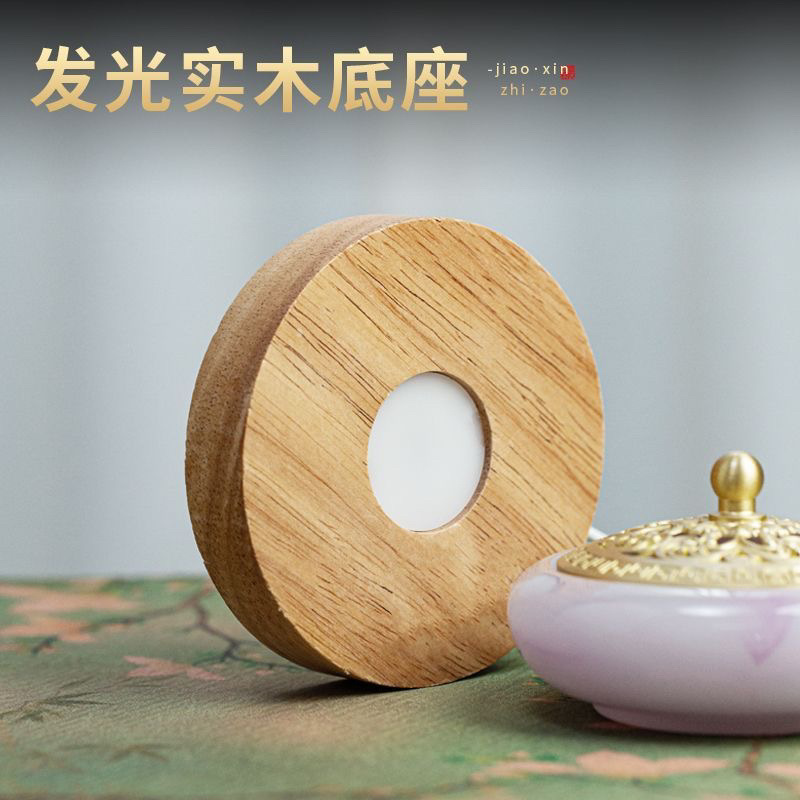 Warm Light Night Light Jade Ornaments Base USB Socket Luminous Solid Wood Chassis Bedside Aromatherapy Stove Glass