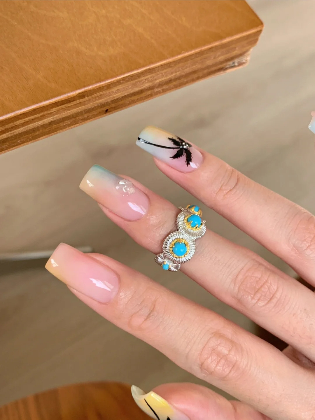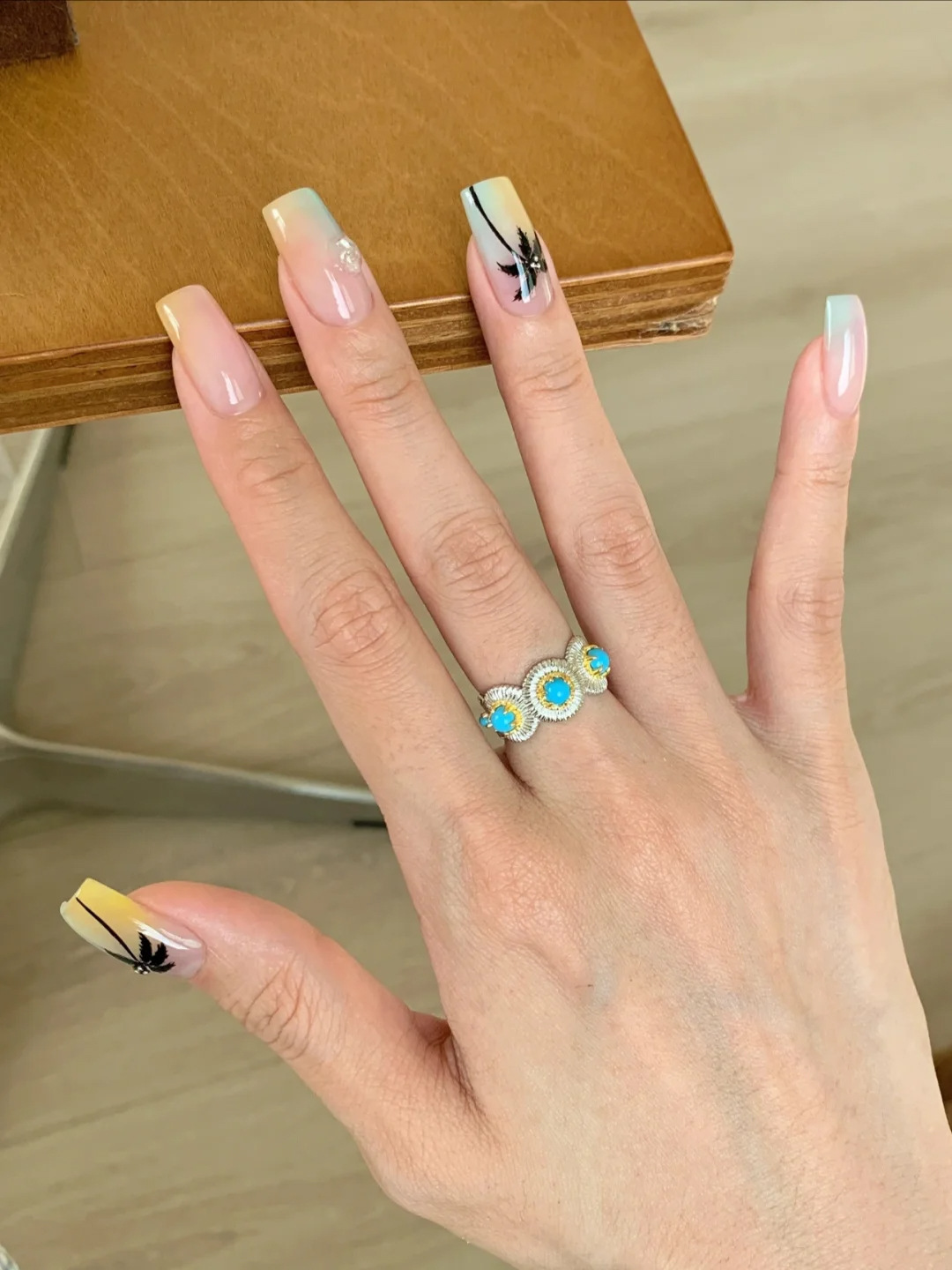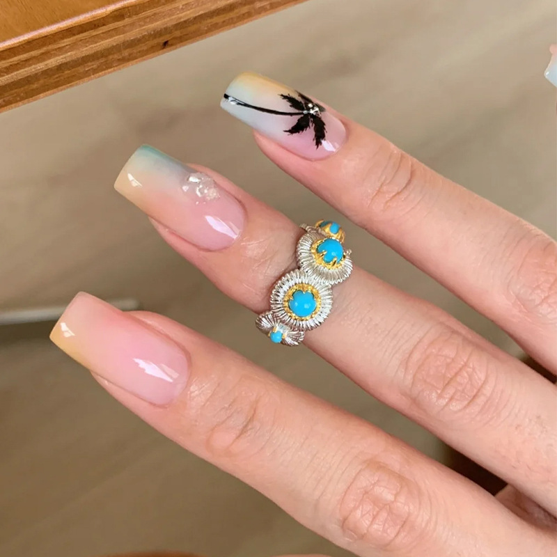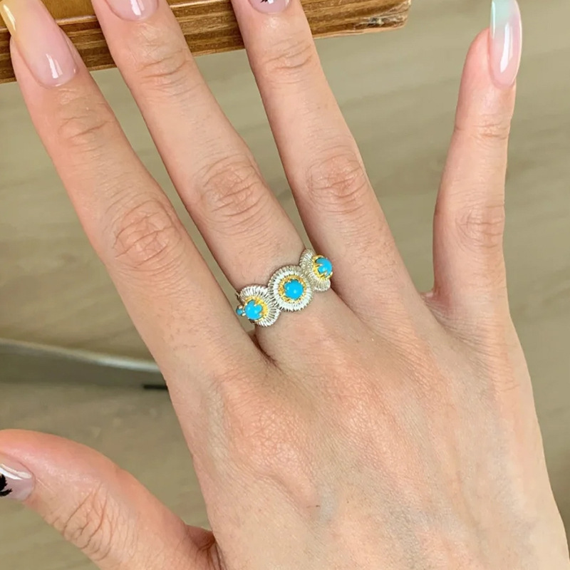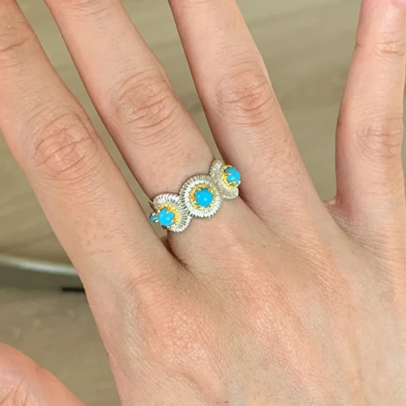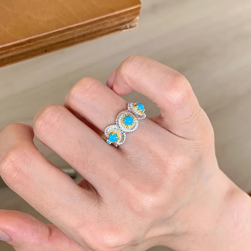Xiaohongshu's Popular Turquoise Brushed Ring, Exquisite Retro High-End Stacking Niche Ring for Women, One-Piece Drop Shipping