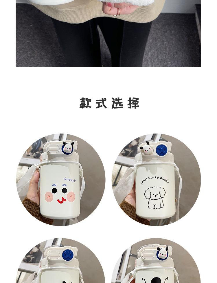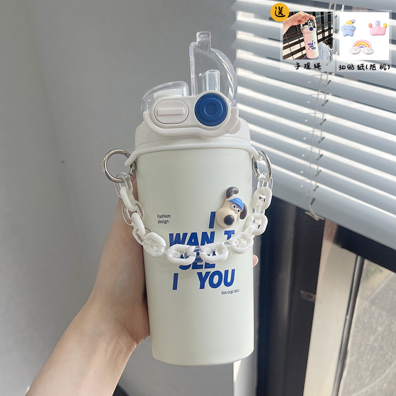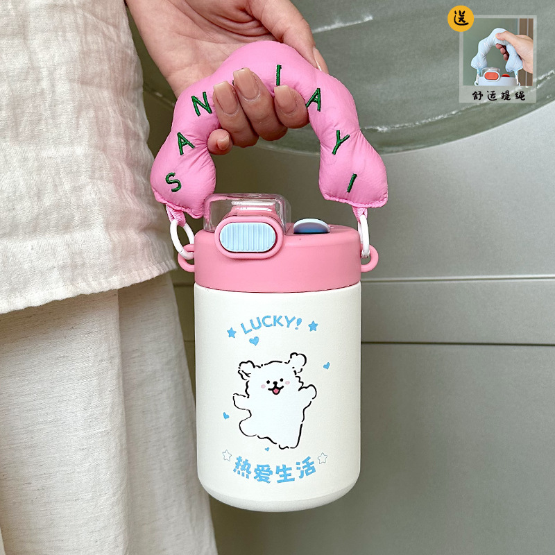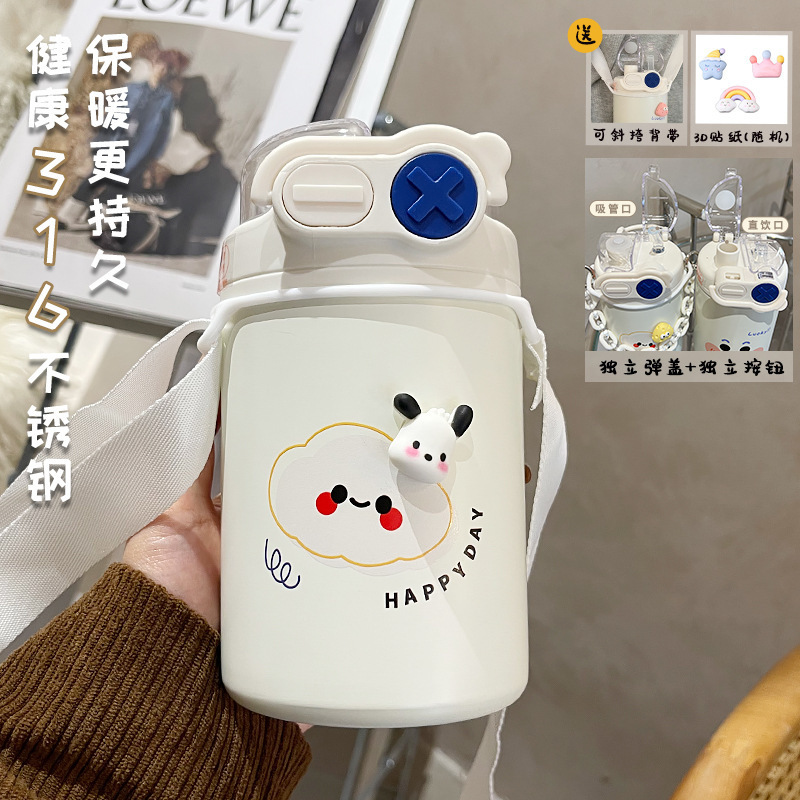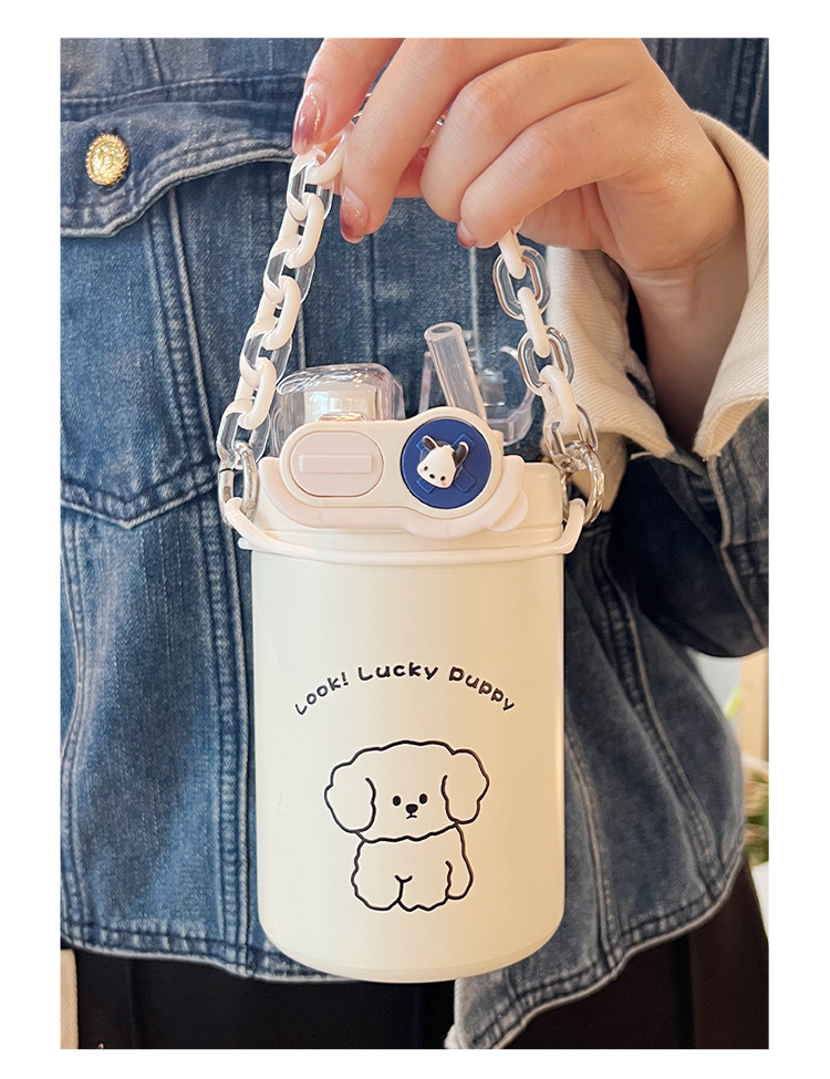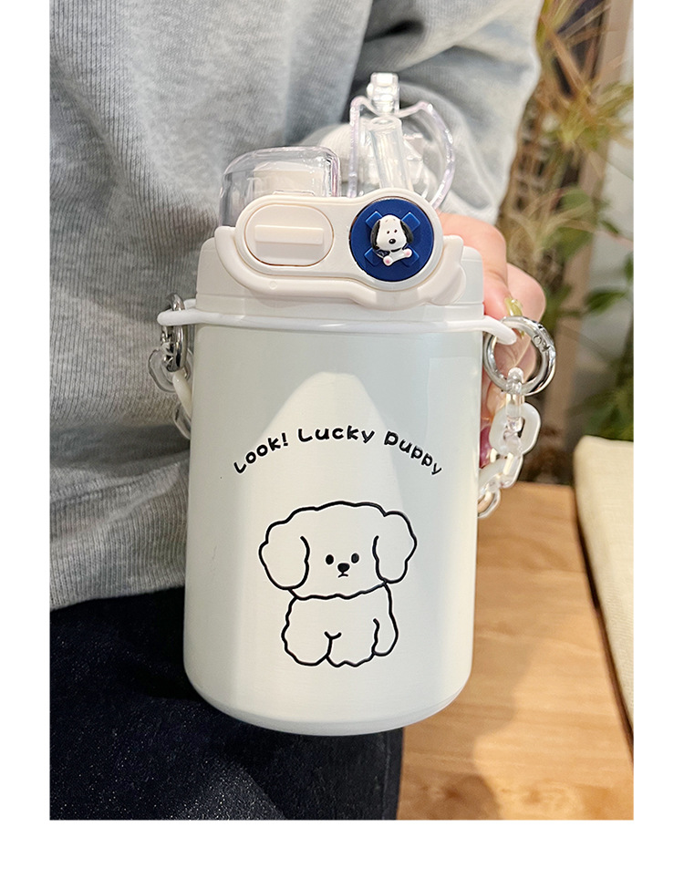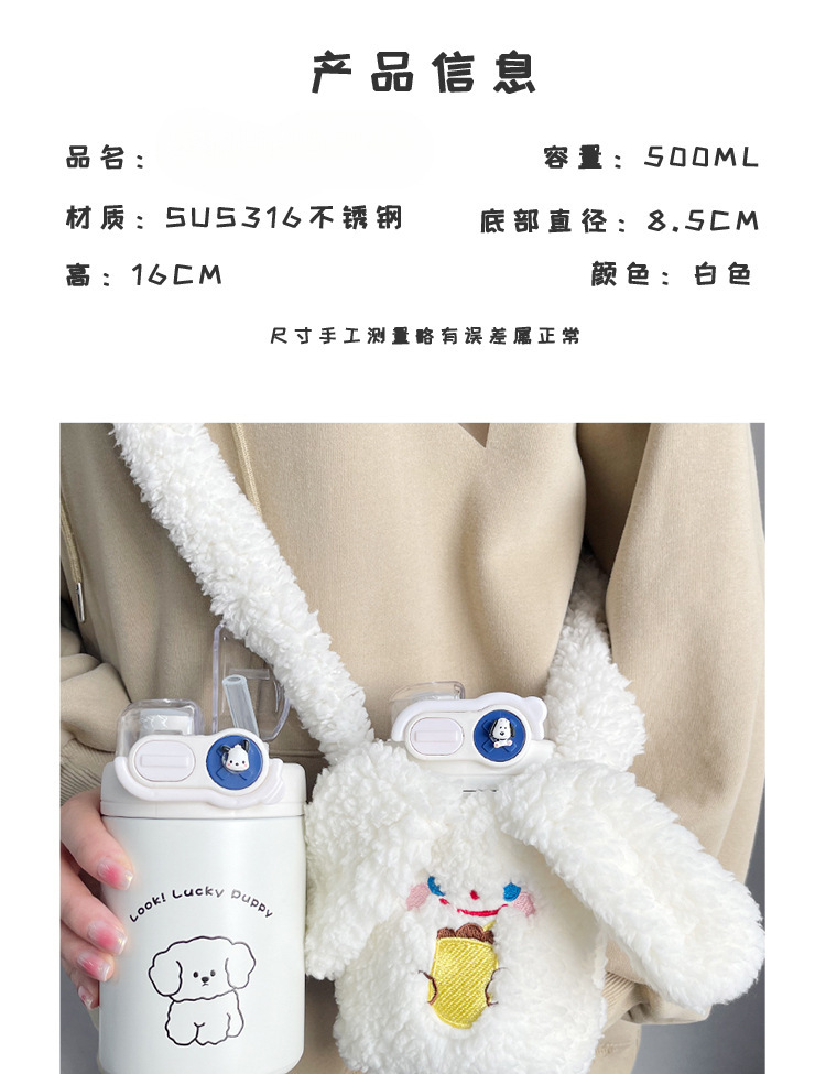 Color: White puppy 500ml (316 stainless steel) + large lifting rope + 3d sticker (random style)
