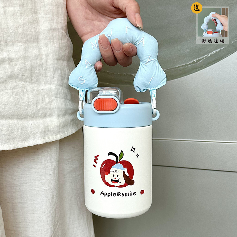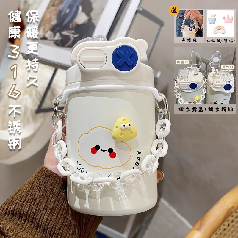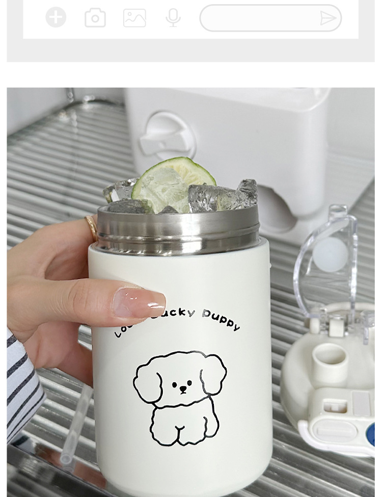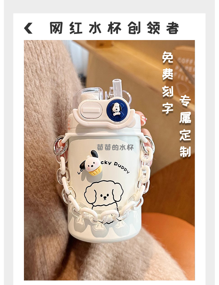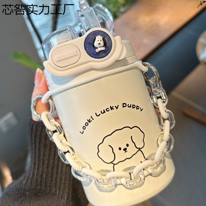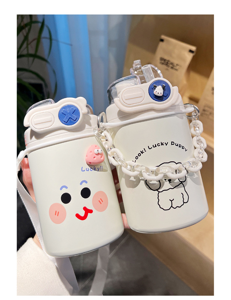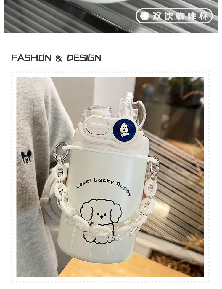 Color: White puppy 500ml (316 stainless steel) + large lifting rope + 3d sticker (random style)