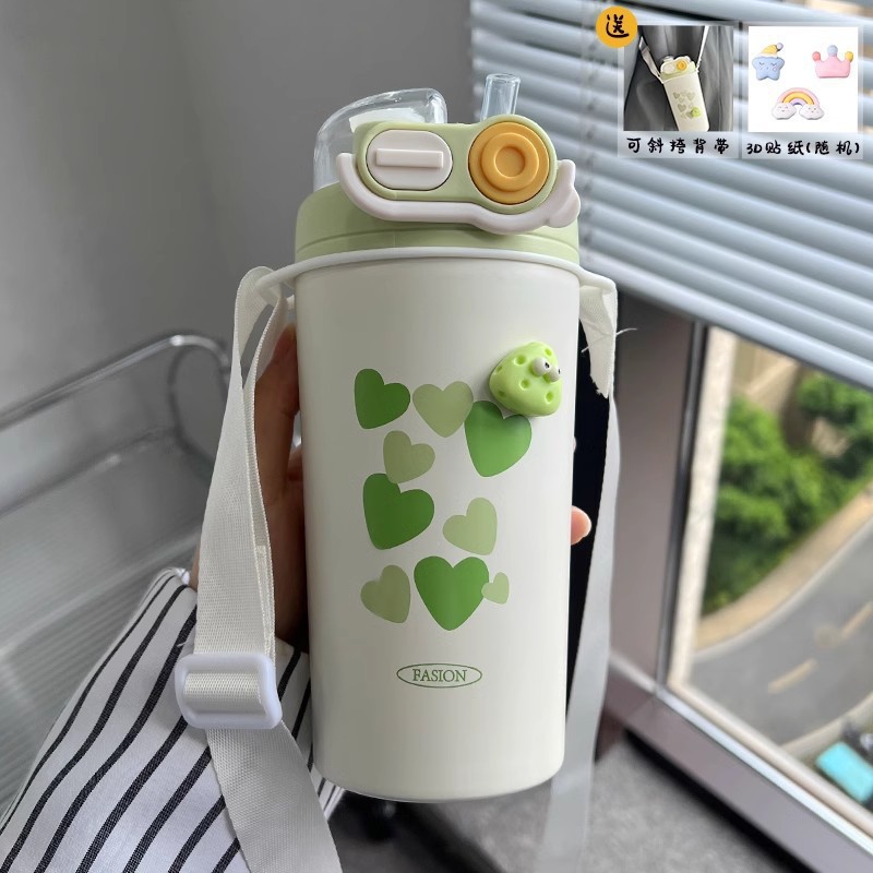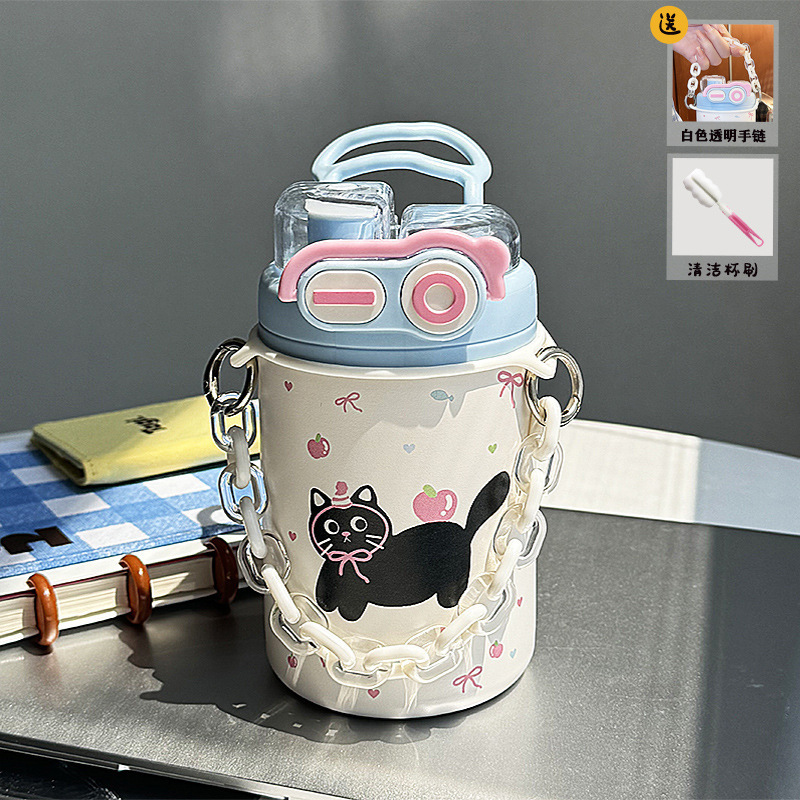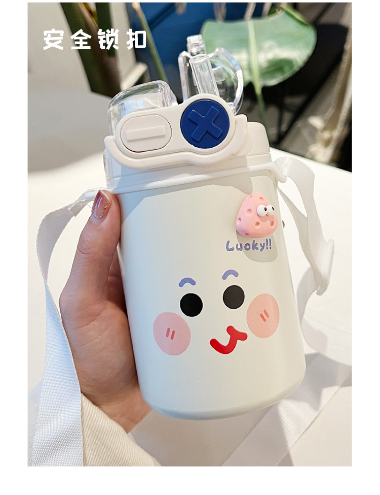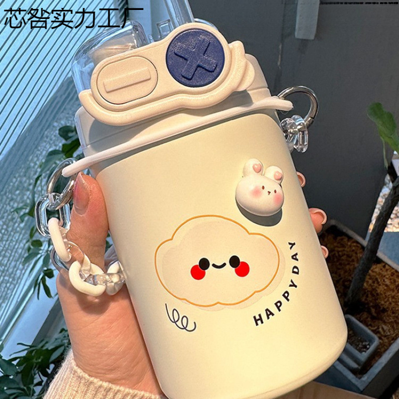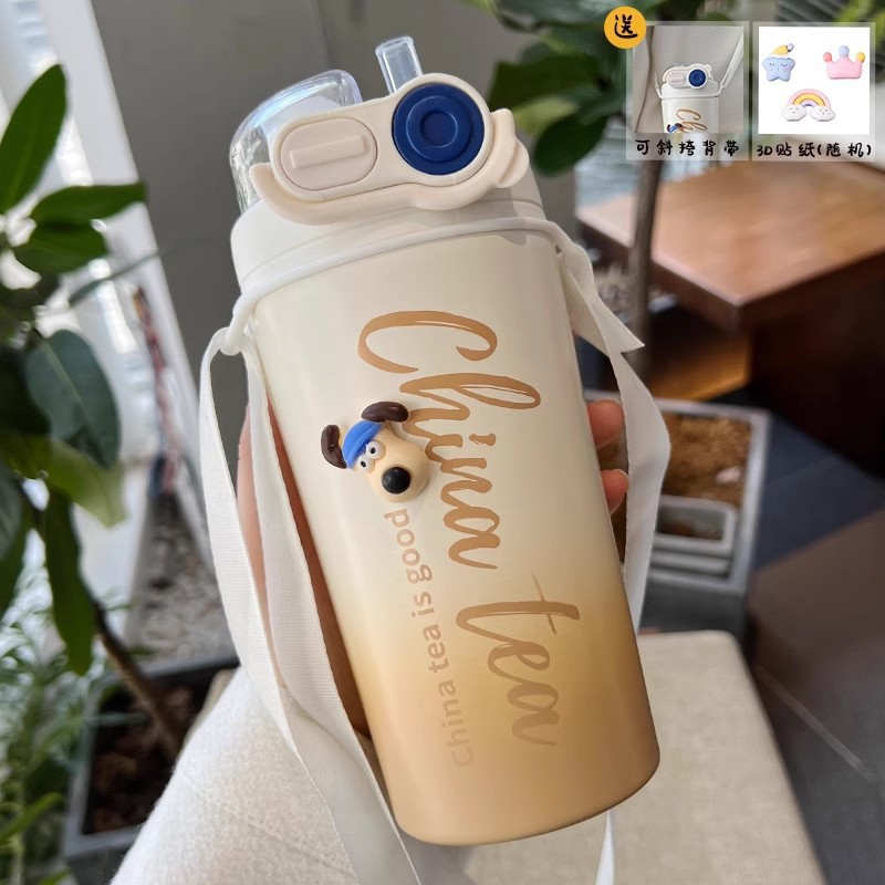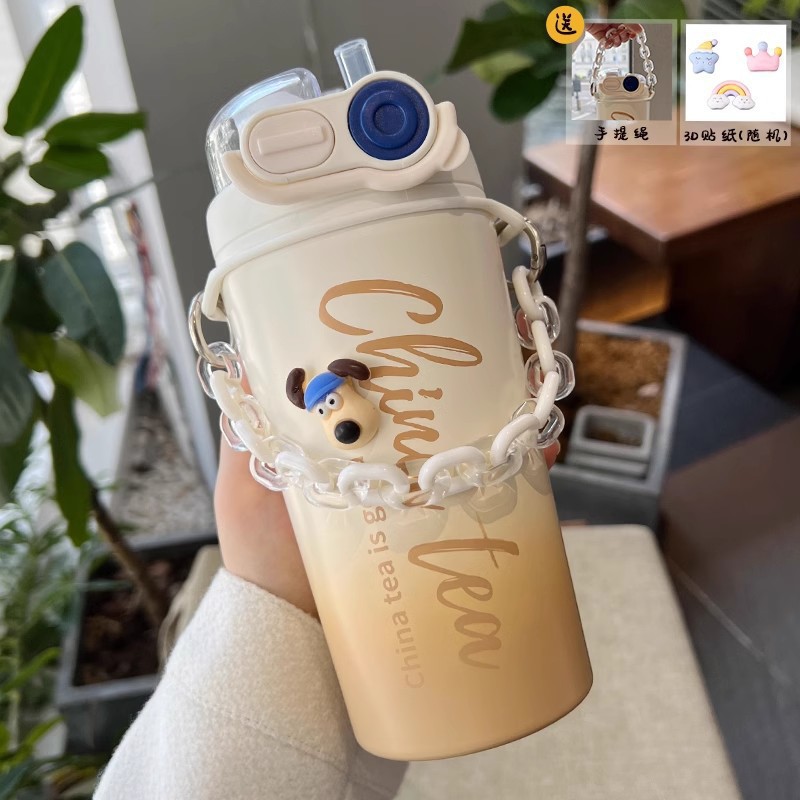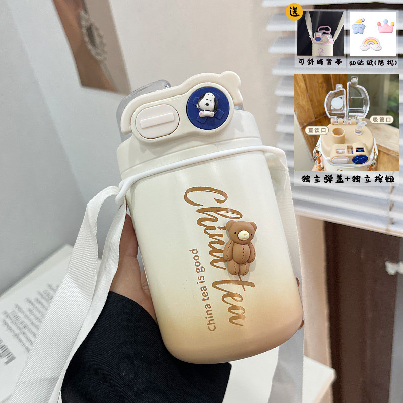 Color: White puppy 500ml (316 stainless steel) + large lifting rope + 3d sticker (random style)
