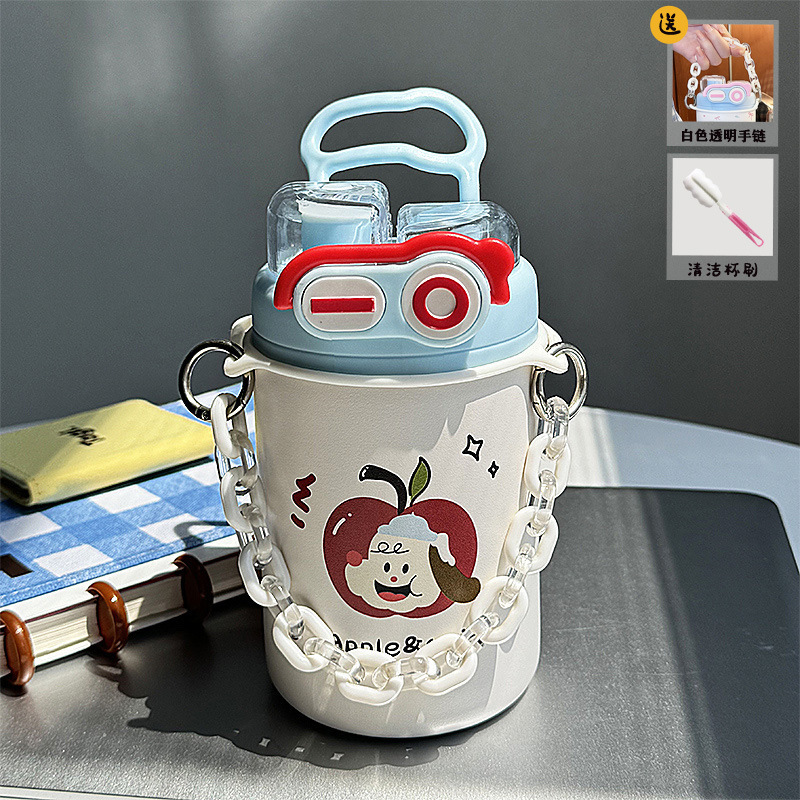 Color: White puppy 500ml (316 stainless steel) + transparent white bracelet + 3d sticker (random style)