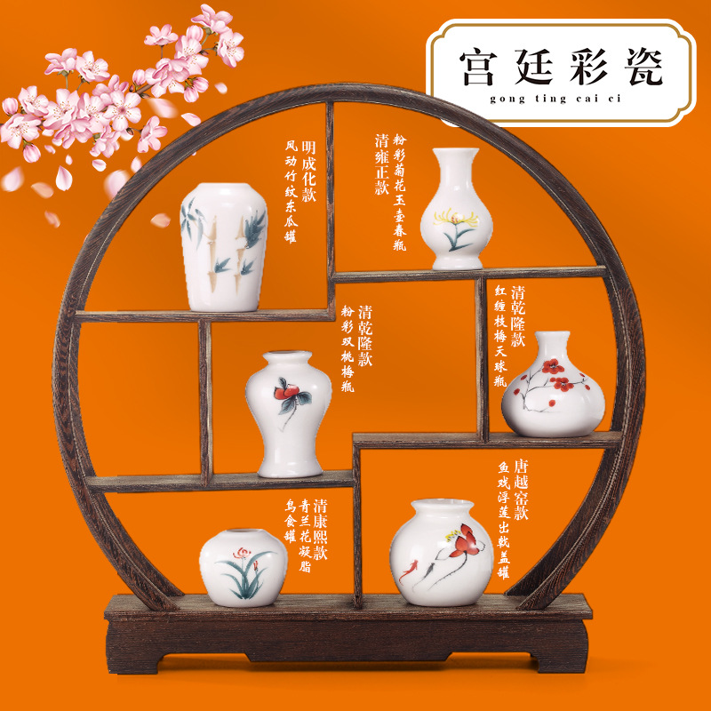 Color: Qianlong colored porcelain plus display stand set of 6 pieces