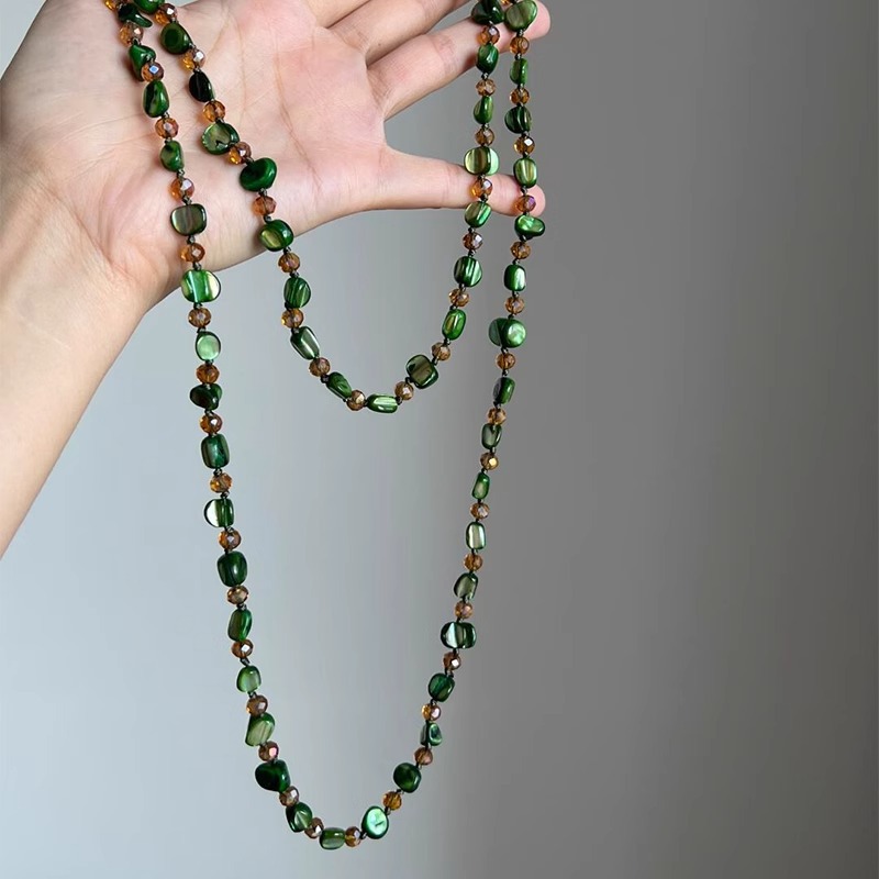 Green Shell Beaded Necklace Bohemian Style High-End Simple Spring and Summer Long Forest Style White Clavicle Chain for Women