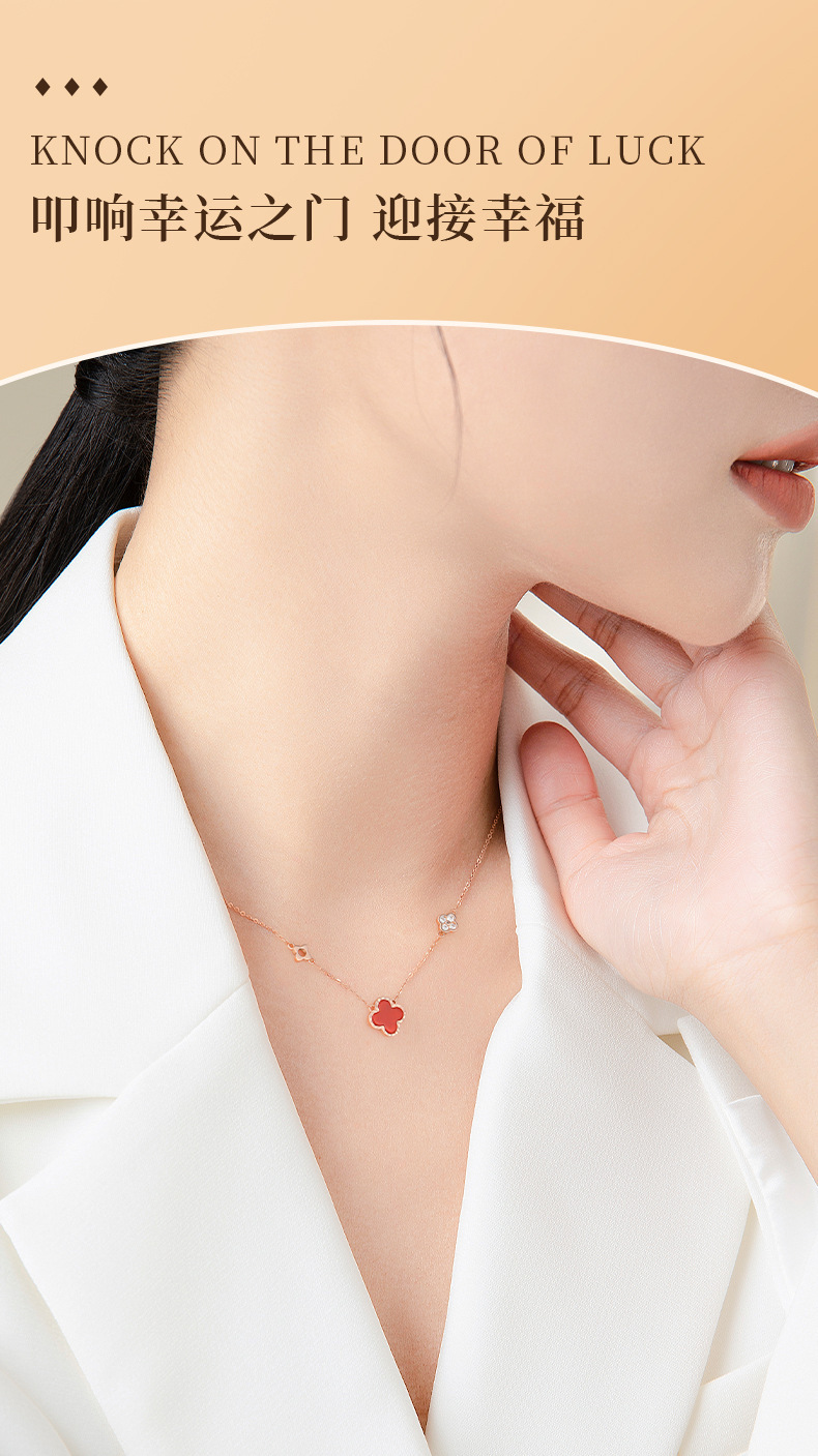 Color: Four-leaf clover necklace/red shell [rose gold]