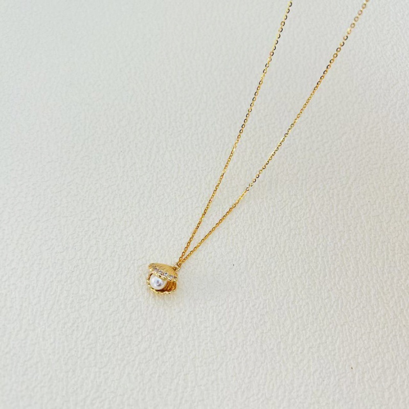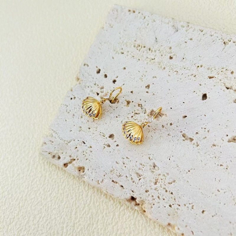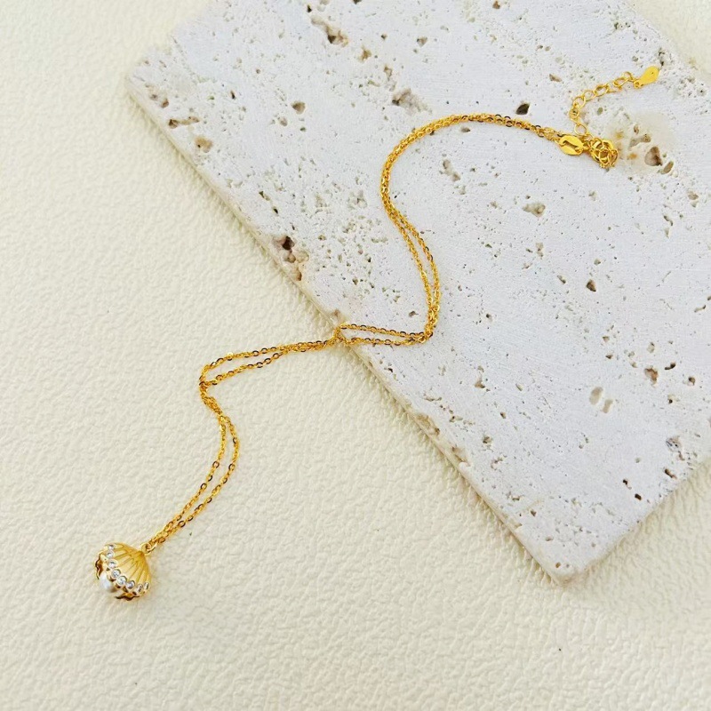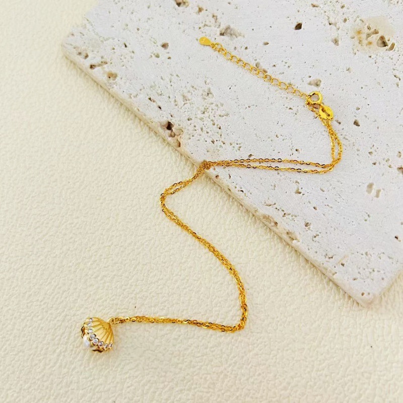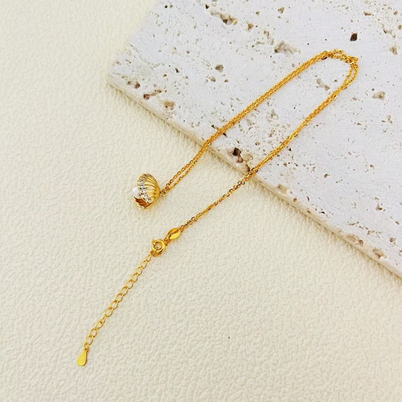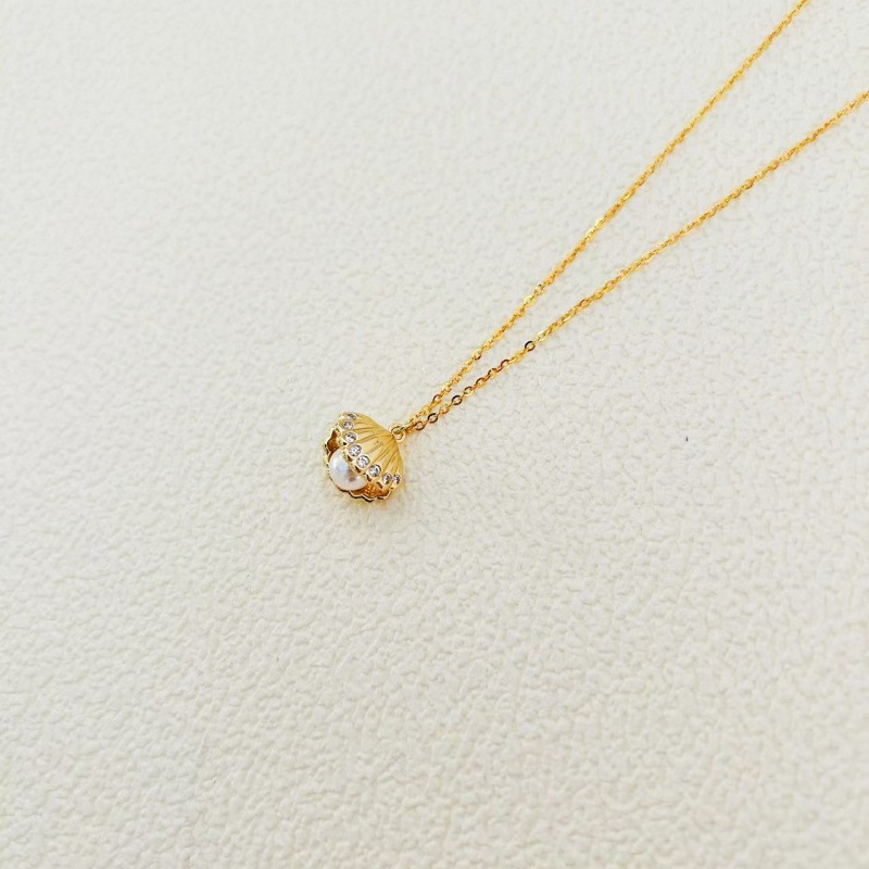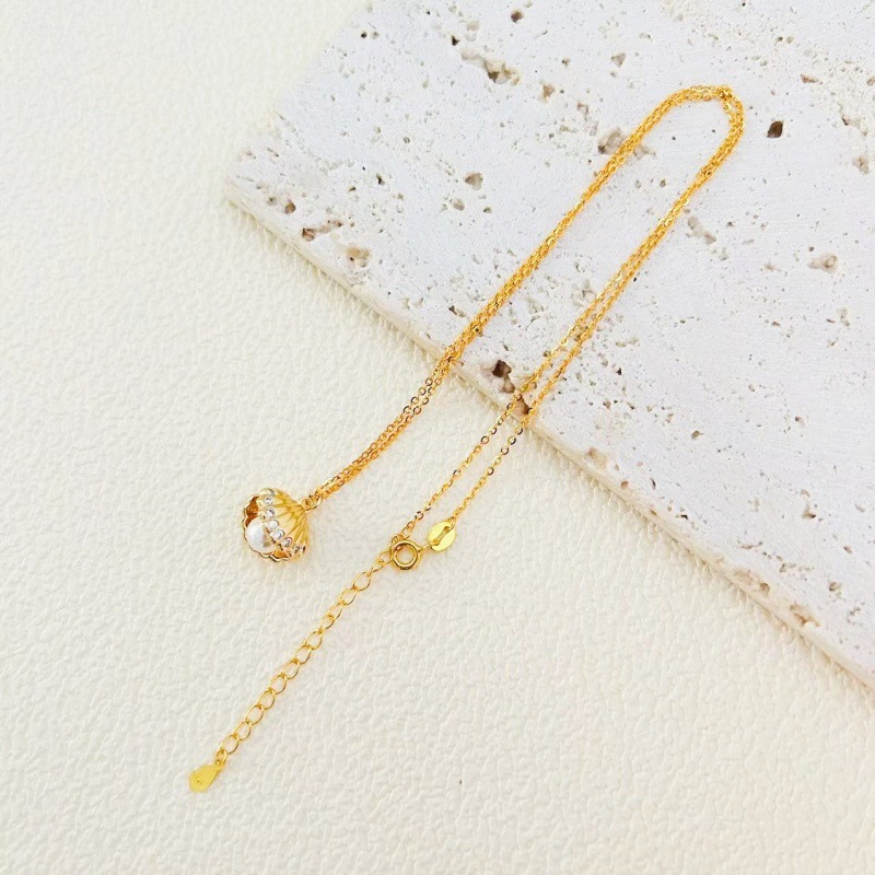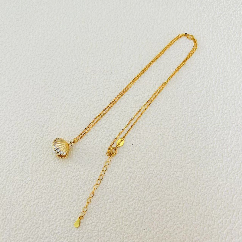 Copper plated 18k real gold chain shell pendant necklace 40+5cm