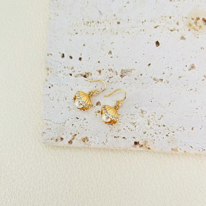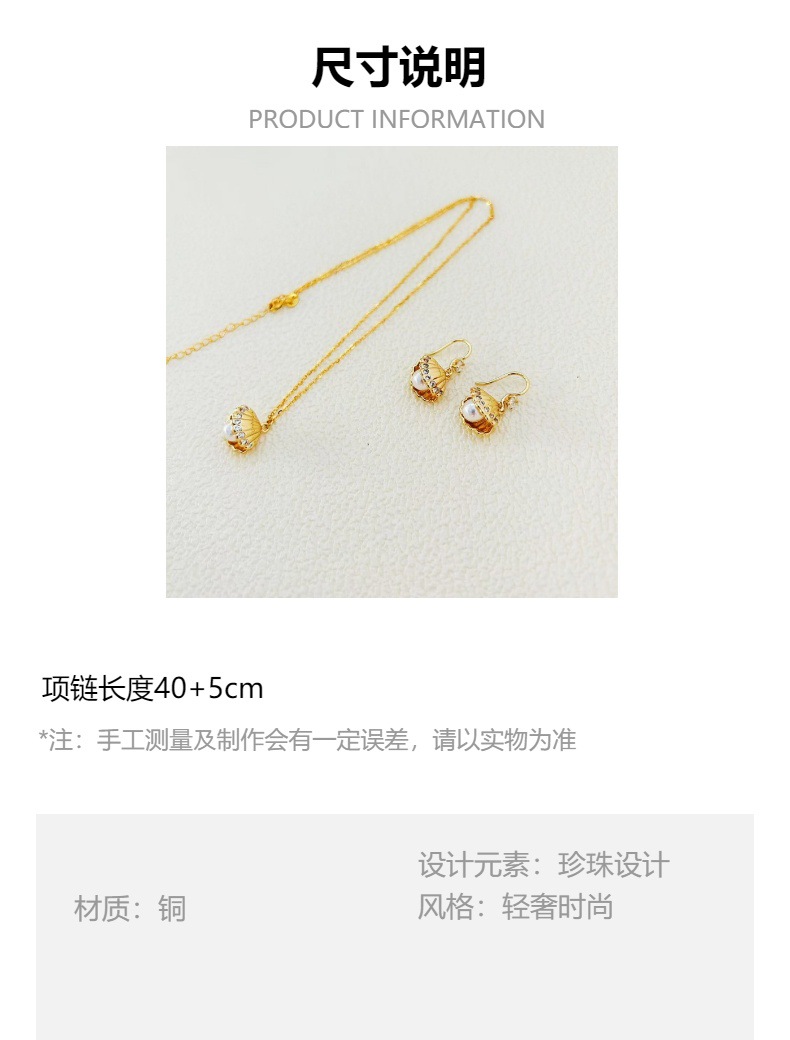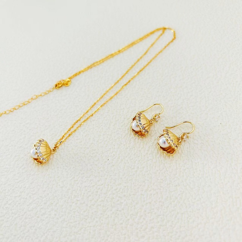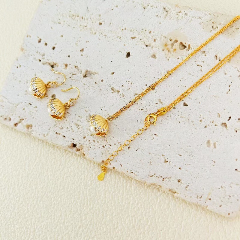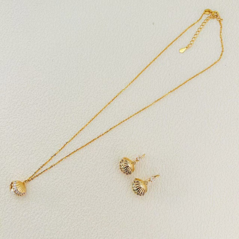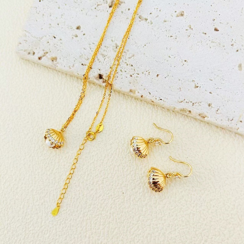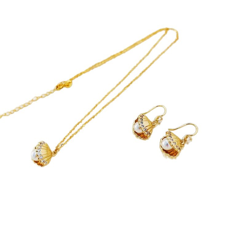 Cross-Border European and American Ins Style Fashionable Simple Elegant Pearl Shell Pendant Earrings Set Accessible Luxury High-End Necklace
