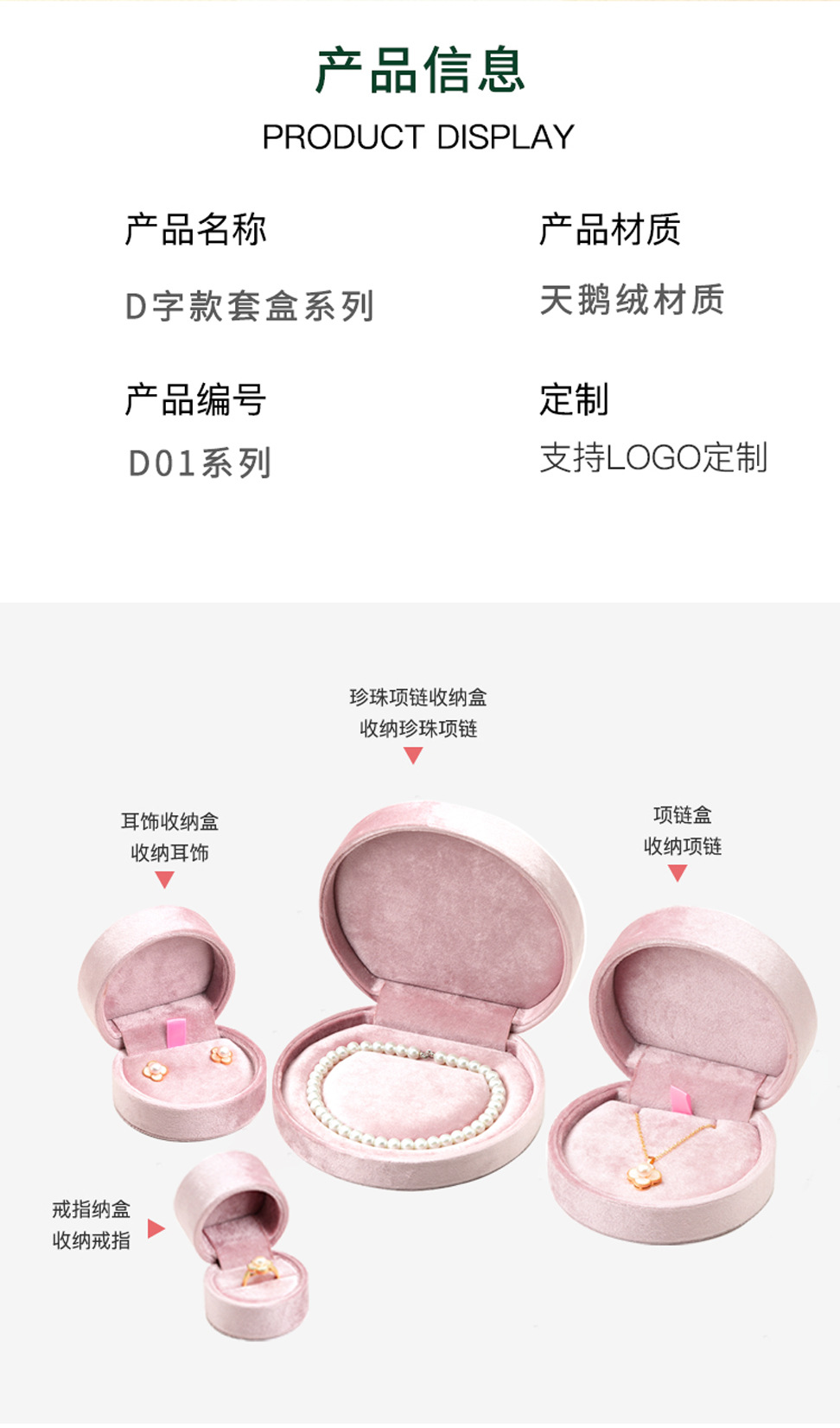 Velvet Oval Pearl Necklace Box Jewelry Jewelry Box Earrings Pendant Packaging Box Storage Box Display Box