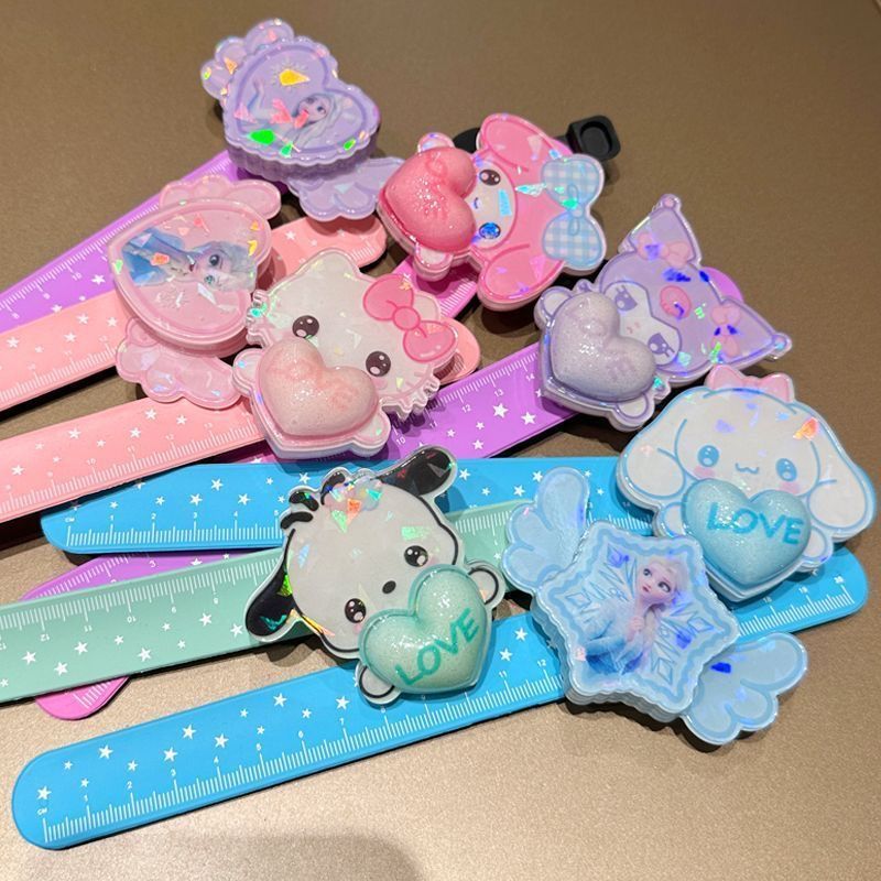New Laser Children's Luminous Rotating Nezha Snap Ring Silicone Bracelet Sanrio Toy Cartoon Girl Cute