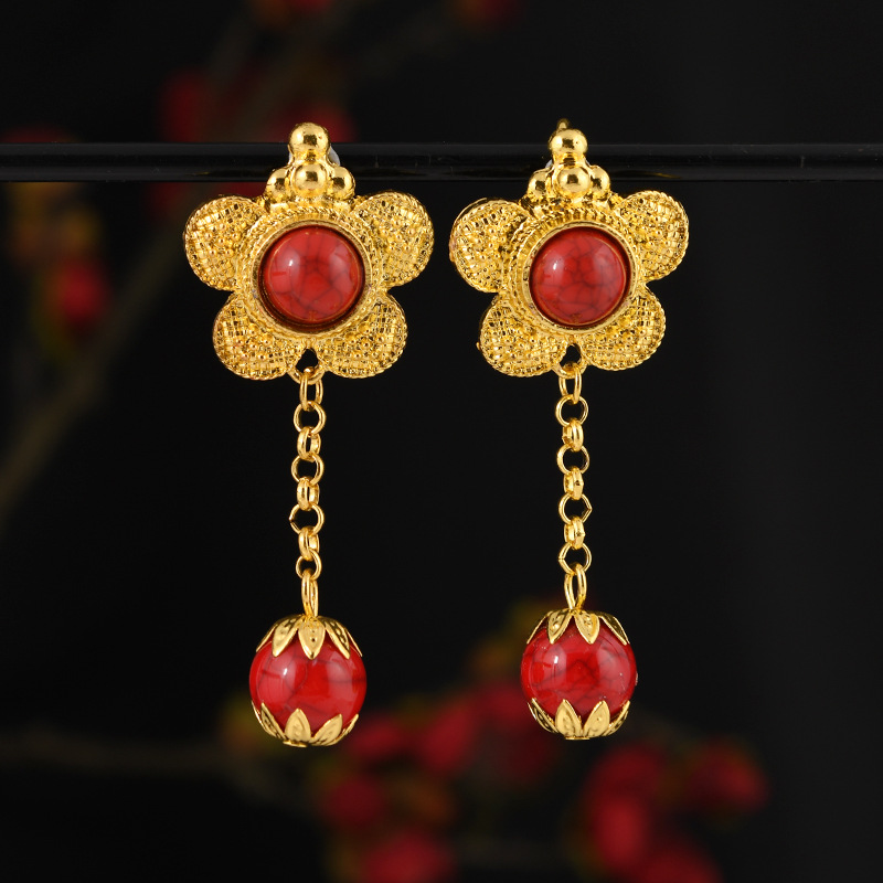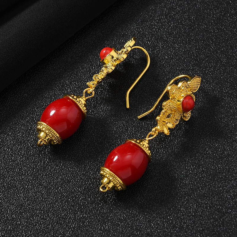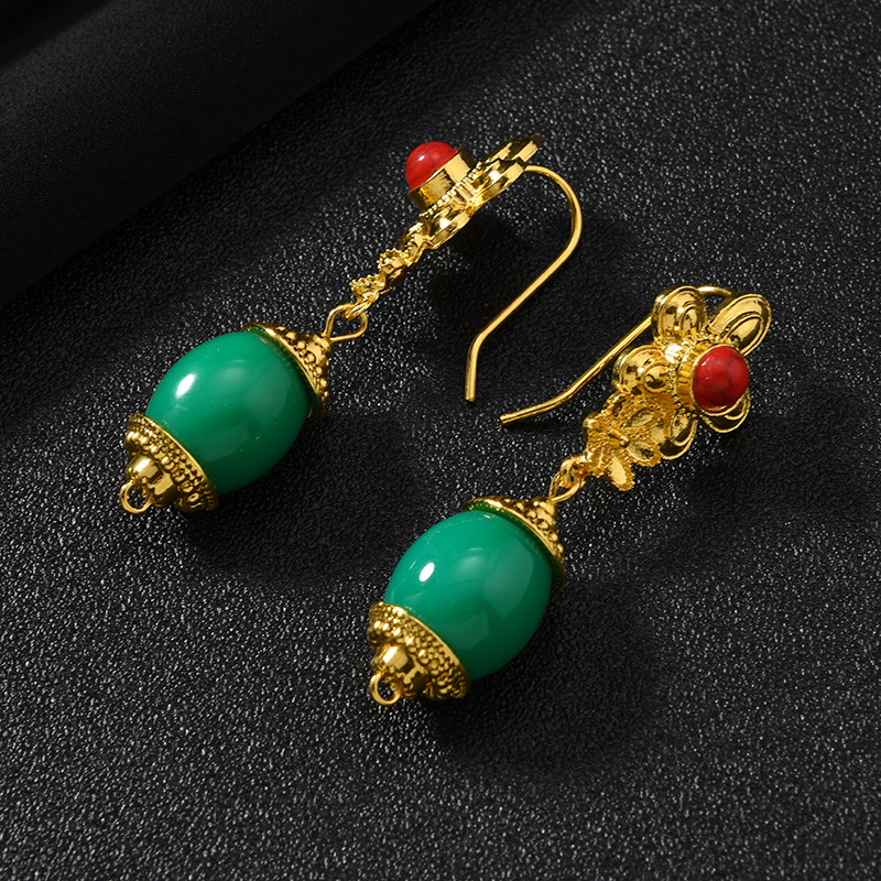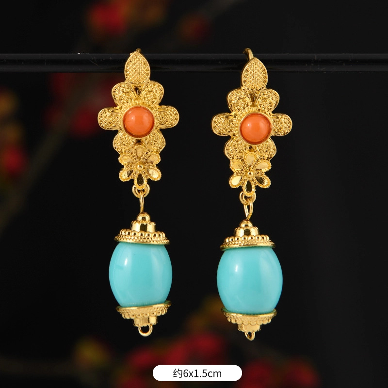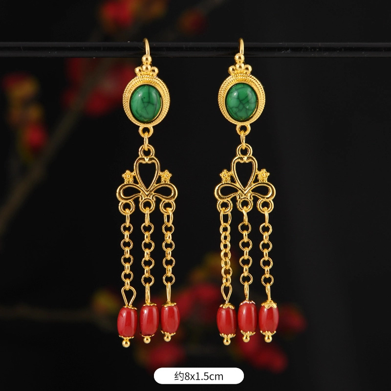 Xizang Ethnic Style Earrings Nepalese Golden Xizang Style Long Earrings Xizang Women's Earrings Xizang Clothing Accessories