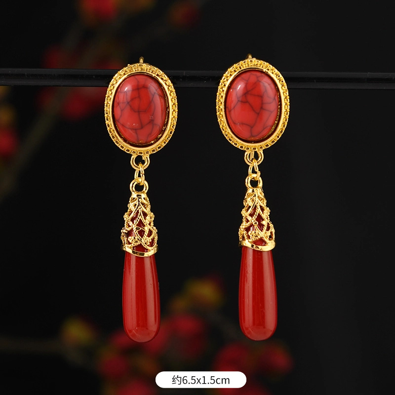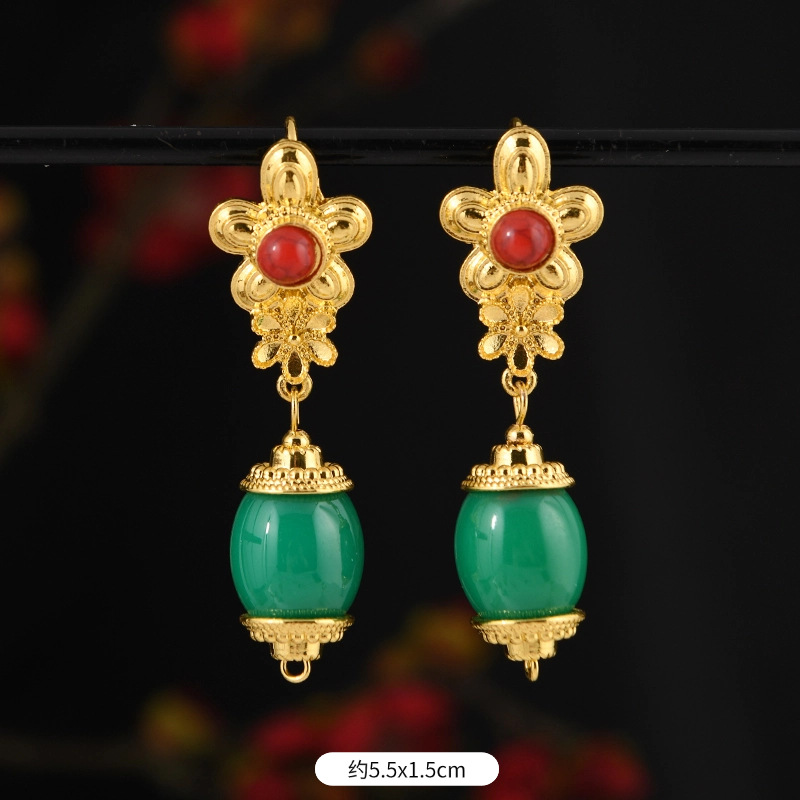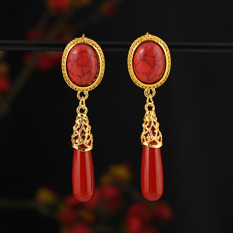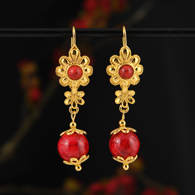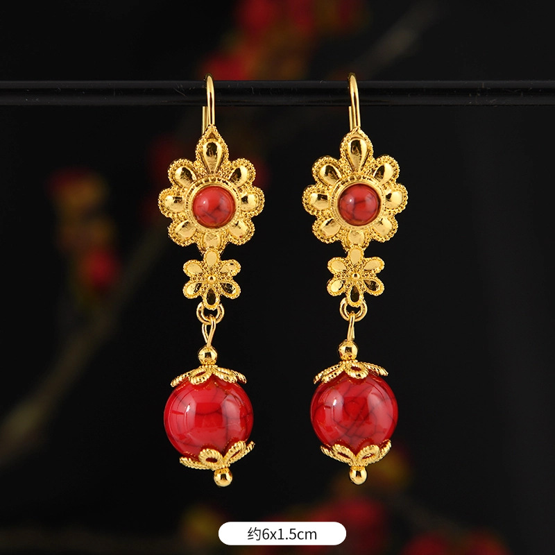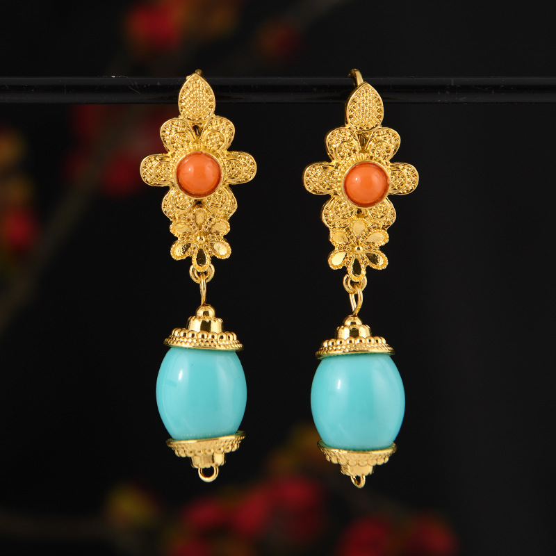 Xizang Ethnic Style Earrings Nepalese Golden Xizang Style Long Earrings Xizang Women's Earrings Xizang Clothing Accessories