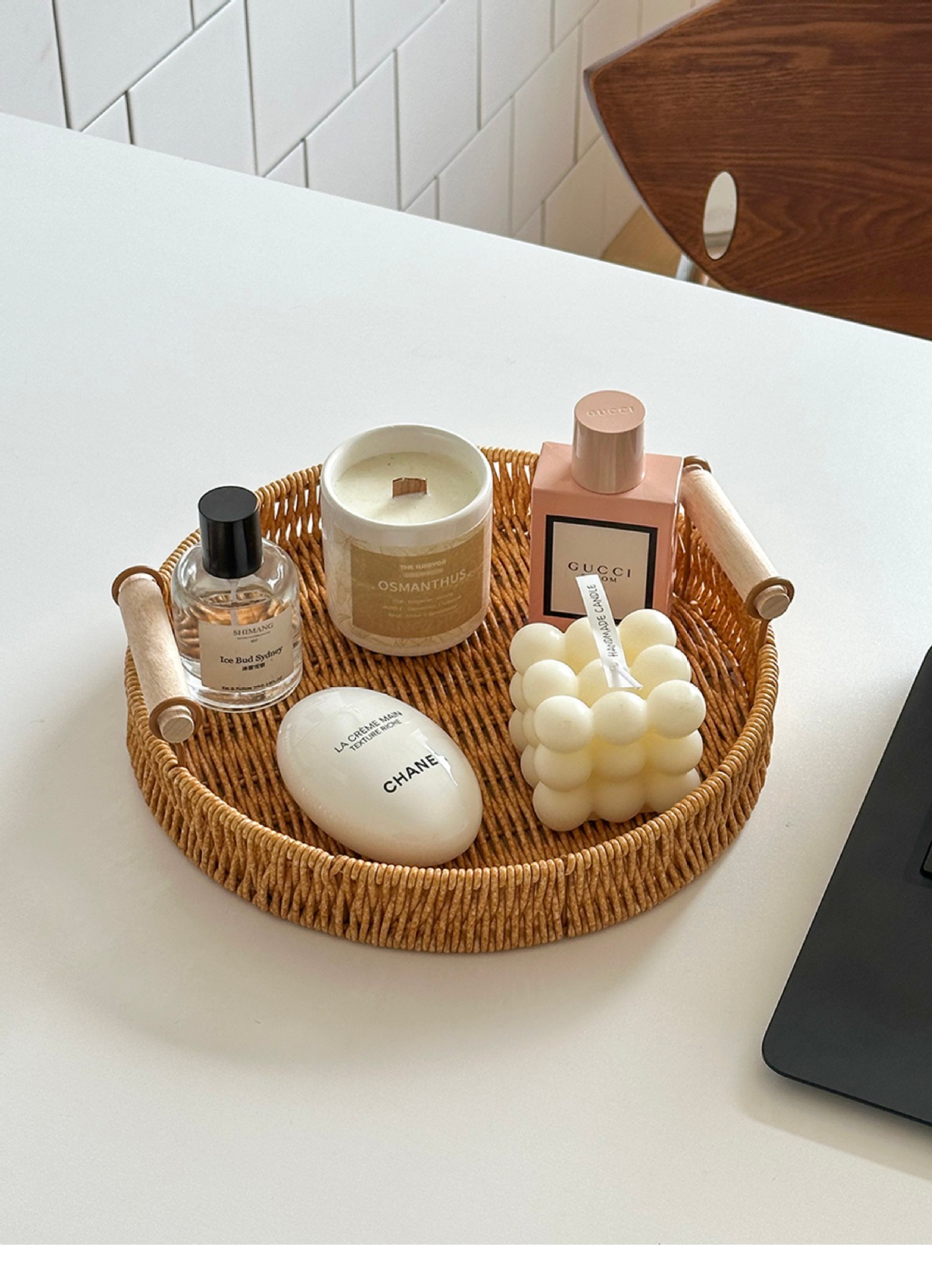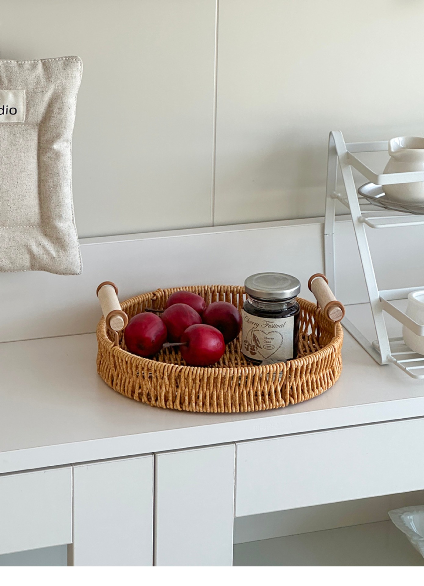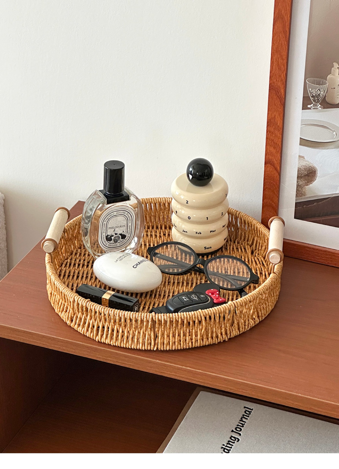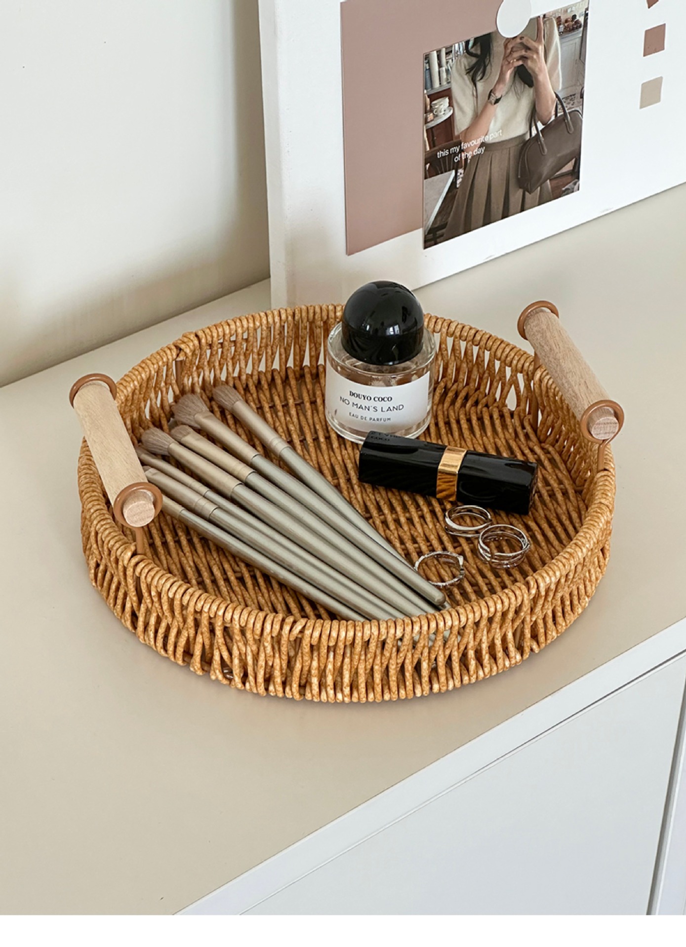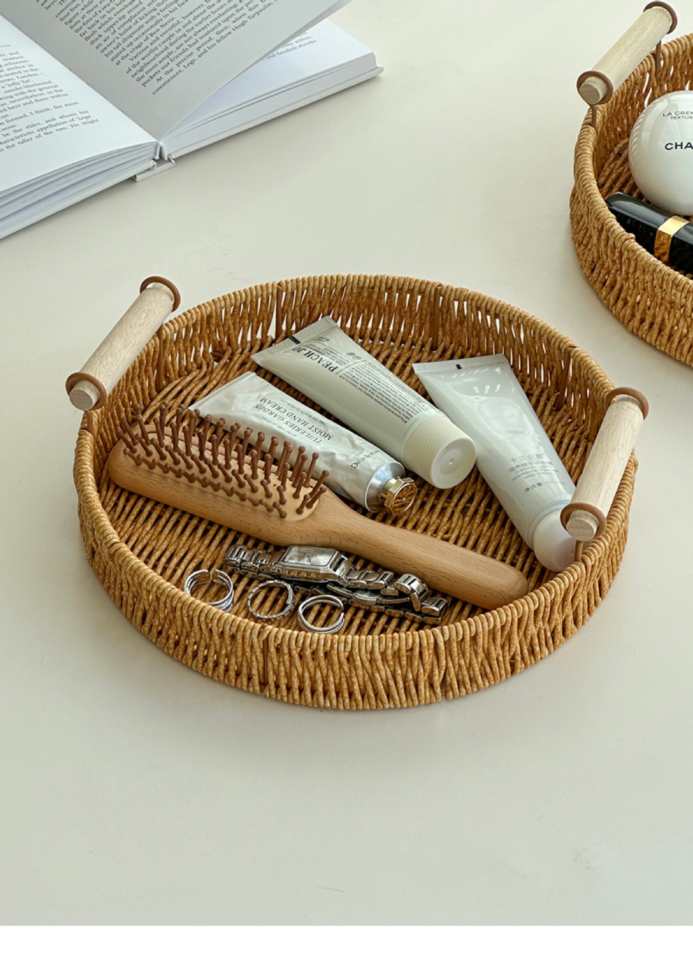 Photo Props Korean Rattan-like Storage Tray Wooden Handle Advanced Decorative Ornaments Storage Basket Display