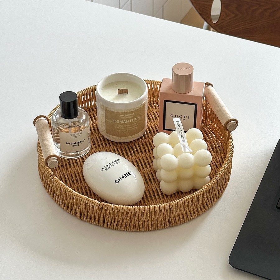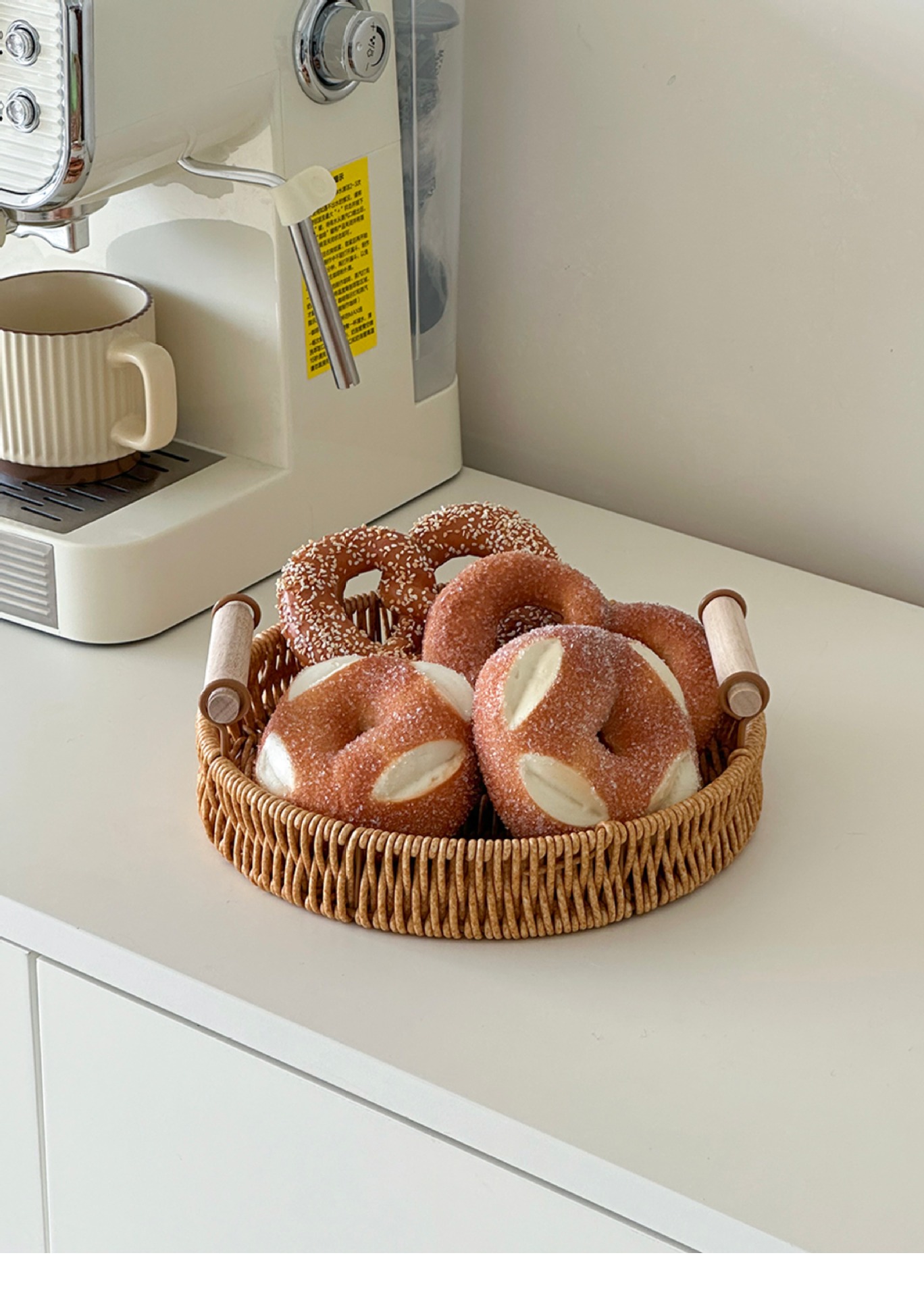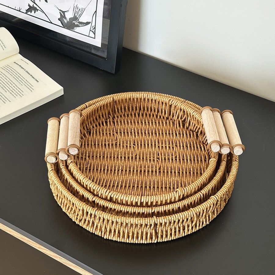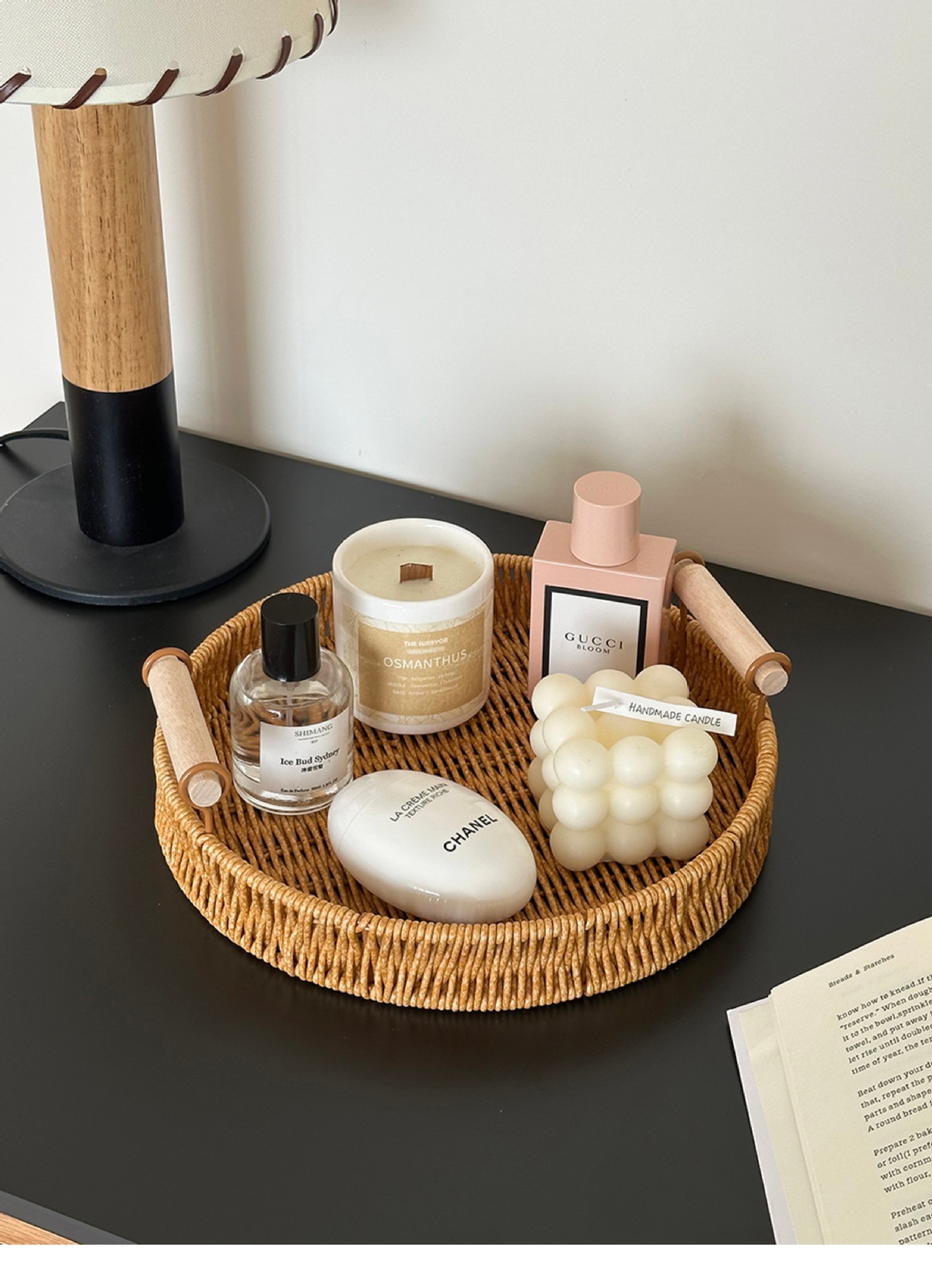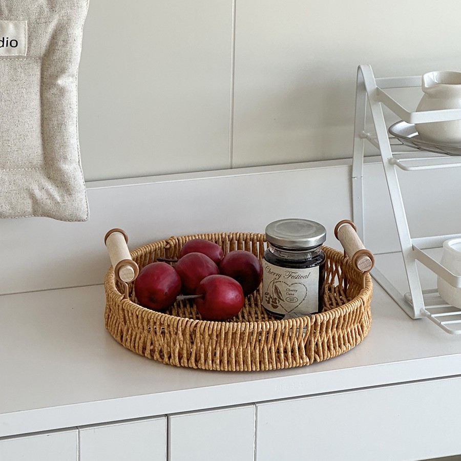 Photo Props Korean Rattan-like Storage Tray Wooden Handle Advanced Decorative Ornaments Storage Basket Display