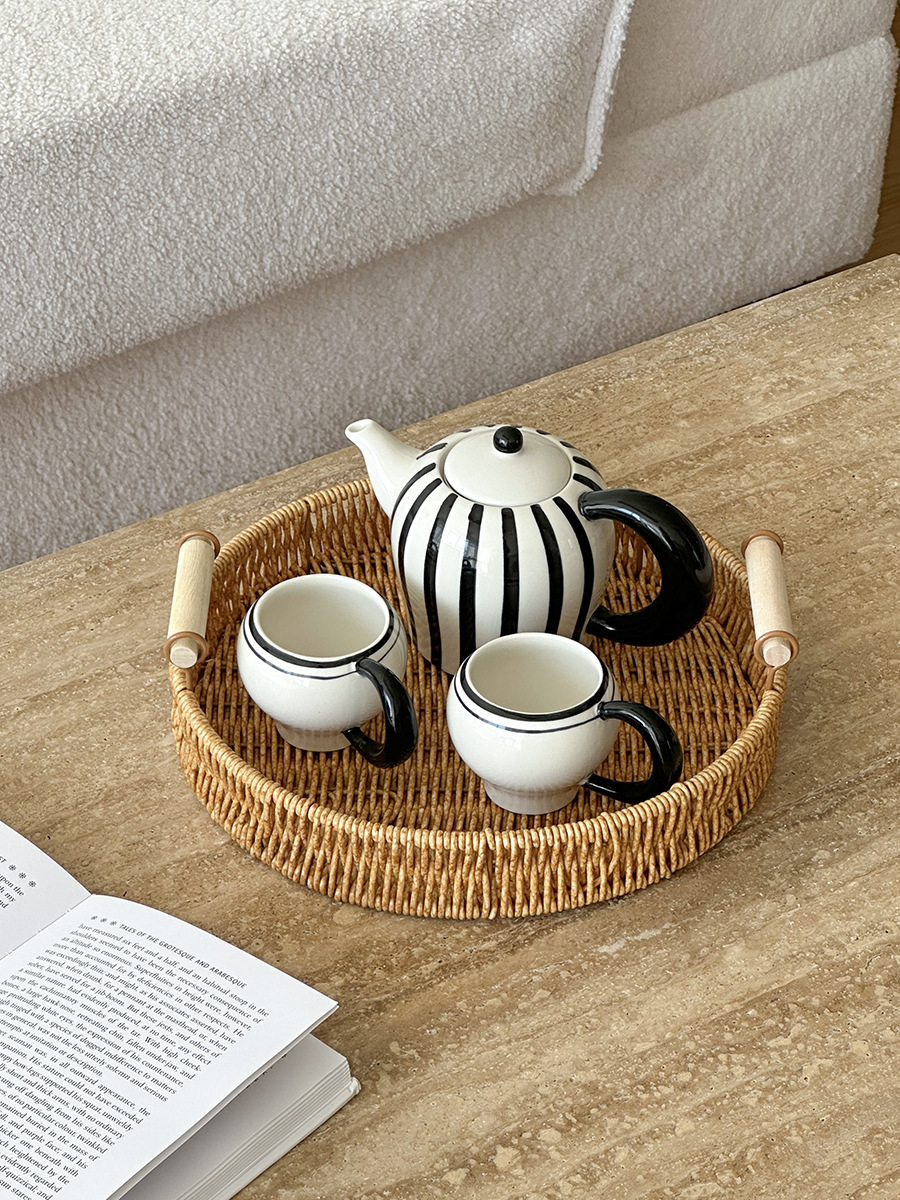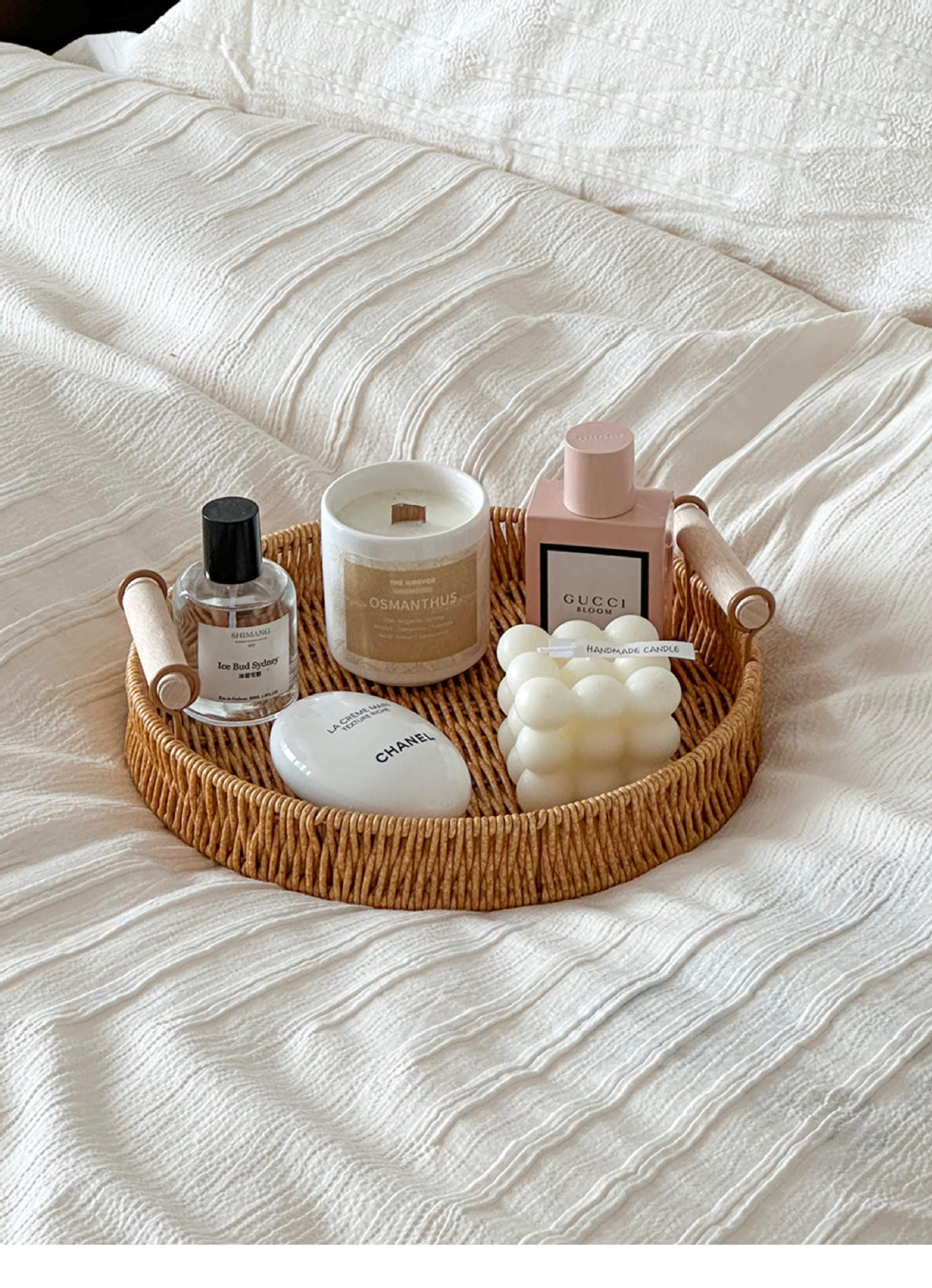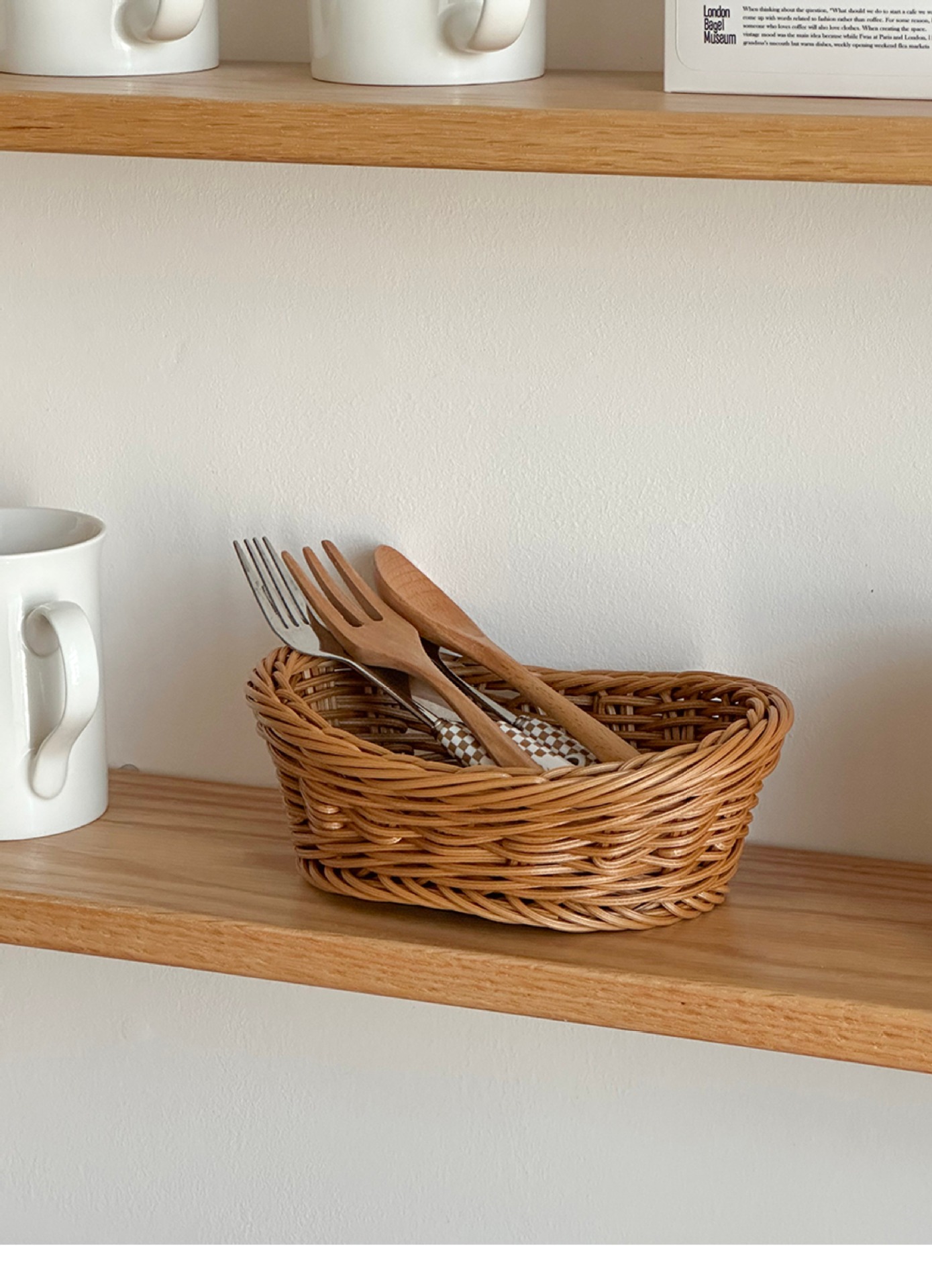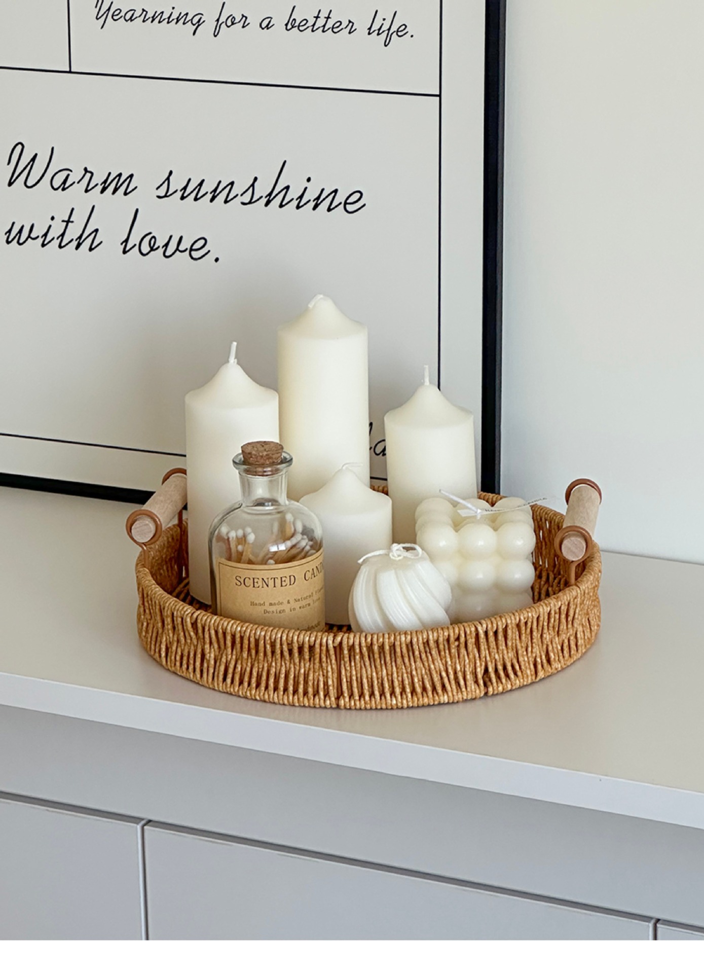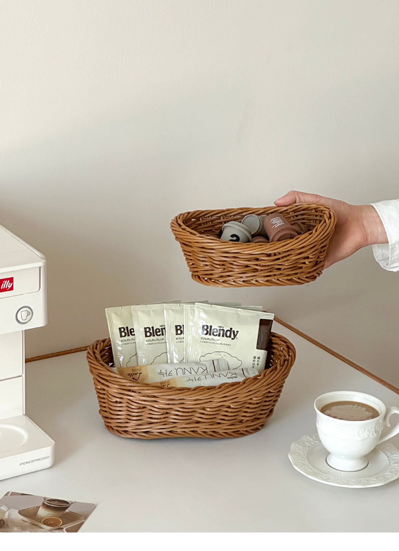 Photo Props Korean Rattan-like Storage Tray Wooden Handle Advanced Decorative Ornaments Storage Basket Display