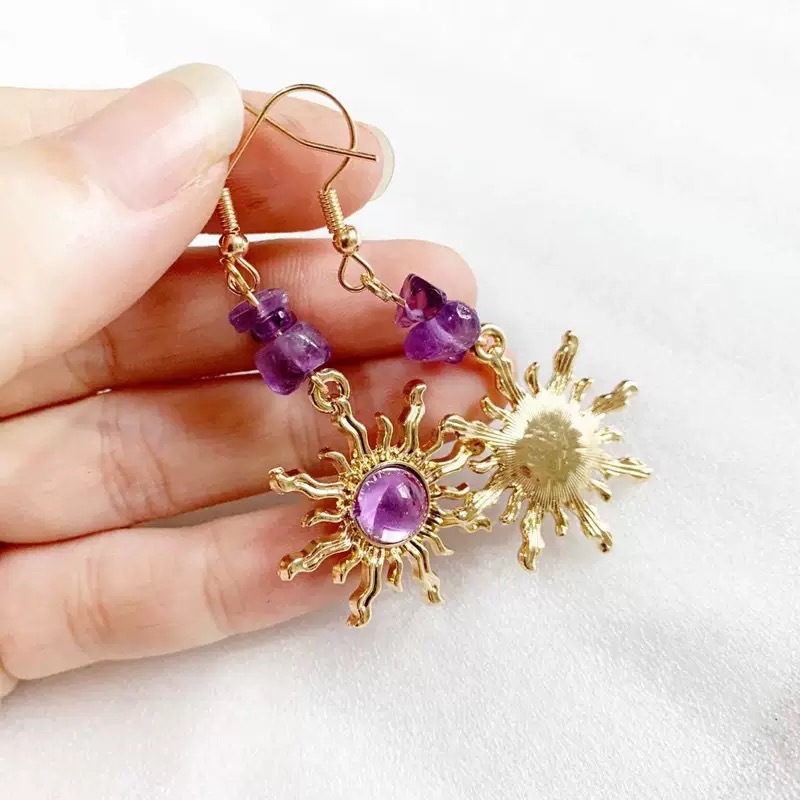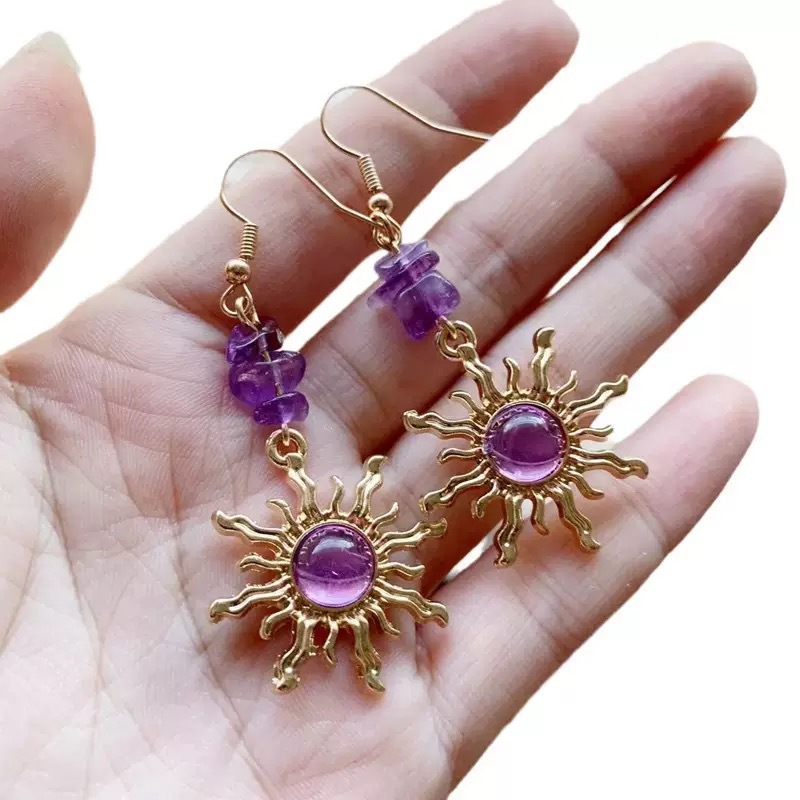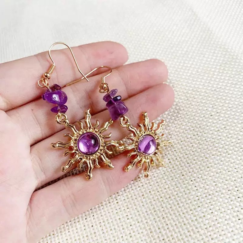 Natural Gravel Sun Earrings Gold Irregular Amethyst Stone Earrings Pendant Earrings Aliexpress Cross-Border