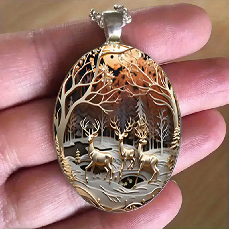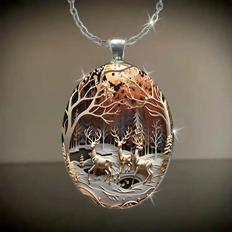 Cross-border foreign trade fashion exquisite diy pattern oval glass alloy pendant necklace factory direct sales