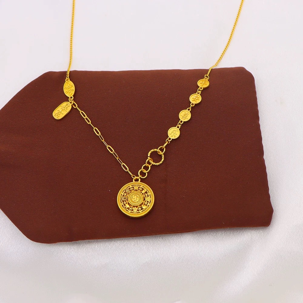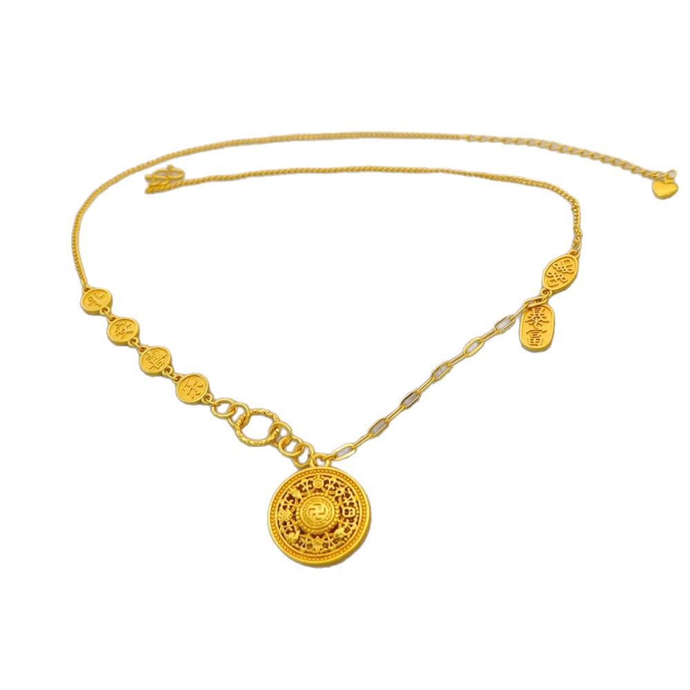 Wholesale of New Chinese-Style Hollow Disc Pendant Necklace with Compass Design for Peace, Joy, and Wealth from the Gold Store
