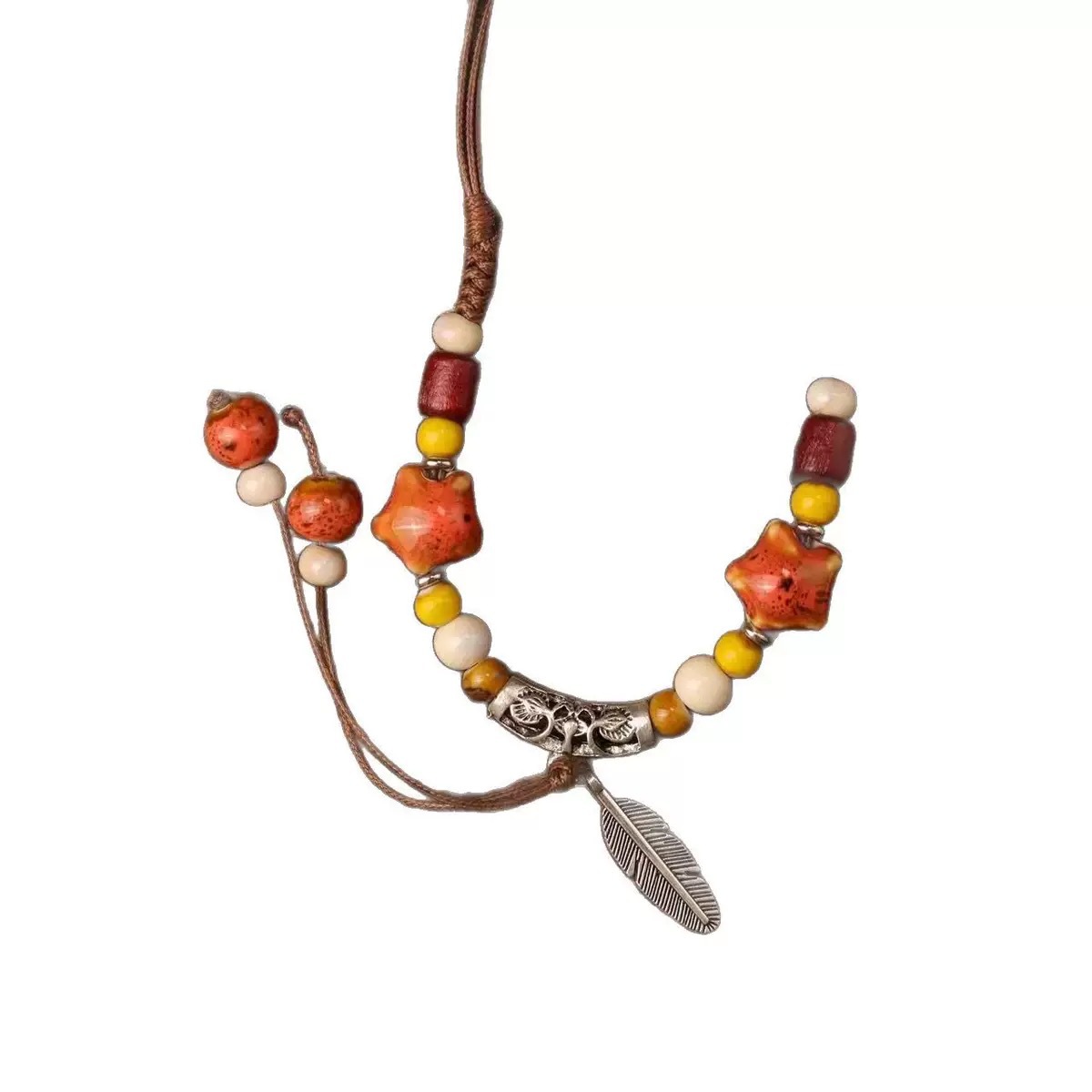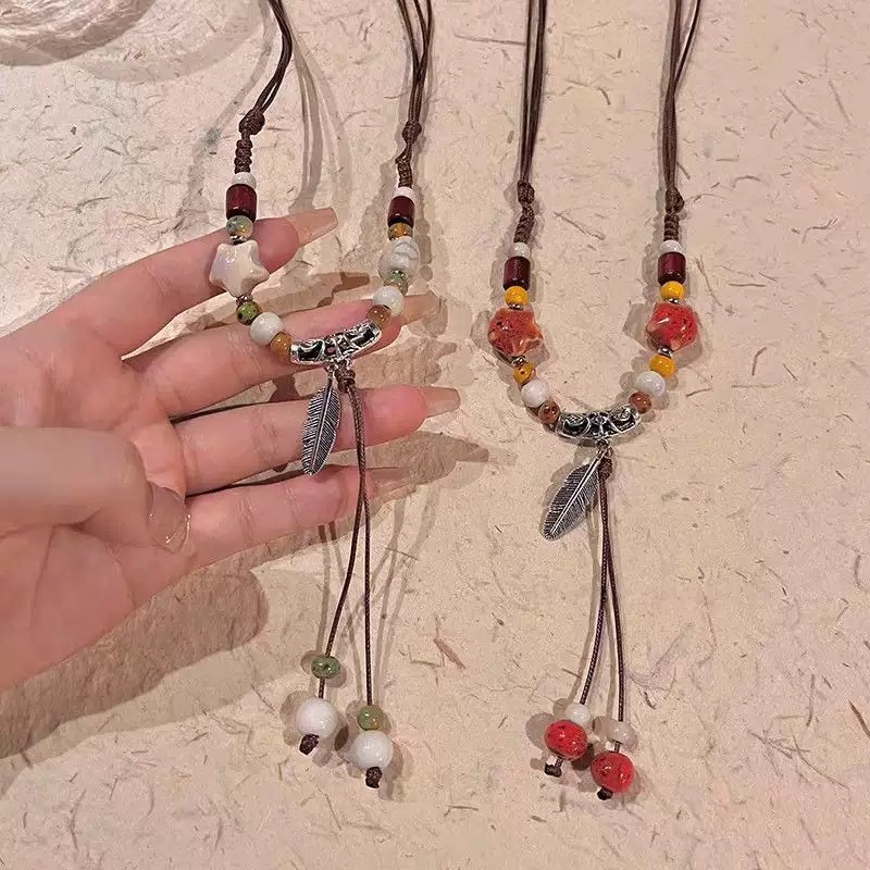 New Chinese Style Ethnic Style Ceramic Antique Style Long Sweater Chain Twist Necklace Chinese Style Jewelry Versatile Sweater Necklace