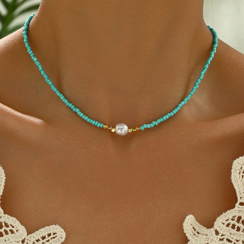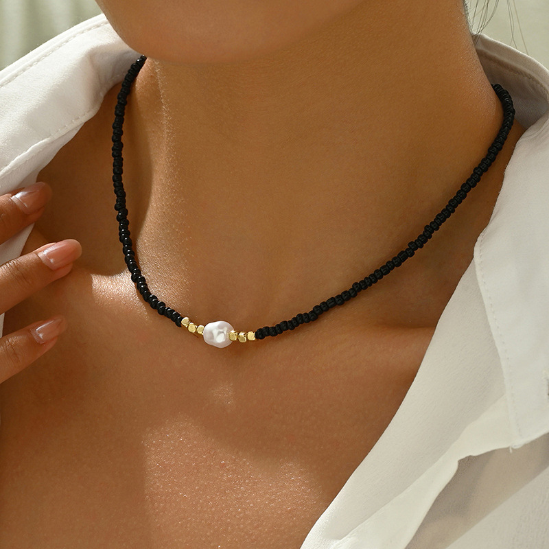 品名:蓉尚 仿珍珠编织米珠项链 米珠女式项链 简约时尚气质项链
