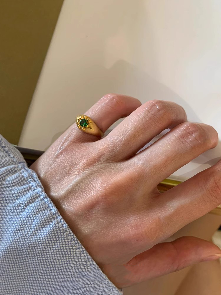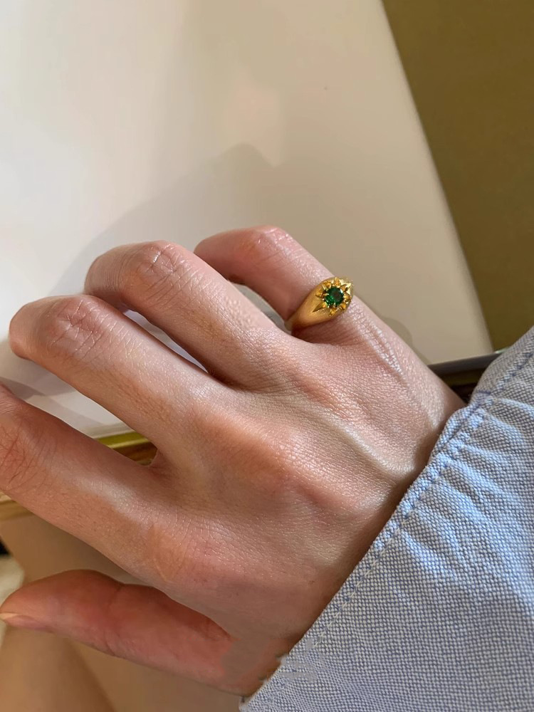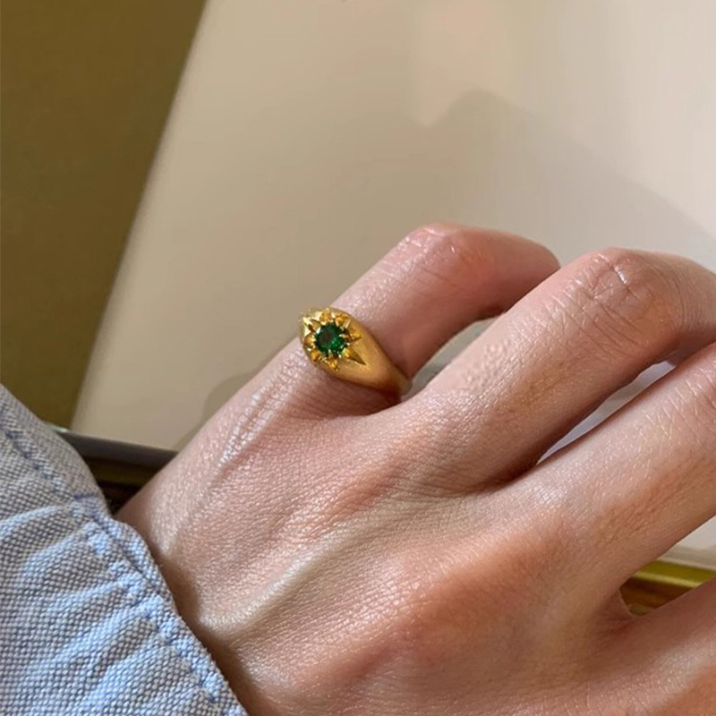 Little Red Book Explosions Middle Ancient Emerald High Sense Carving Small Thumb Tail Ring Light Luxury Women's Tail Ring