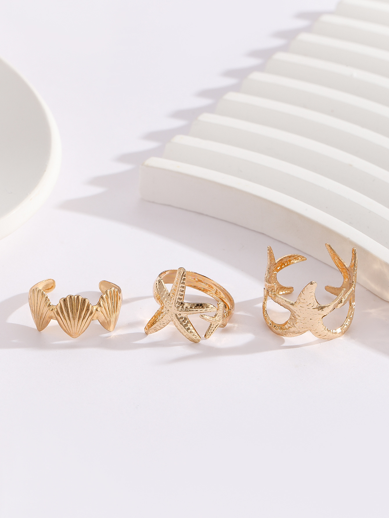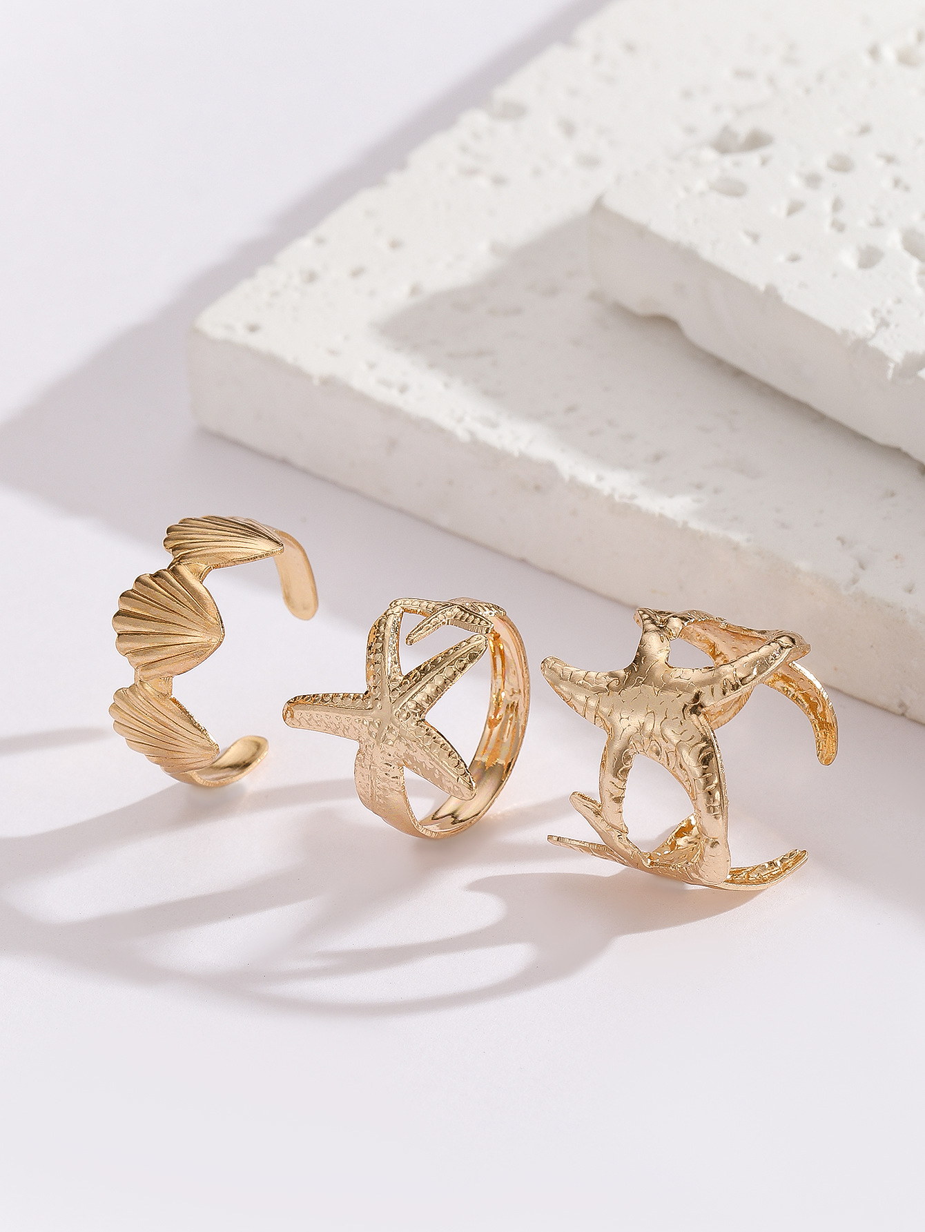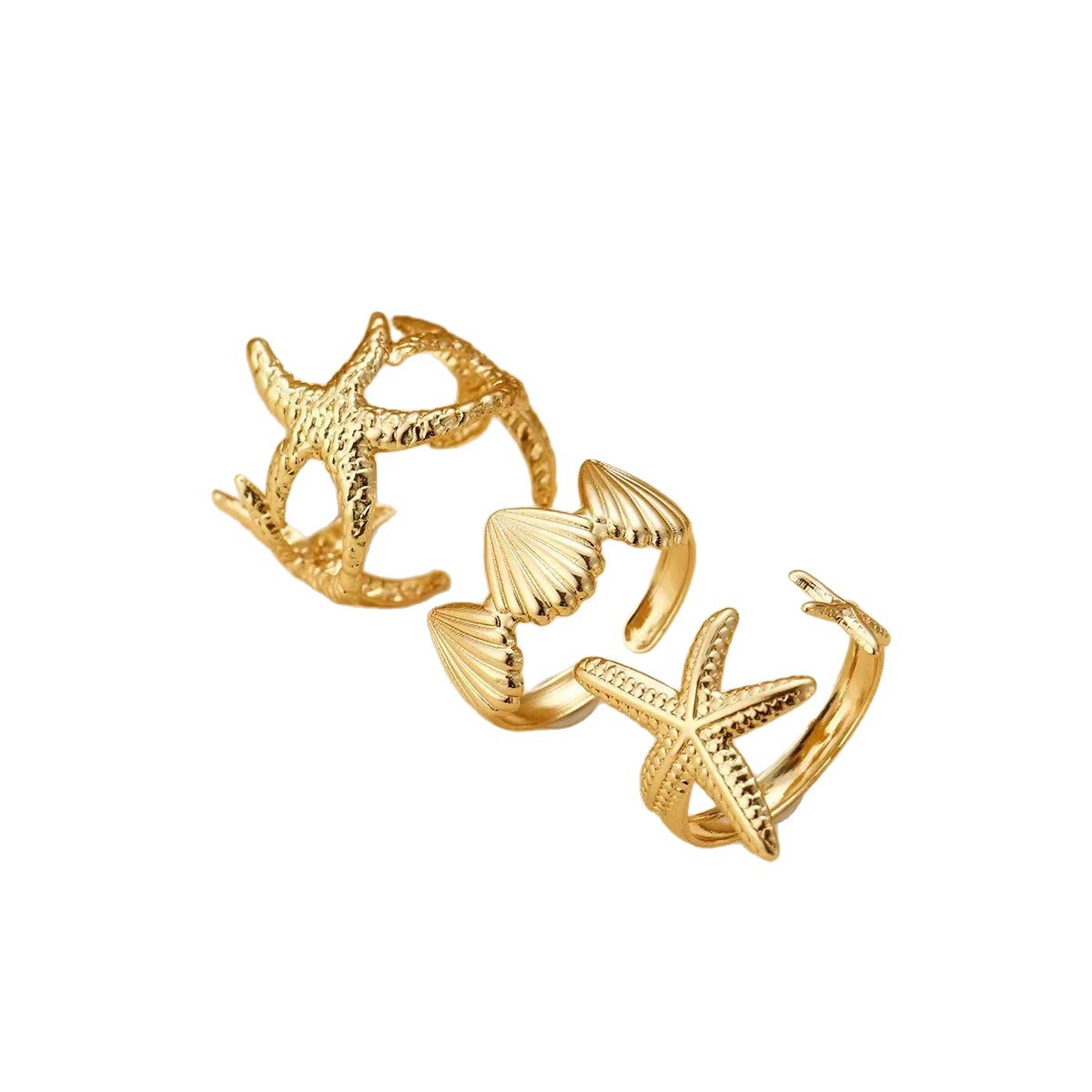 European and American Cross-Border Rings, Popular Hollow Design, Ocean Vacation Style, Starfish Open Ring Set, Women's Fashion