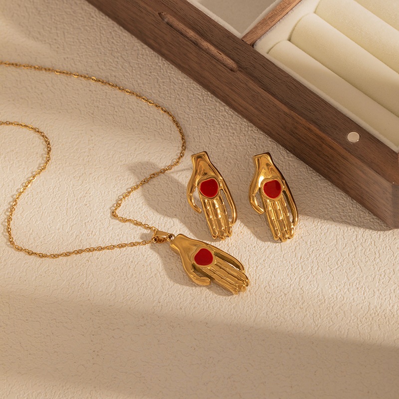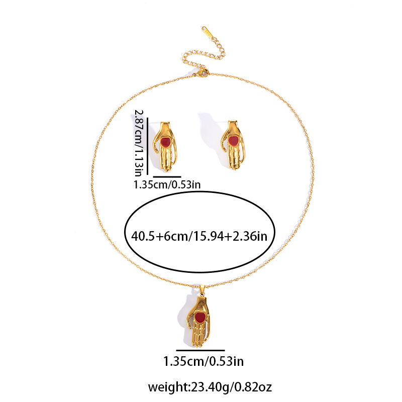Color Dropping Oil Love Palm Pendant Punk Dark Style 18k Gold Plated Stainless Steel Jewelry suit Earrings Necklace