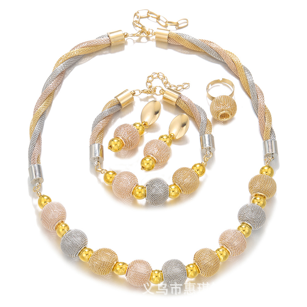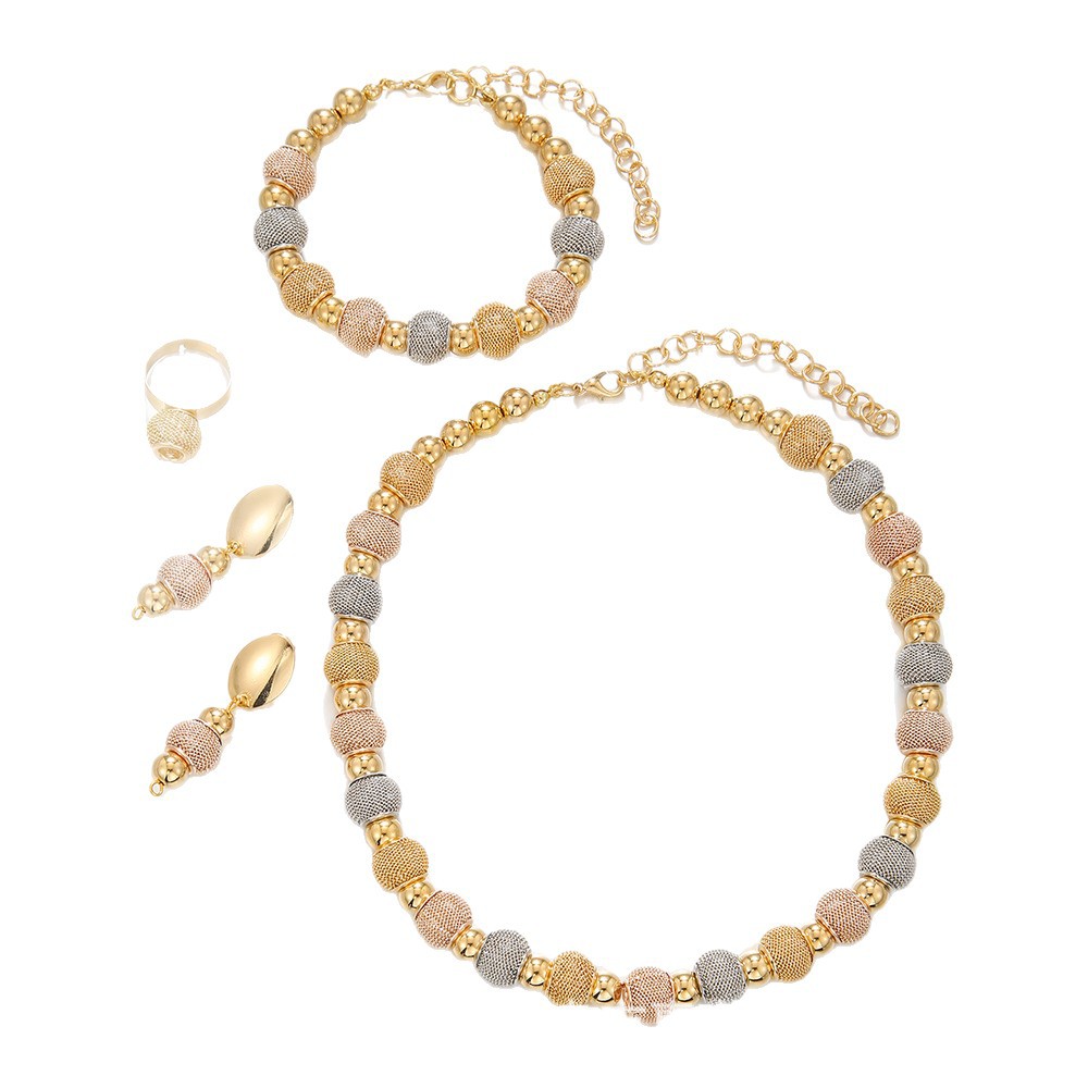 Fashion Contrast Large Bead Necklace Mesh Bead Bracelet Earrings Ring Jewelry Set Exaggerated