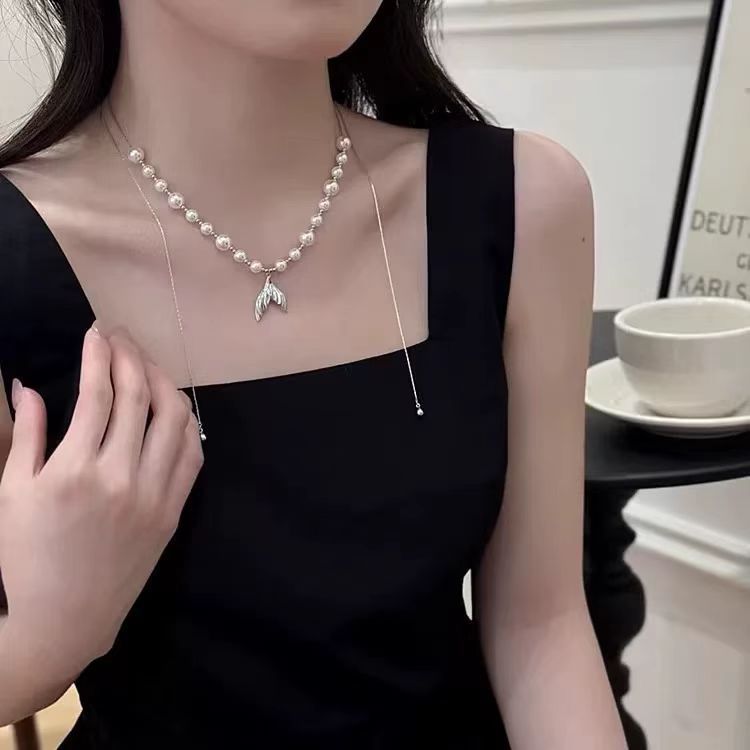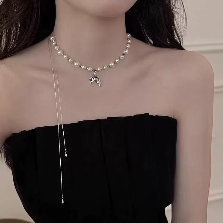 2025 New Long Fishtail Pearl Necklace Accessible Luxury High-End Versatile Clavicle Chain Cool Goddess Style Necklace