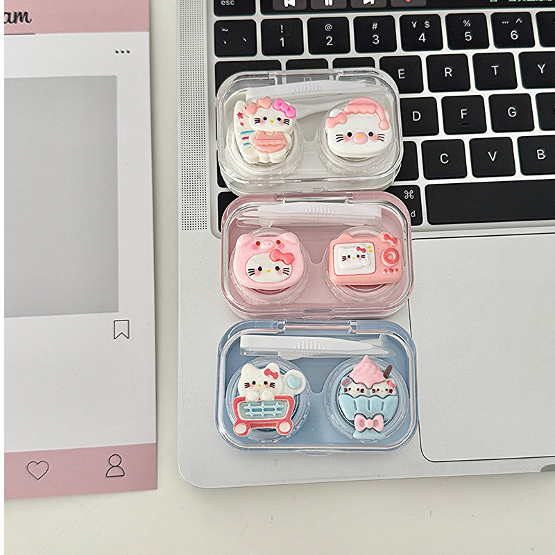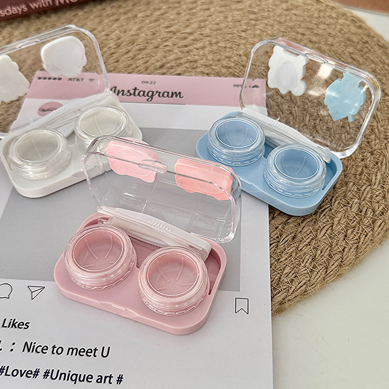 Beautiful pupil box cute K cartoon integrated contact lens companion box storage box compact portable double box with lid