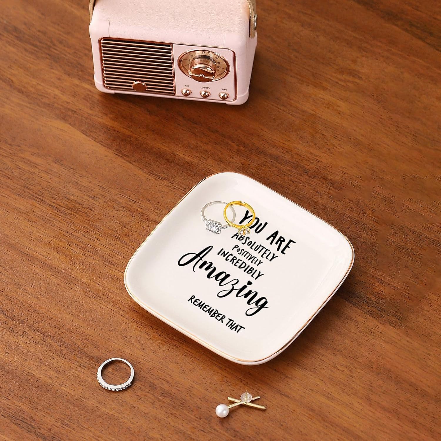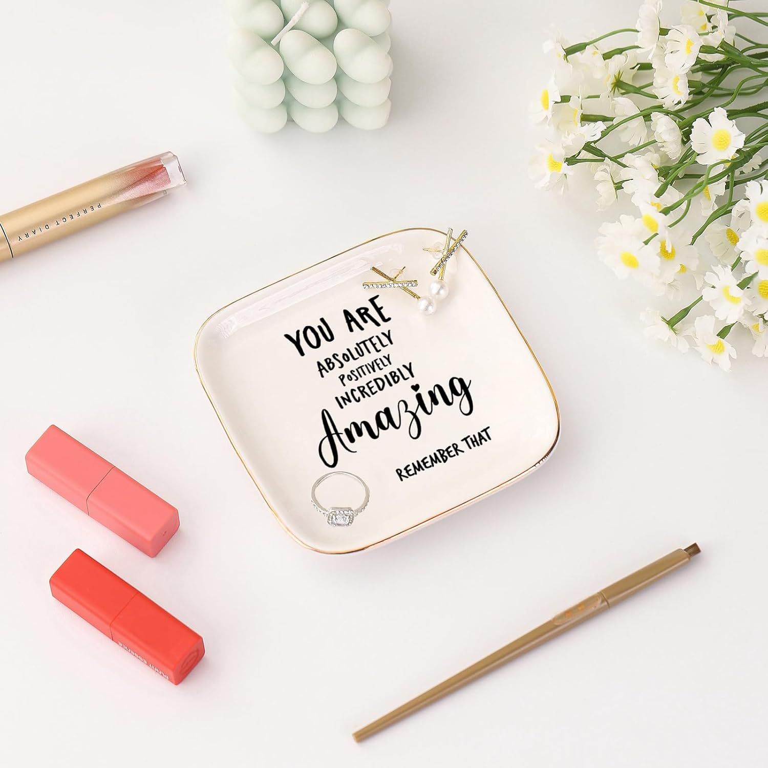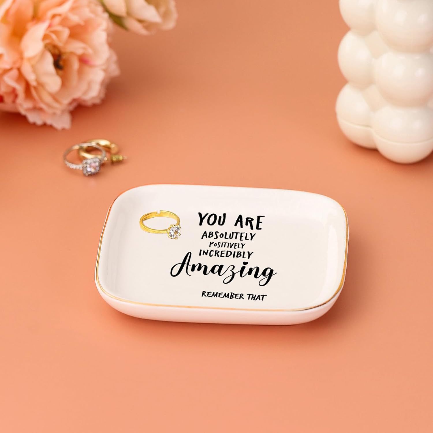 Inspirational Quotes Ceramic Ring Tray Women's Birthday Gift Jewelry Tray Desktop Storage