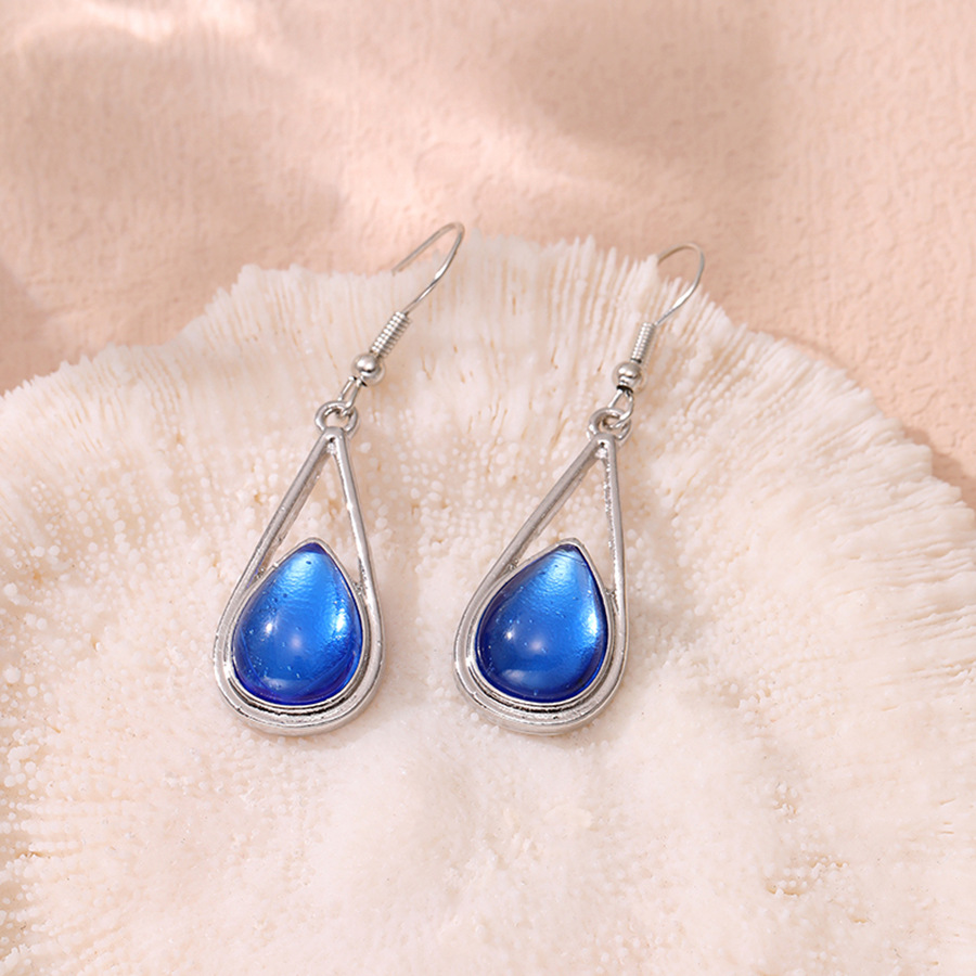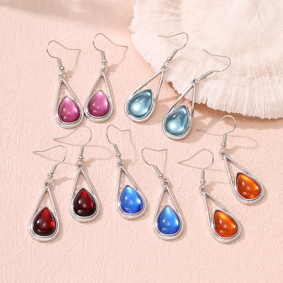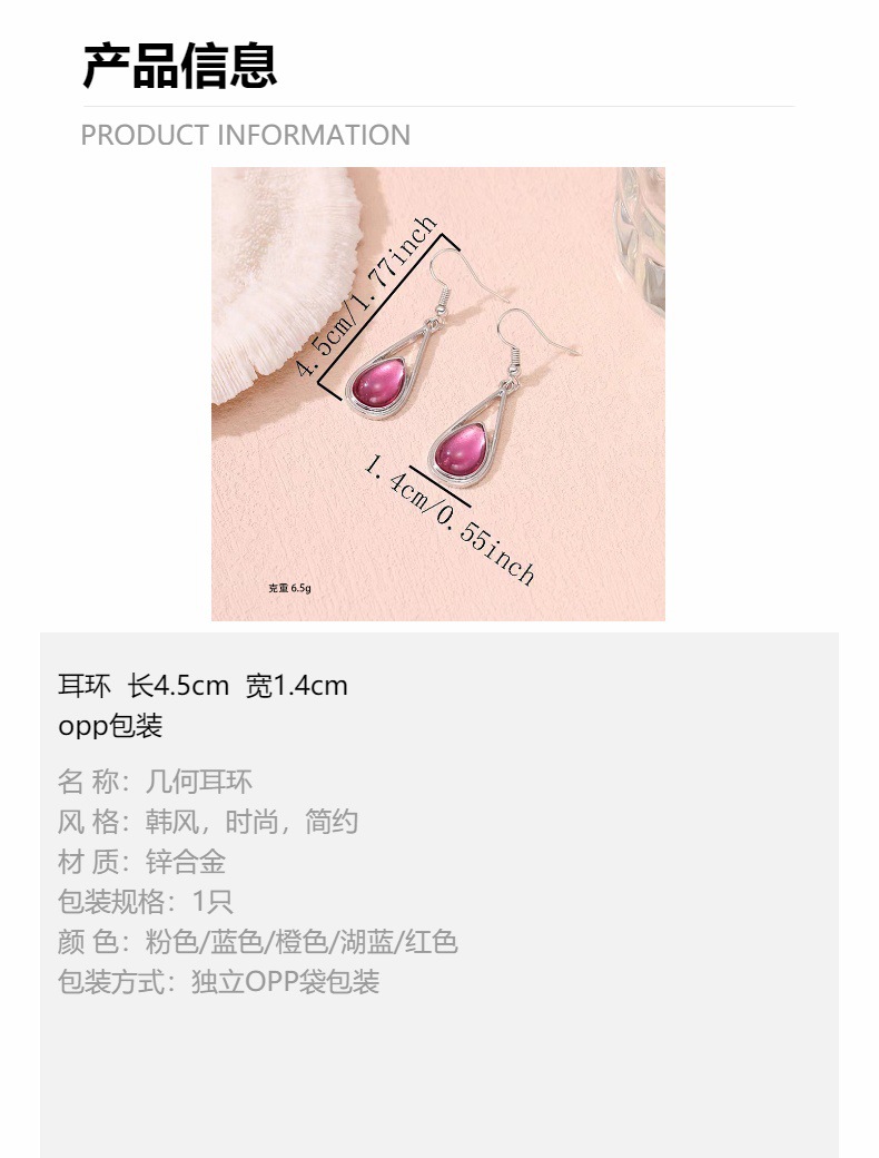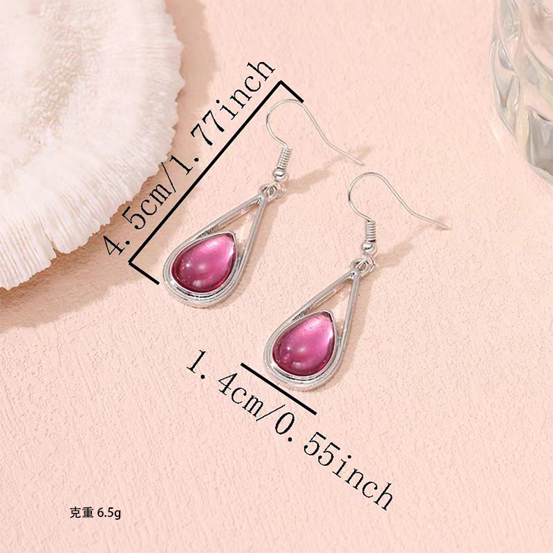Cross-Border Jewelry Hot Sale Drop-Shaped Inlaid Cat's Eye Earrings Simple and Versatile Five-Color Gemstone Earrings Wholesale