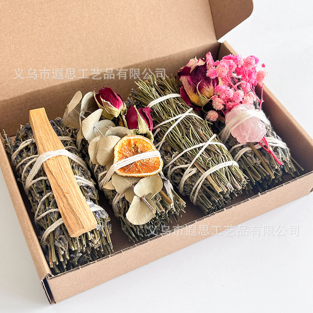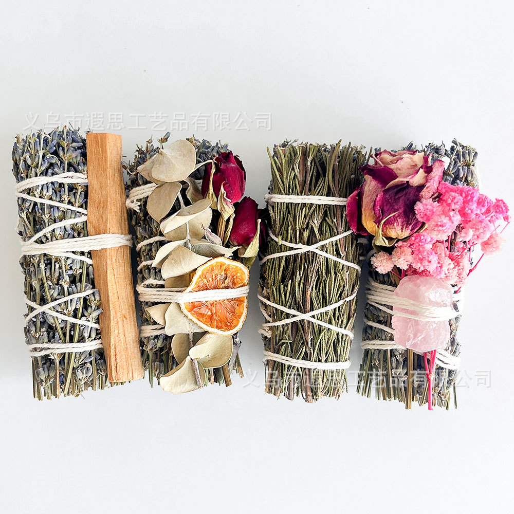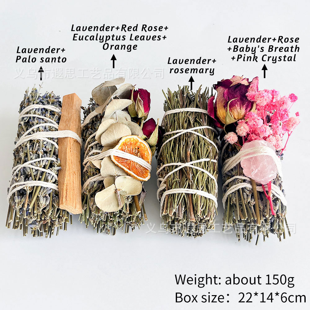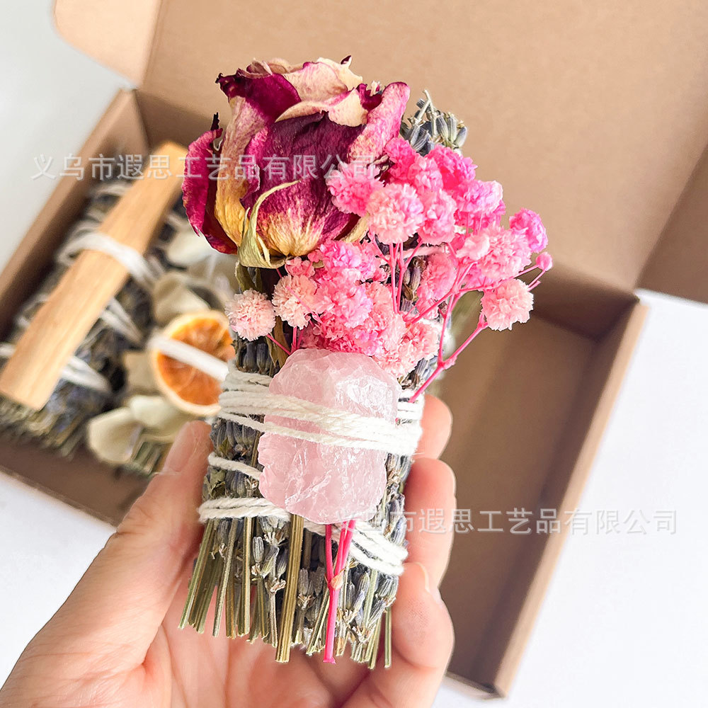 Lavender Rose Bouquet Bundle Natural Crystal White Sage Sacred Wood Purifying Space Meditation Creative Set