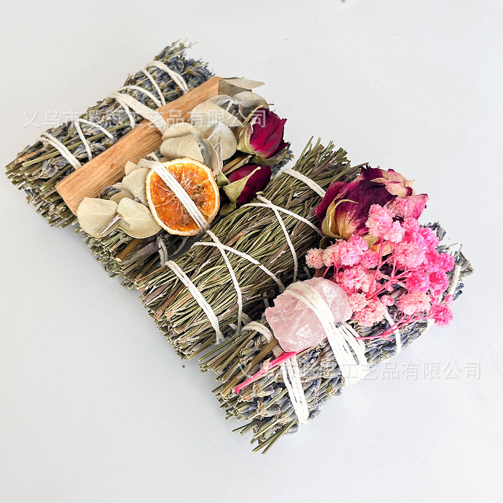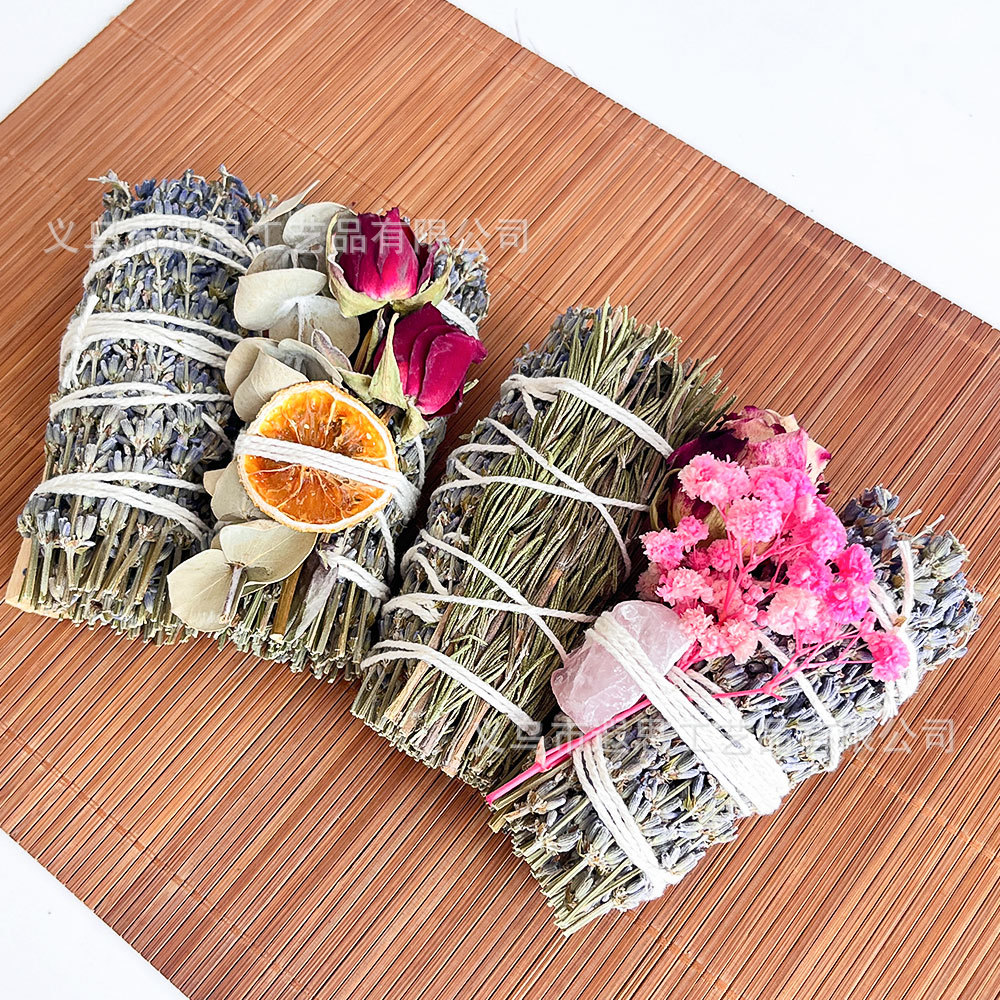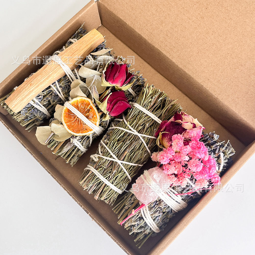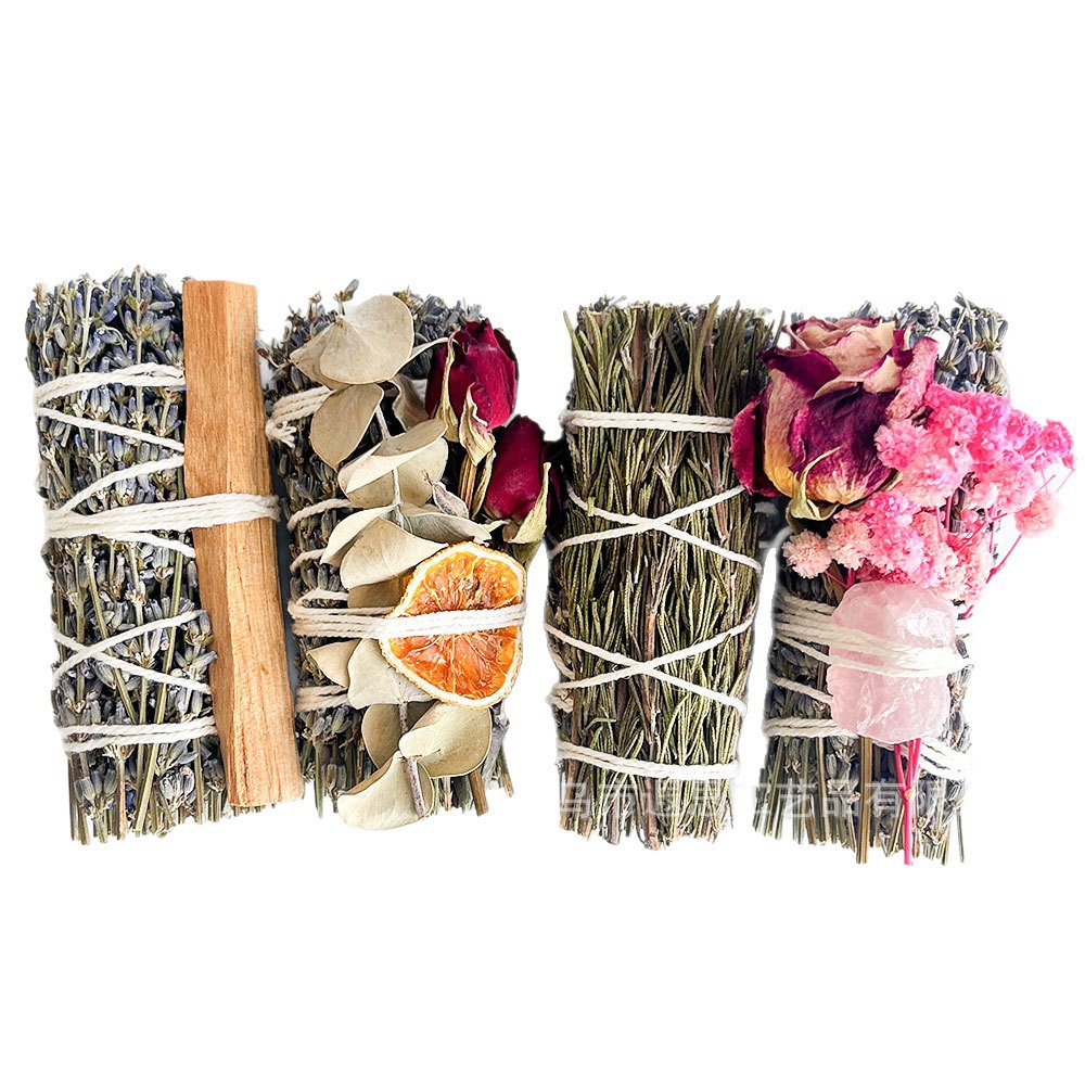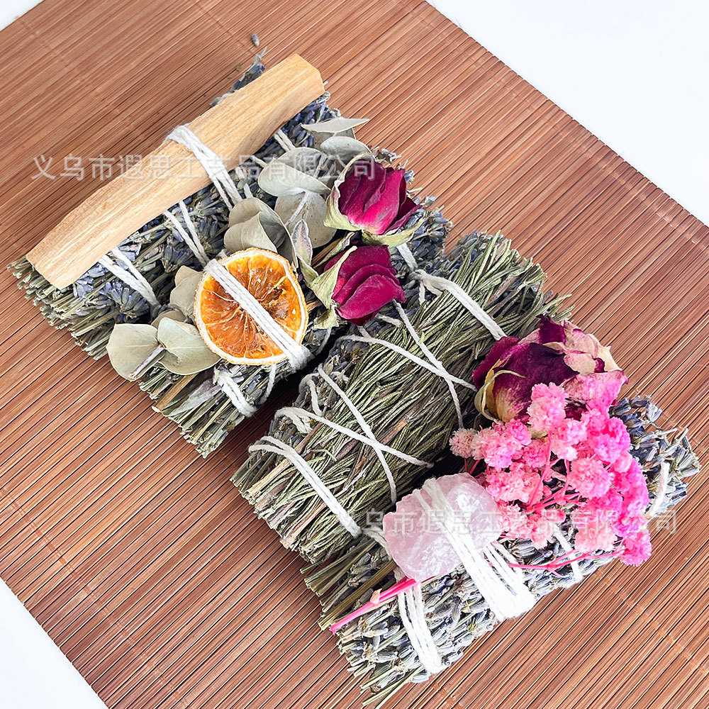 Lavender Rose Bouquet Bundle Natural Crystal White Sage Sacred Wood Purifying Space Meditation Creative Set
