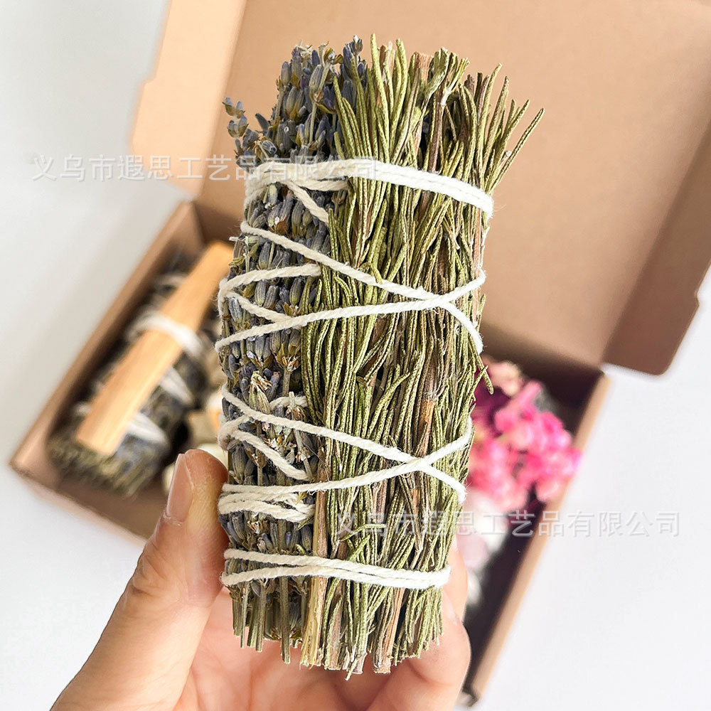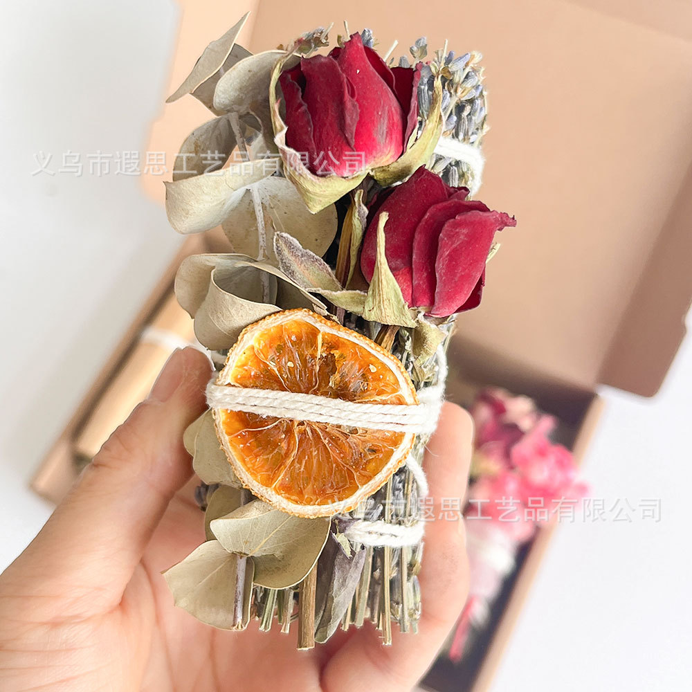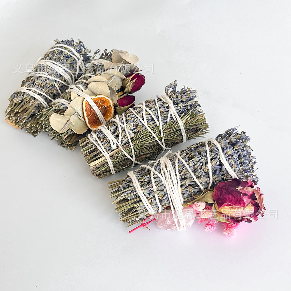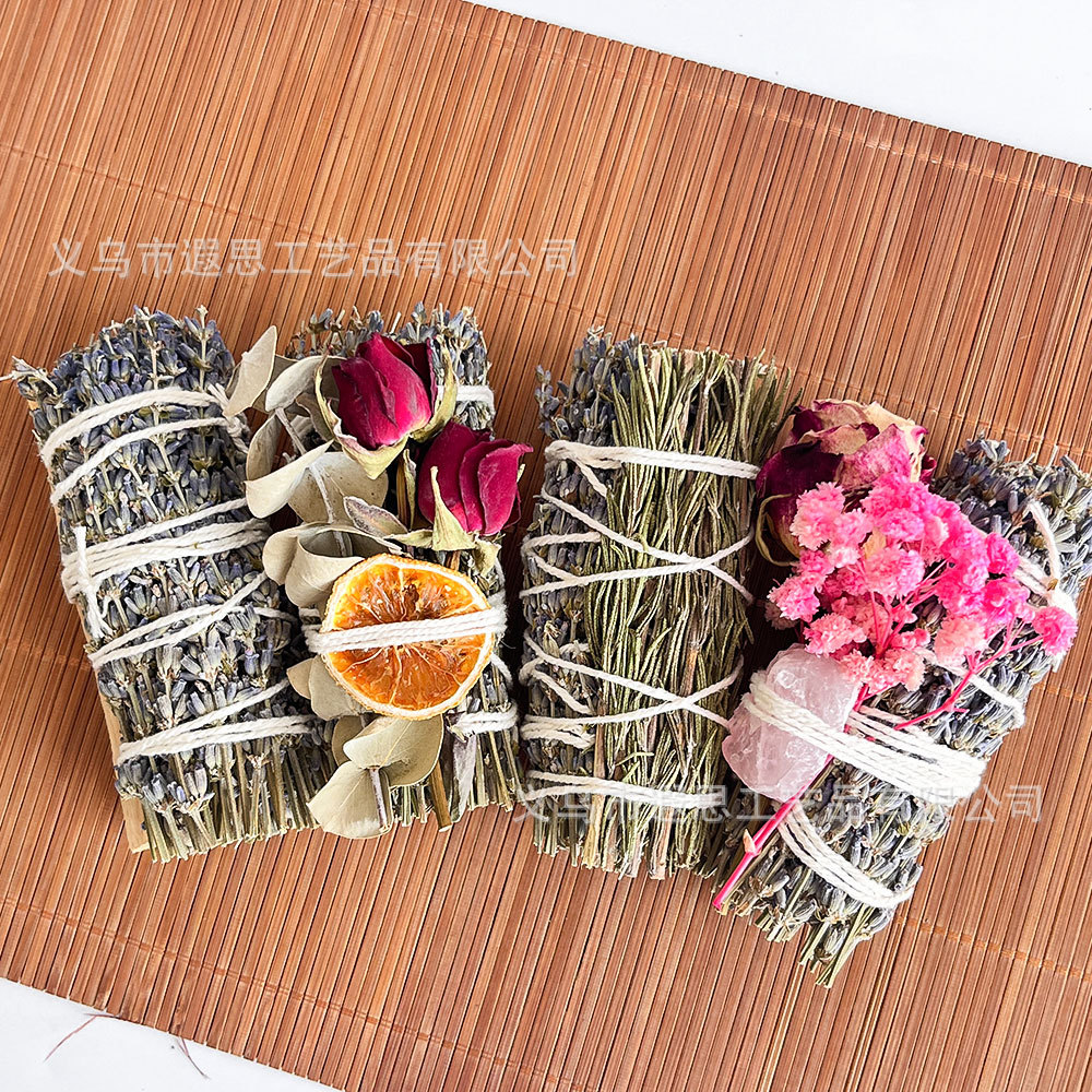 Lavender Rose Bouquet Bundle Natural Crystal White Sage Sacred Wood Purifying Space Meditation Creative Set