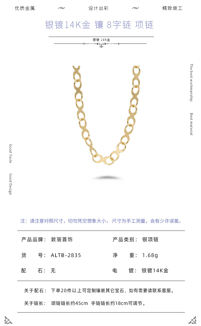 Color: Seiko golden figure 8 chain (total length 42cm)